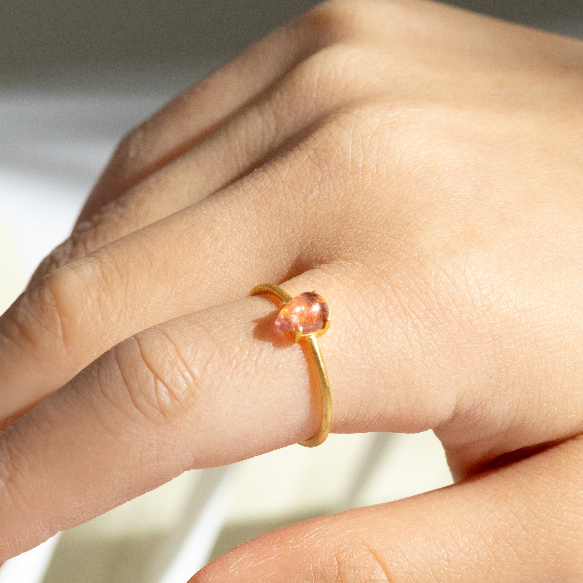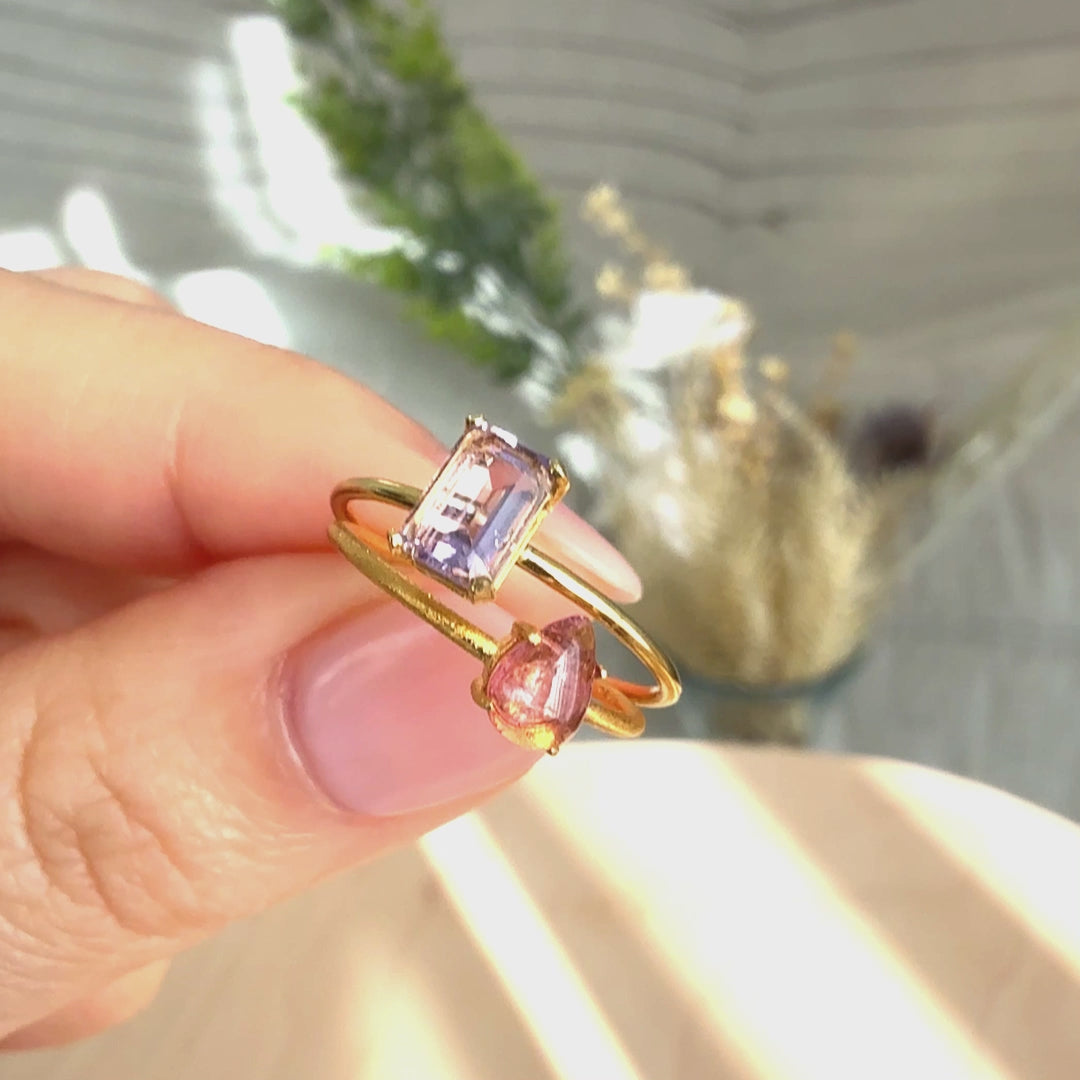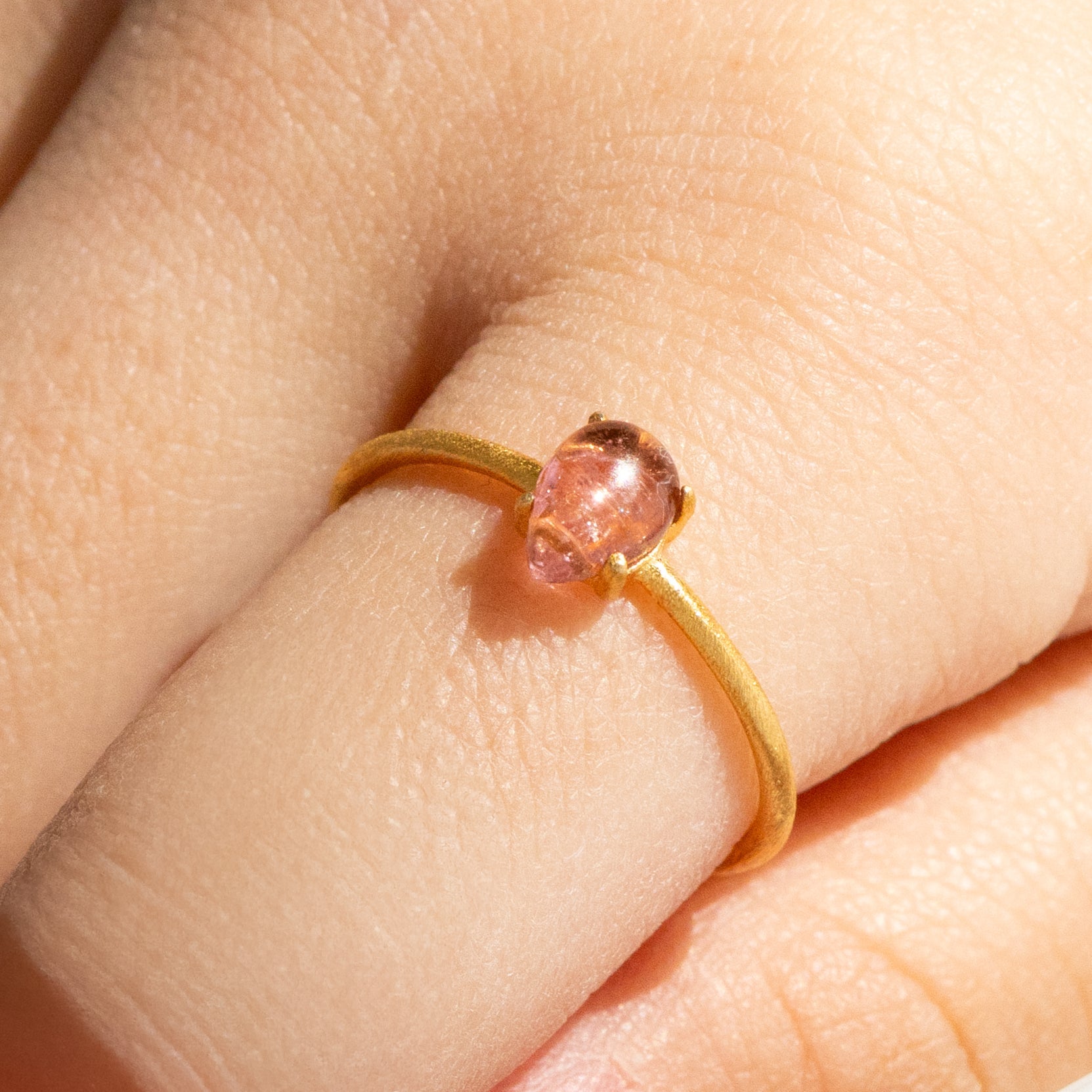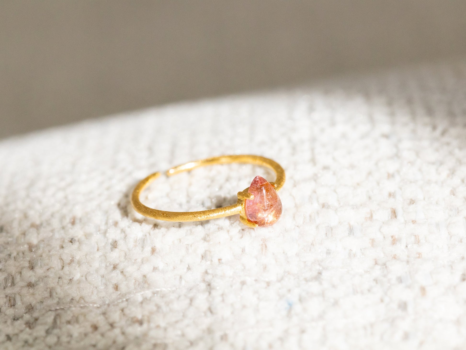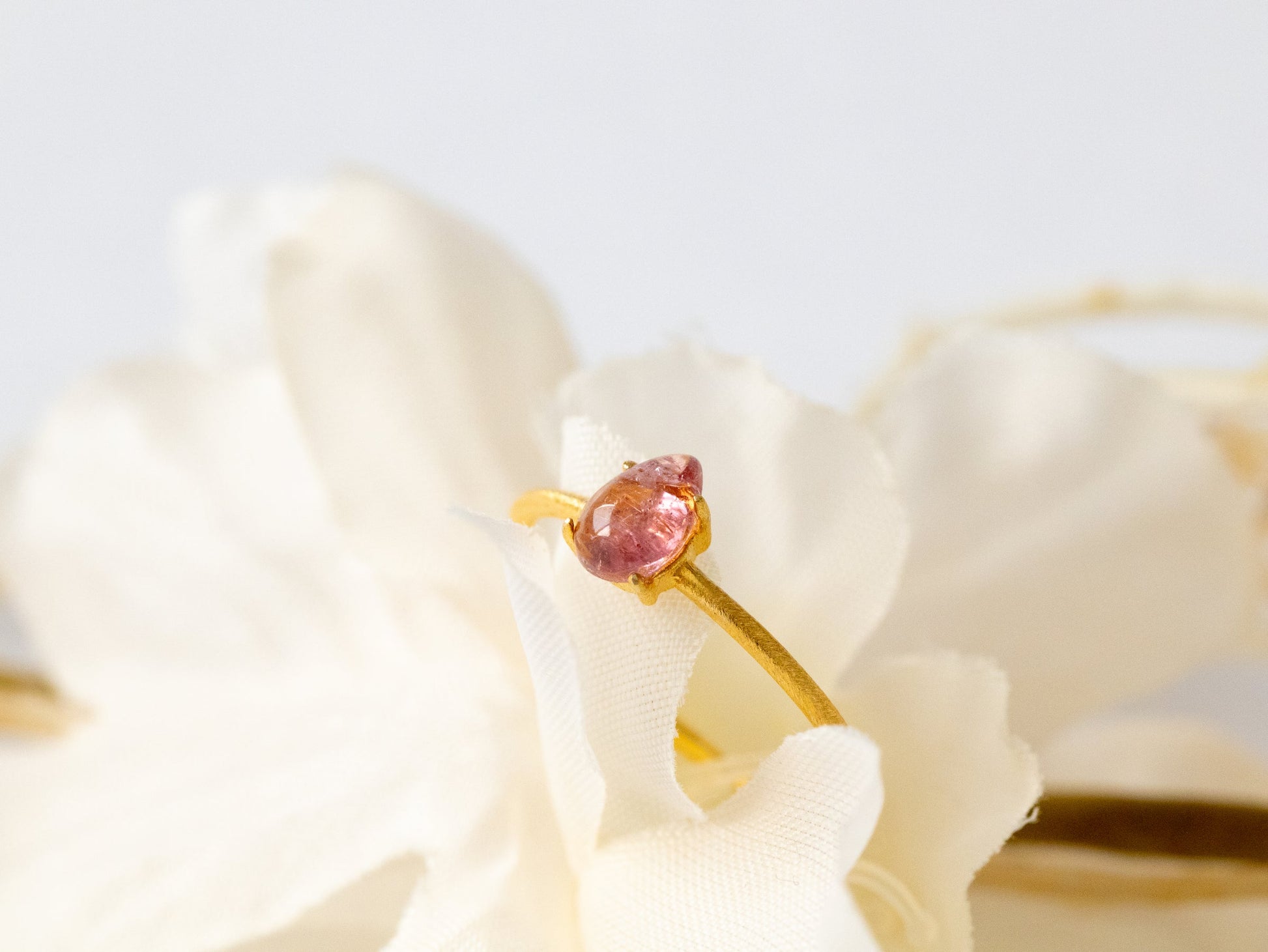 【みずみずしい艶】ピンクトルマリン ドロップリング(Silver925 18kgp)