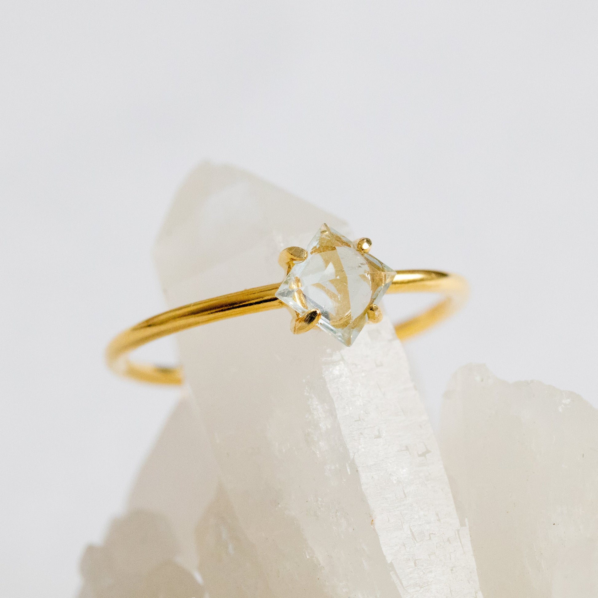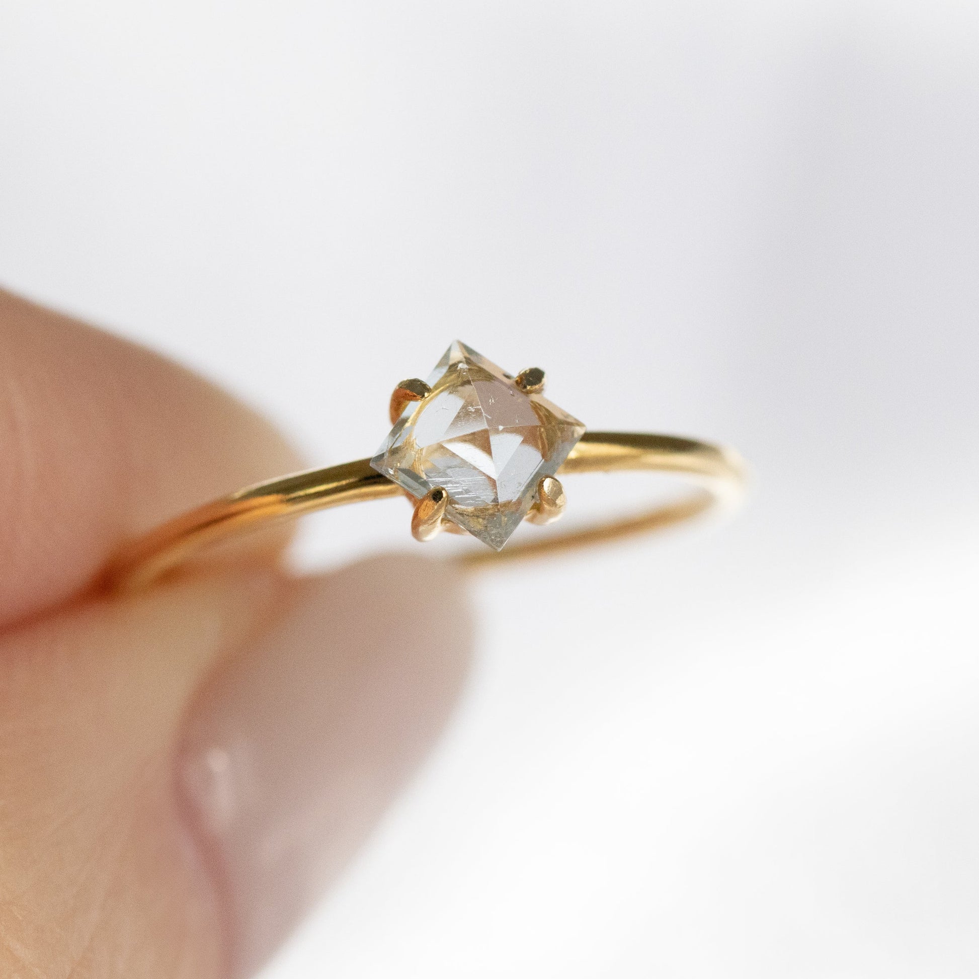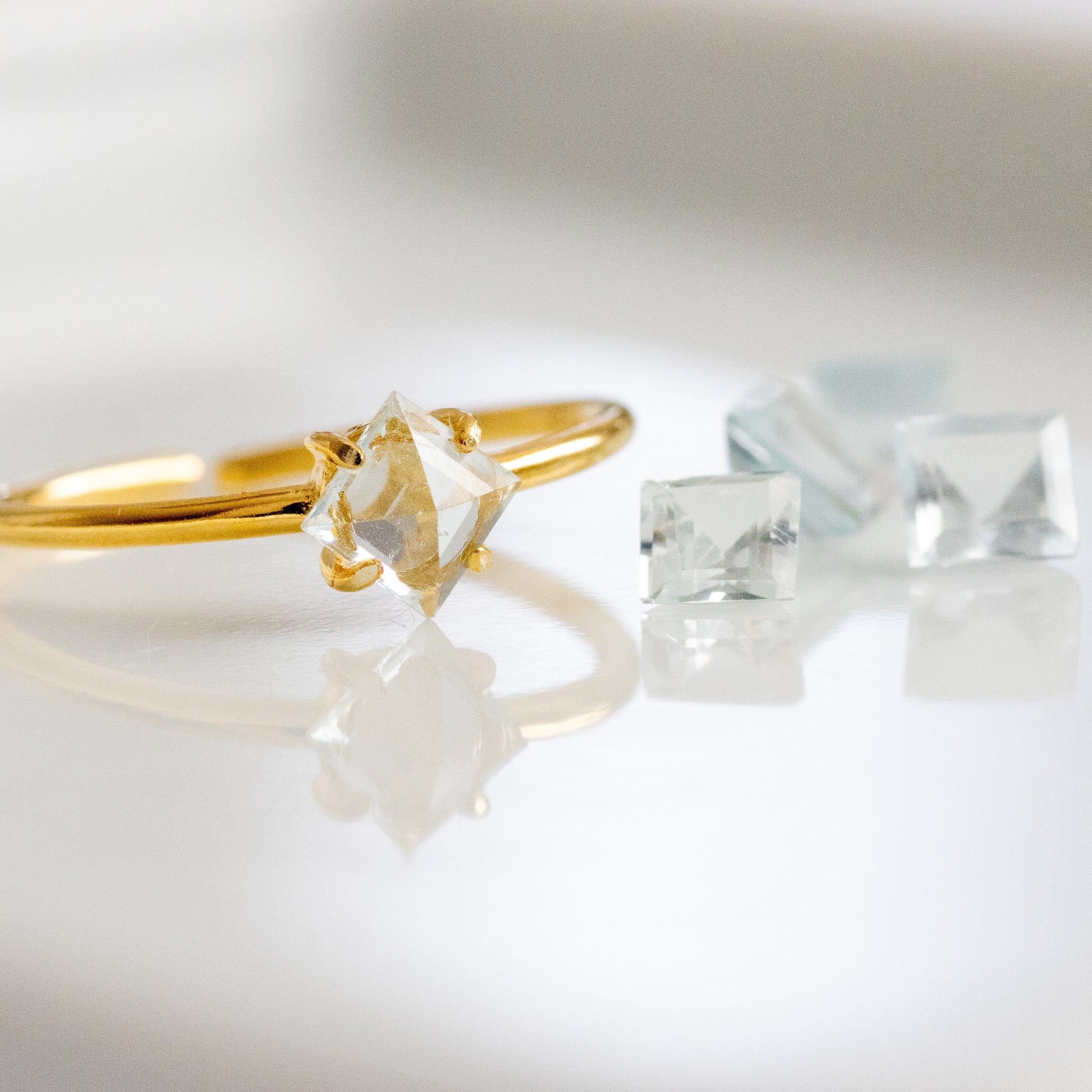 透明度の高いナイジェリア産アクアマリンを使用し、氷の結晶を思わせるリングにお仕立ていたしました。