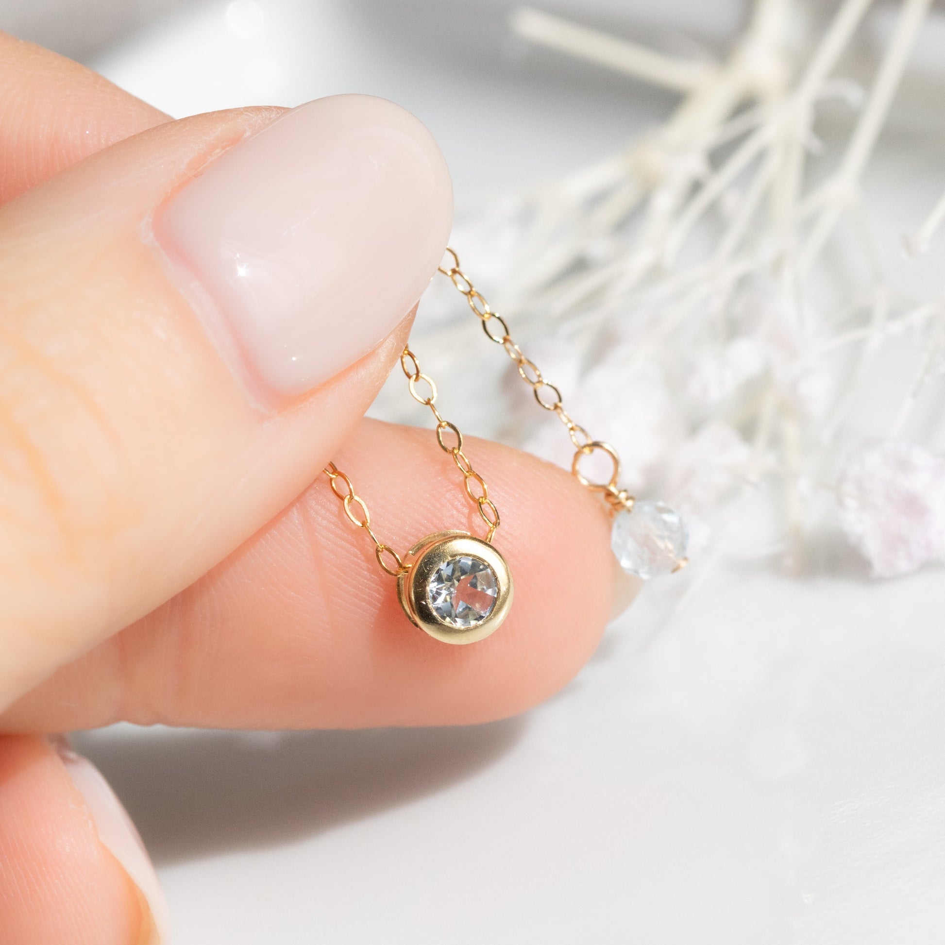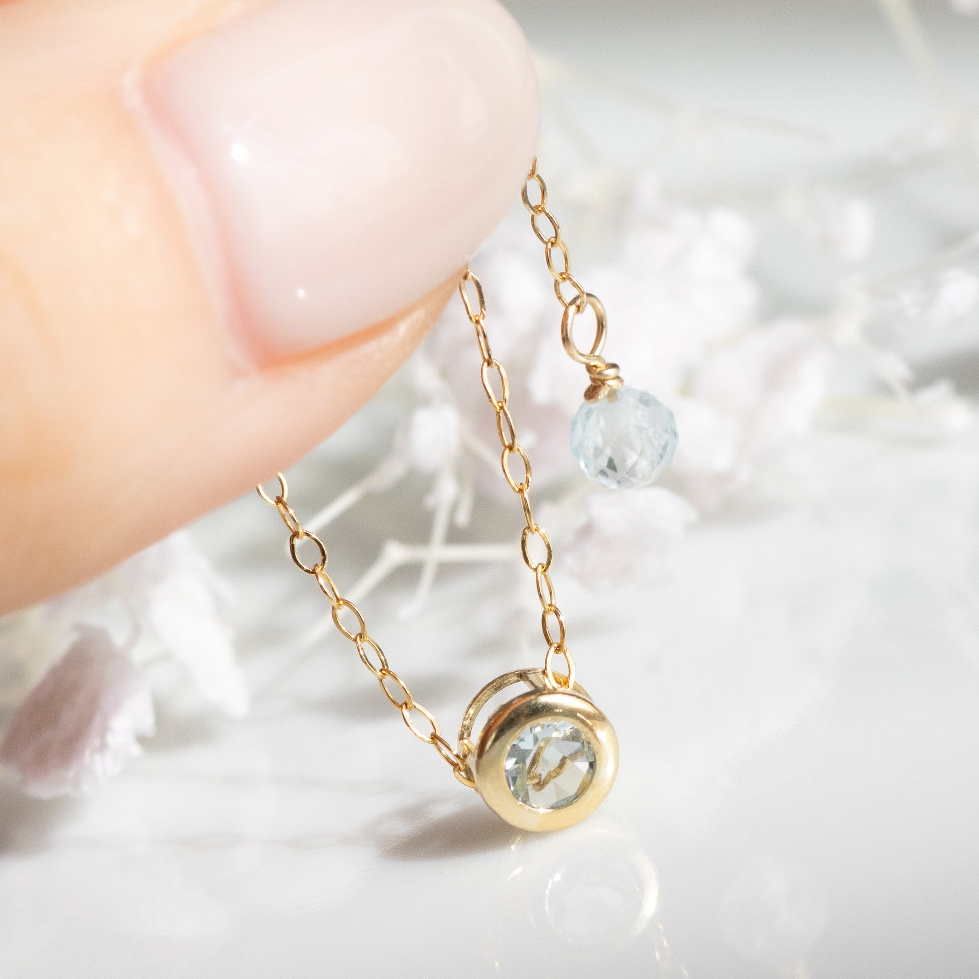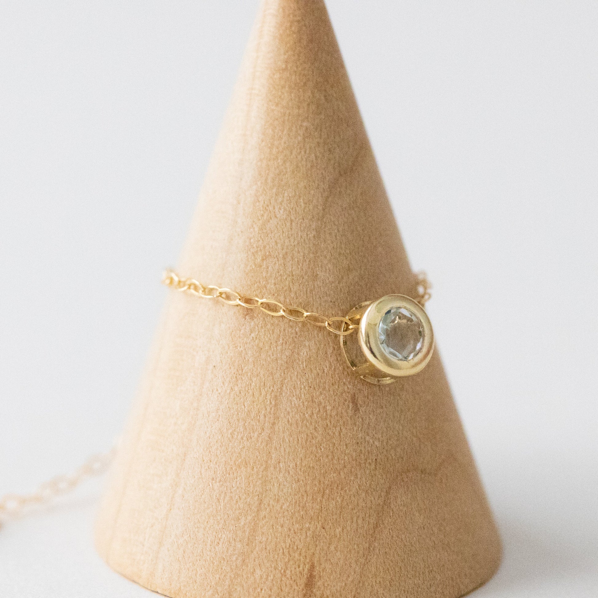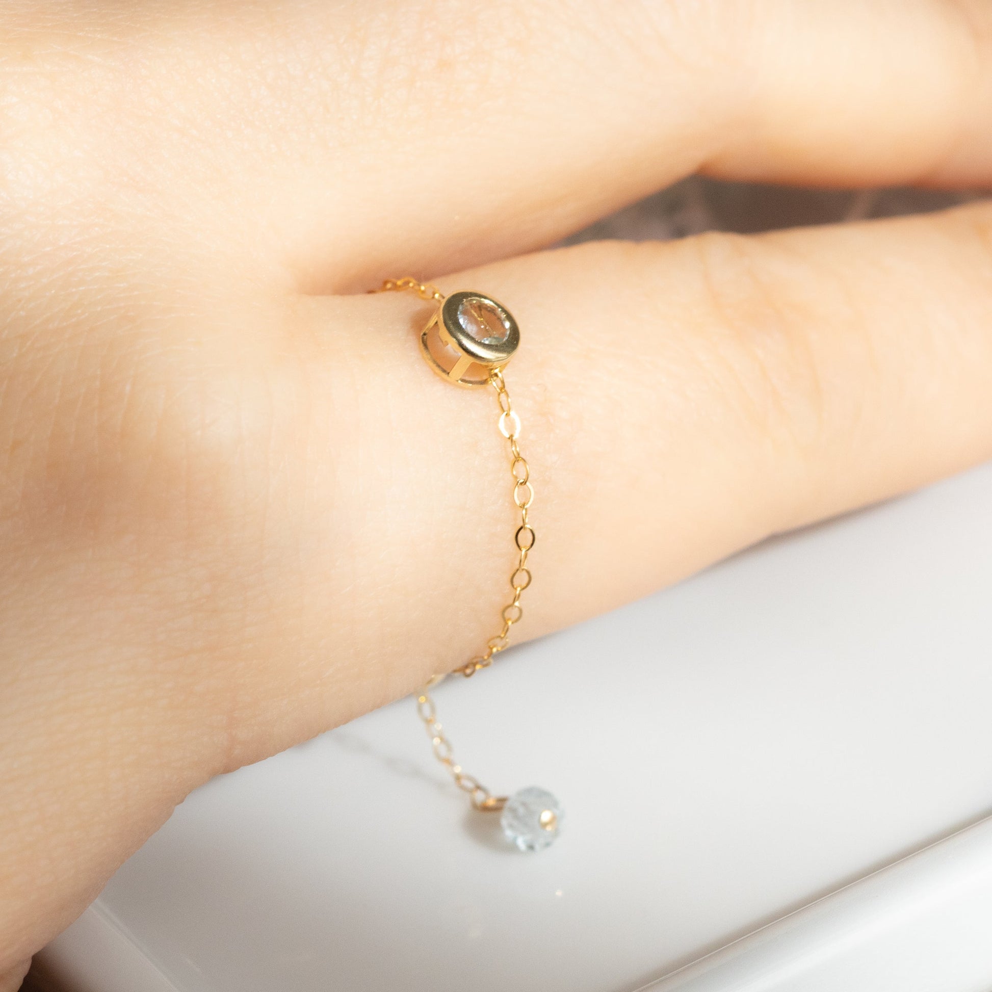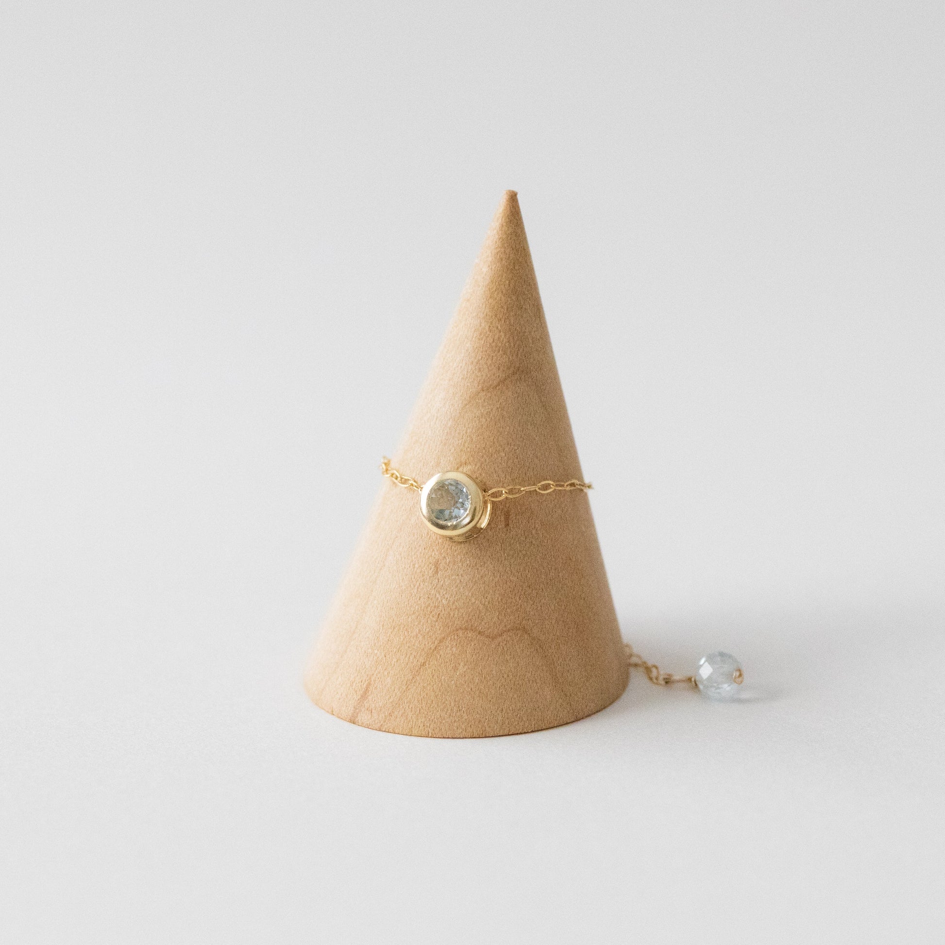 ベゼルセッティングに加え、チェーンの先端にもボタンカットのスカイブルートパーズを使用。