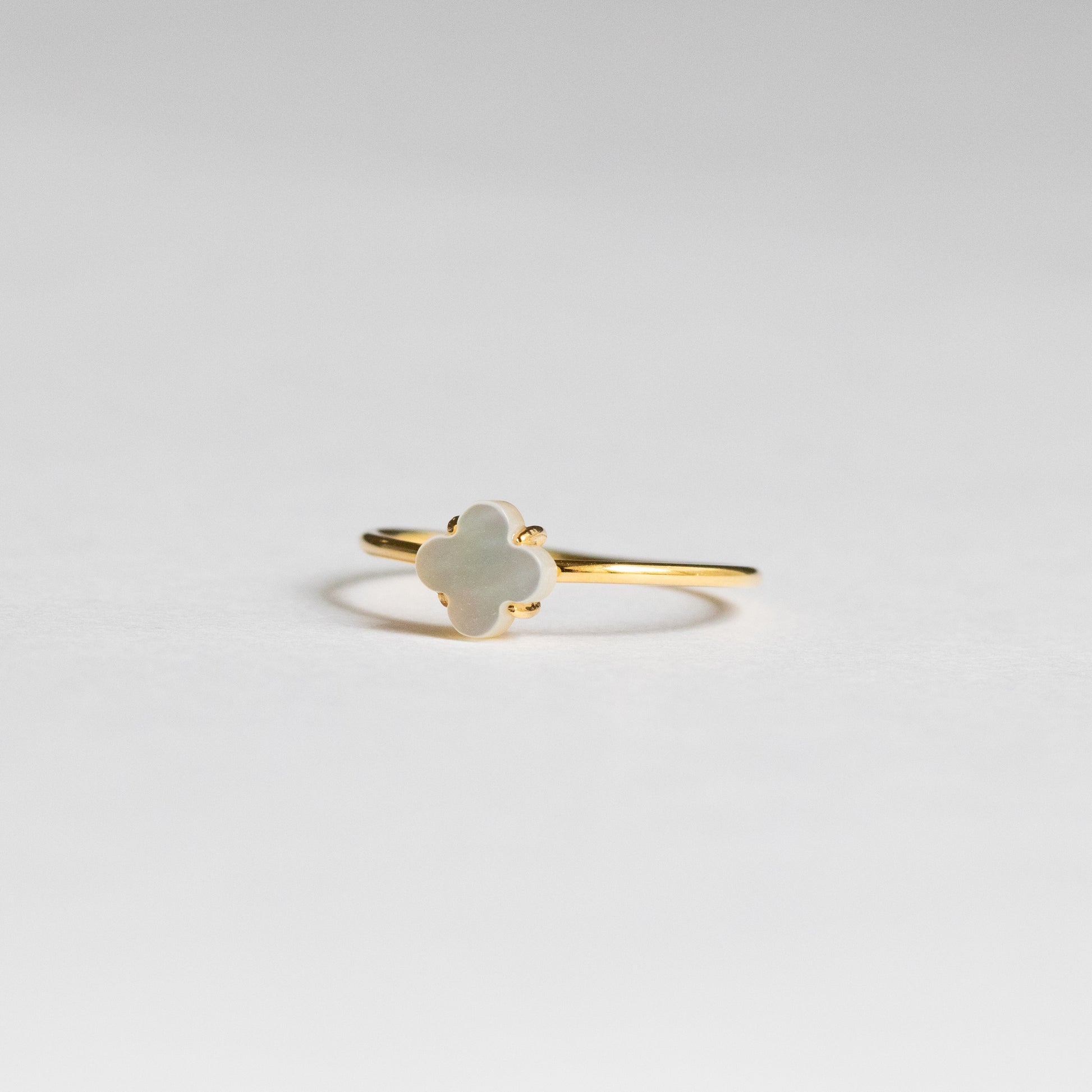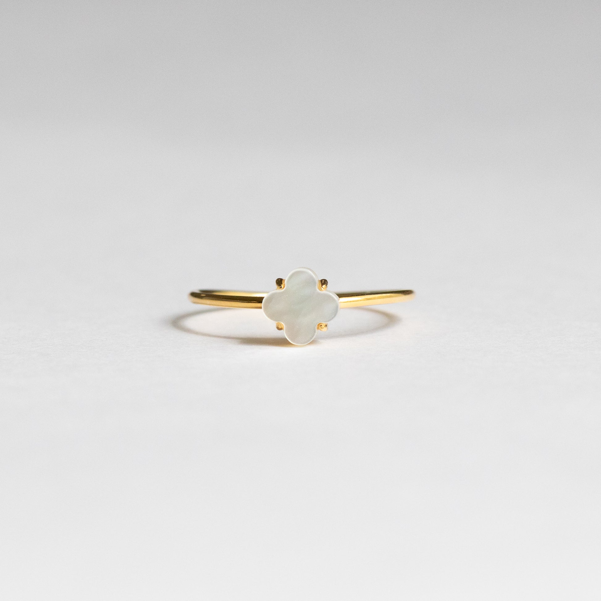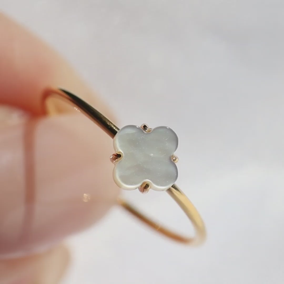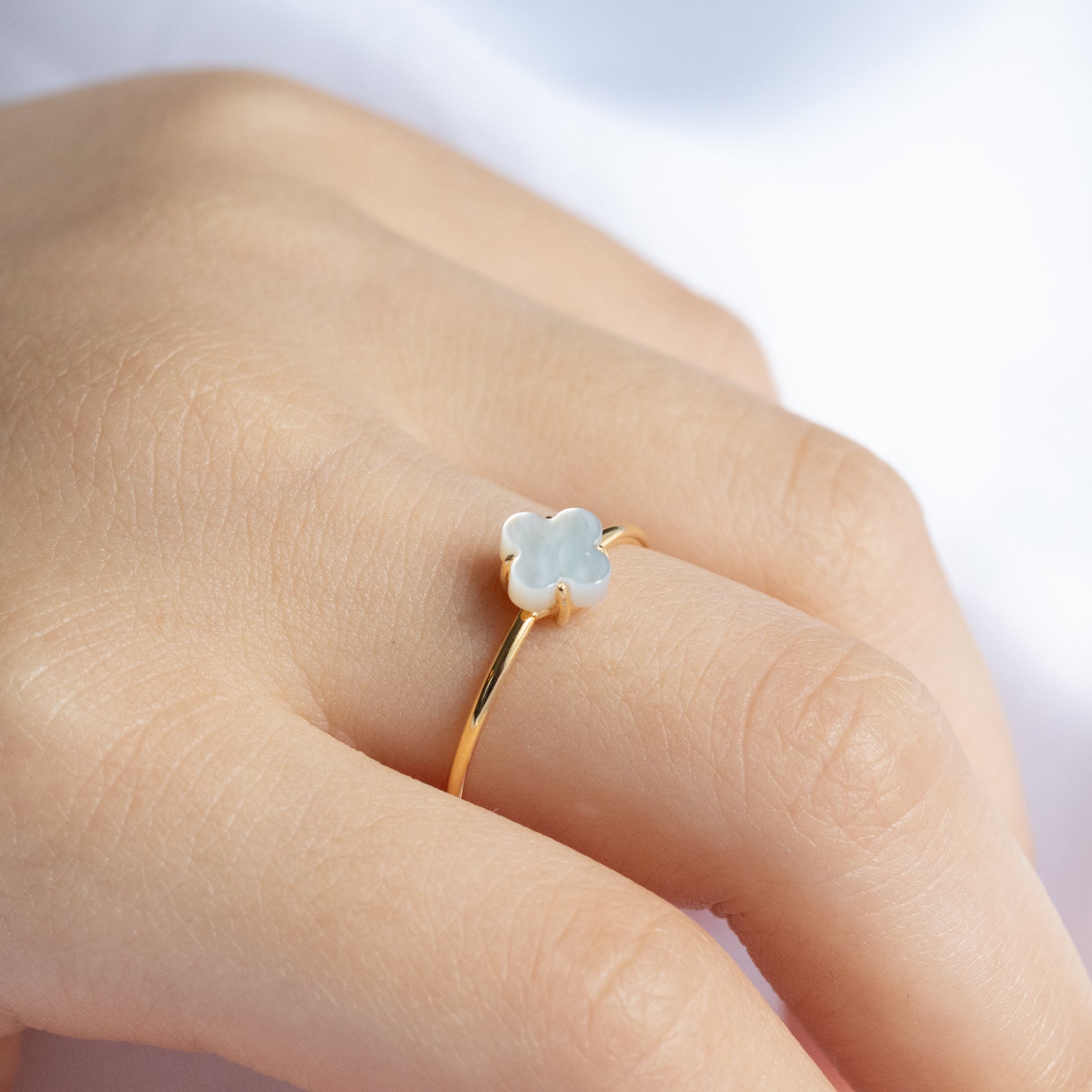 やさしく艶めくホワイトシェルを、お花の形に仕立てたフラワーリング。
