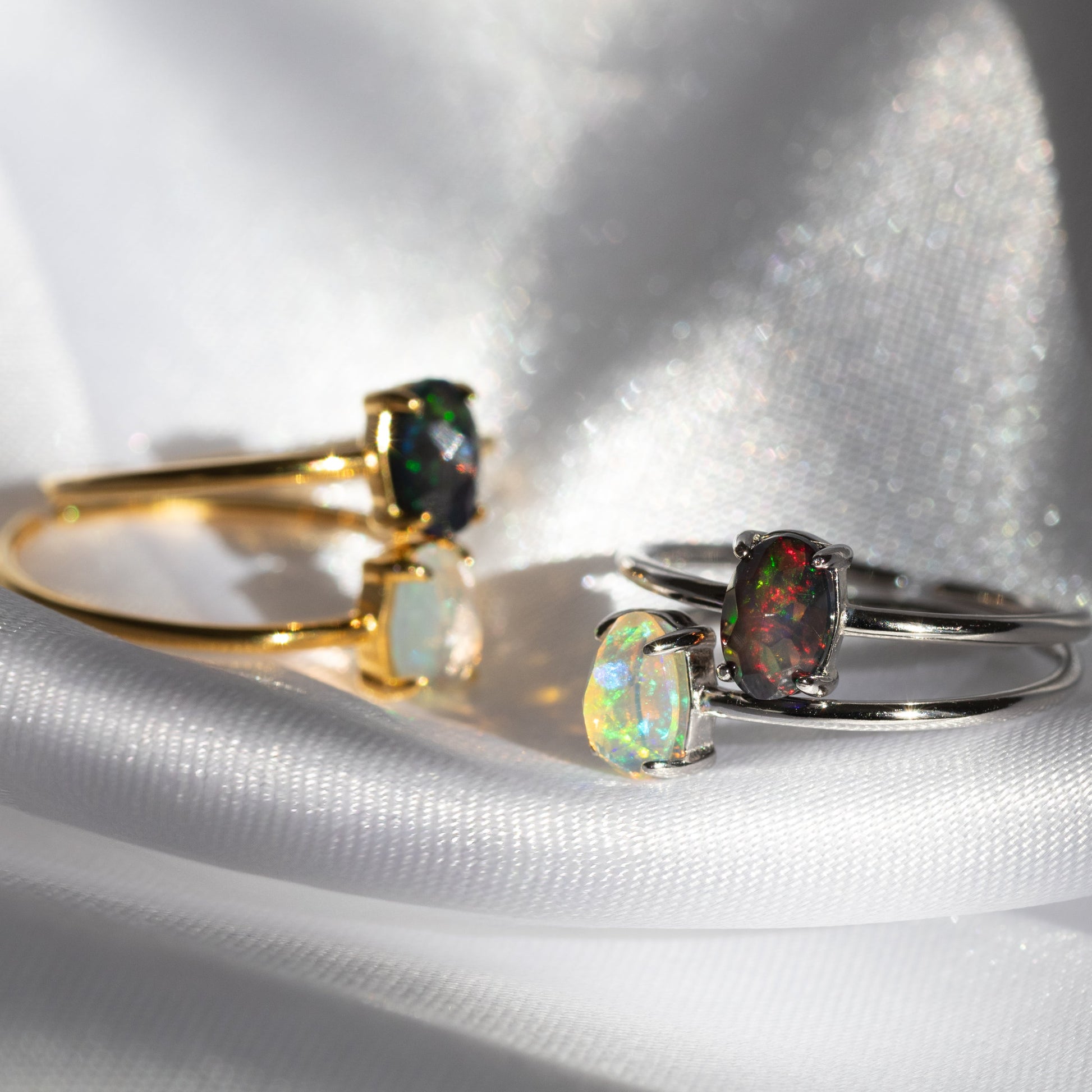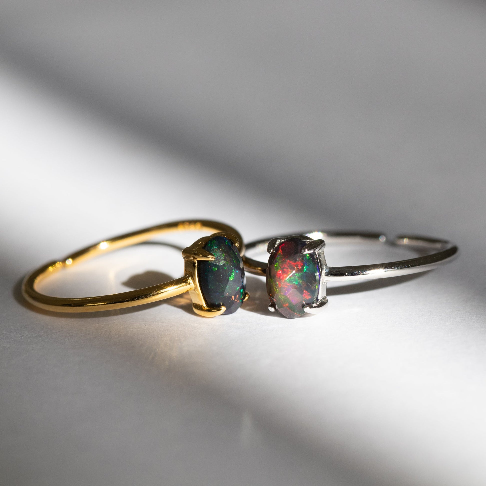 宝石質AAAエチオピア産ブラックオパール オーバルリング(Silver925 18Kgp/ロジウム)