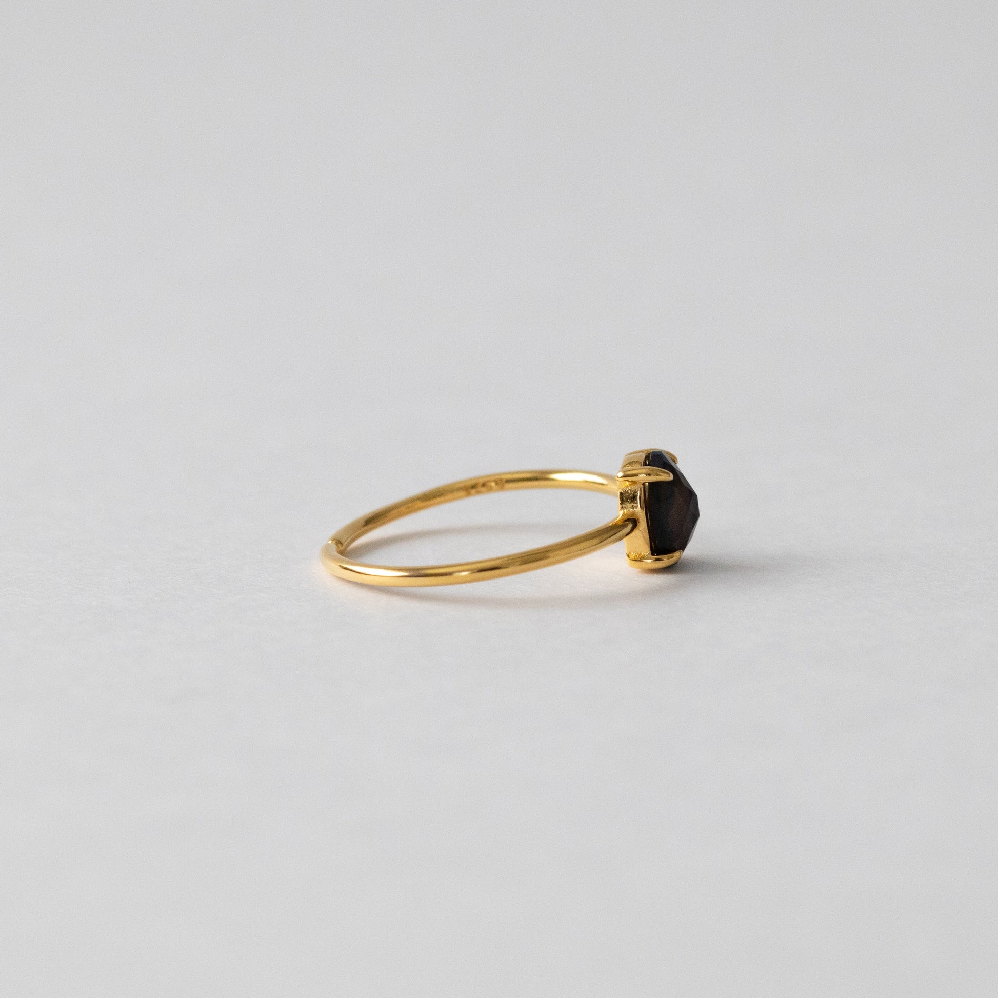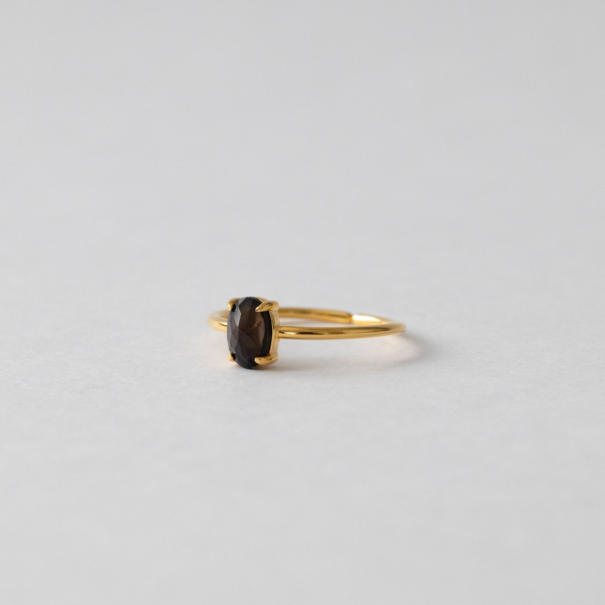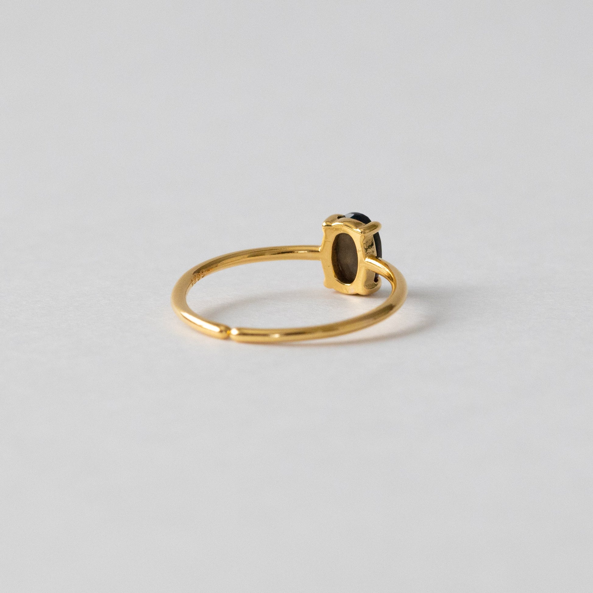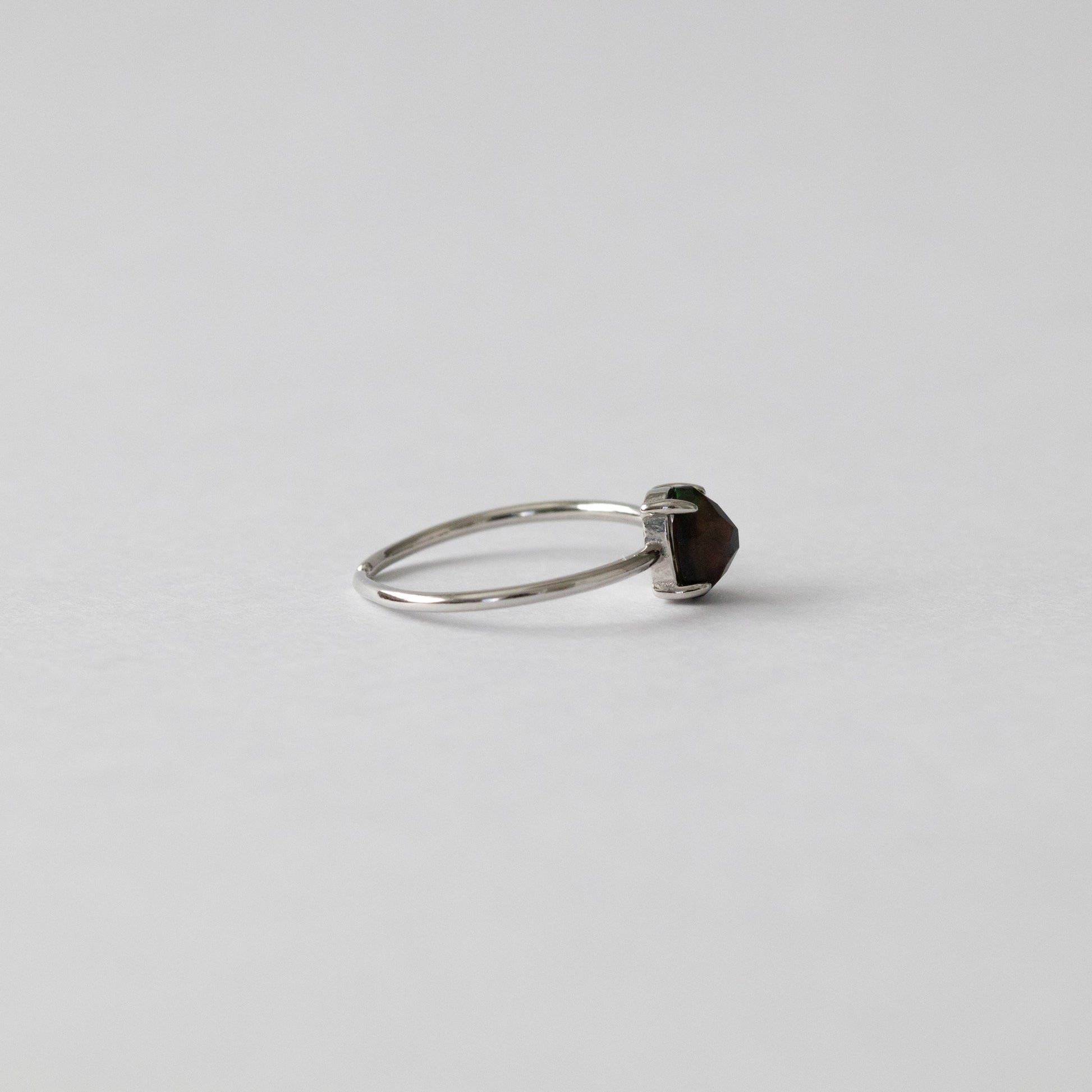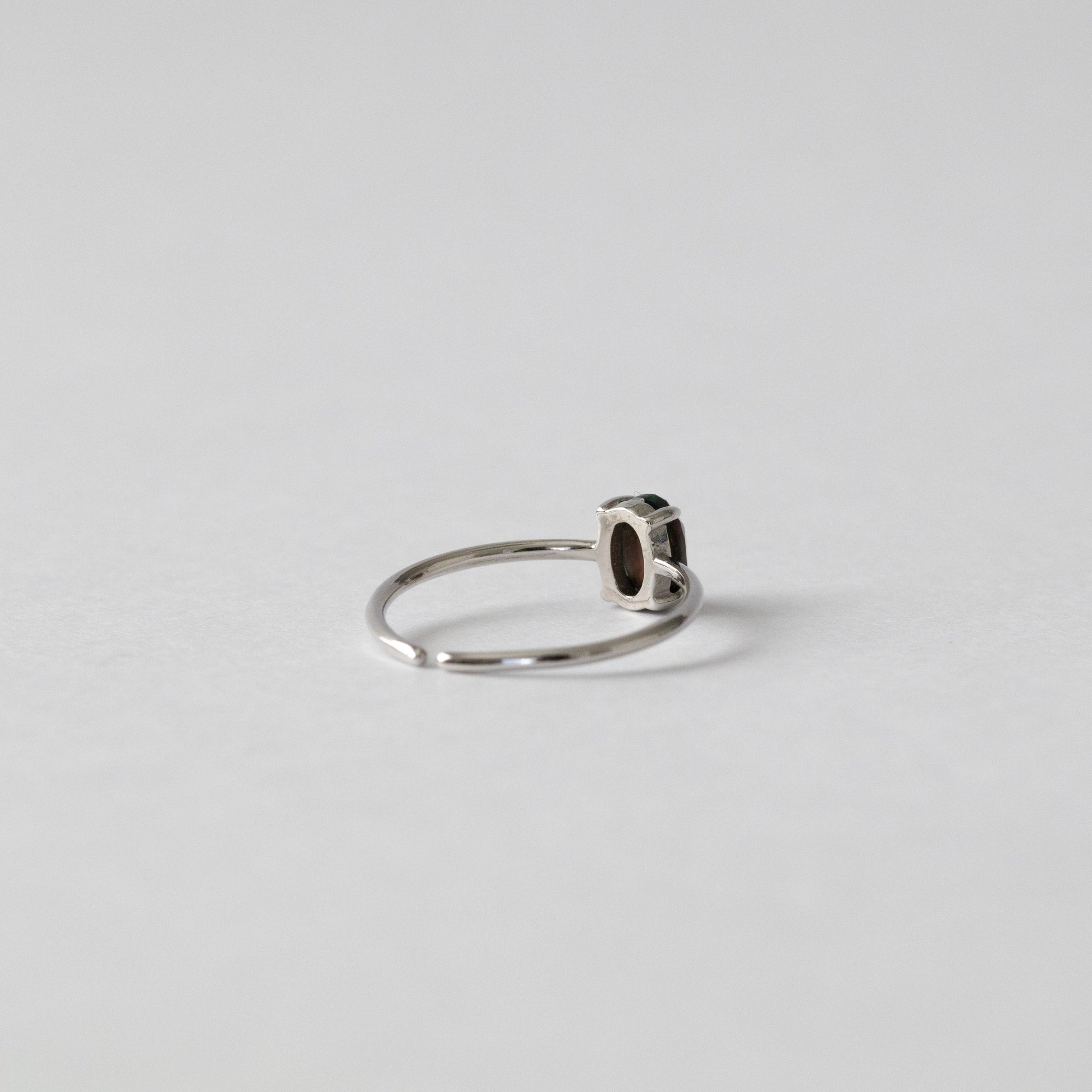 一見、透明感がある黒い石のリングですが、角度を変えると私の石は遊色の赤、緑、わずかに橙色も見えて綺麗です。他人からは遊色が見えづらいかもしれませんが、自分で見て遊色の感動を楽しんでます。