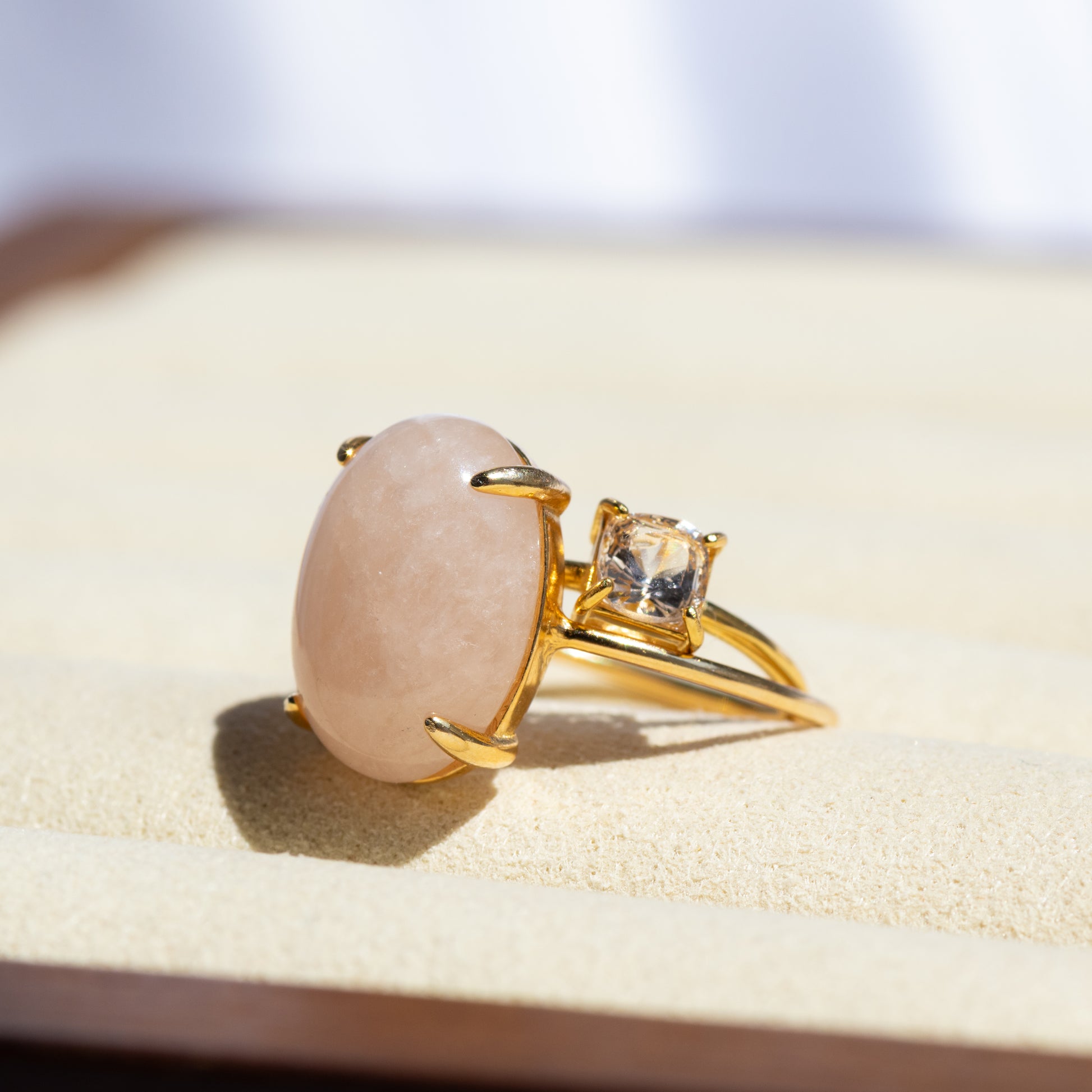 肌なじみの良いニュアンスカラーで、他の天然石との重ねづけや、シンプルな装いのアクセントにもぴったりです。
