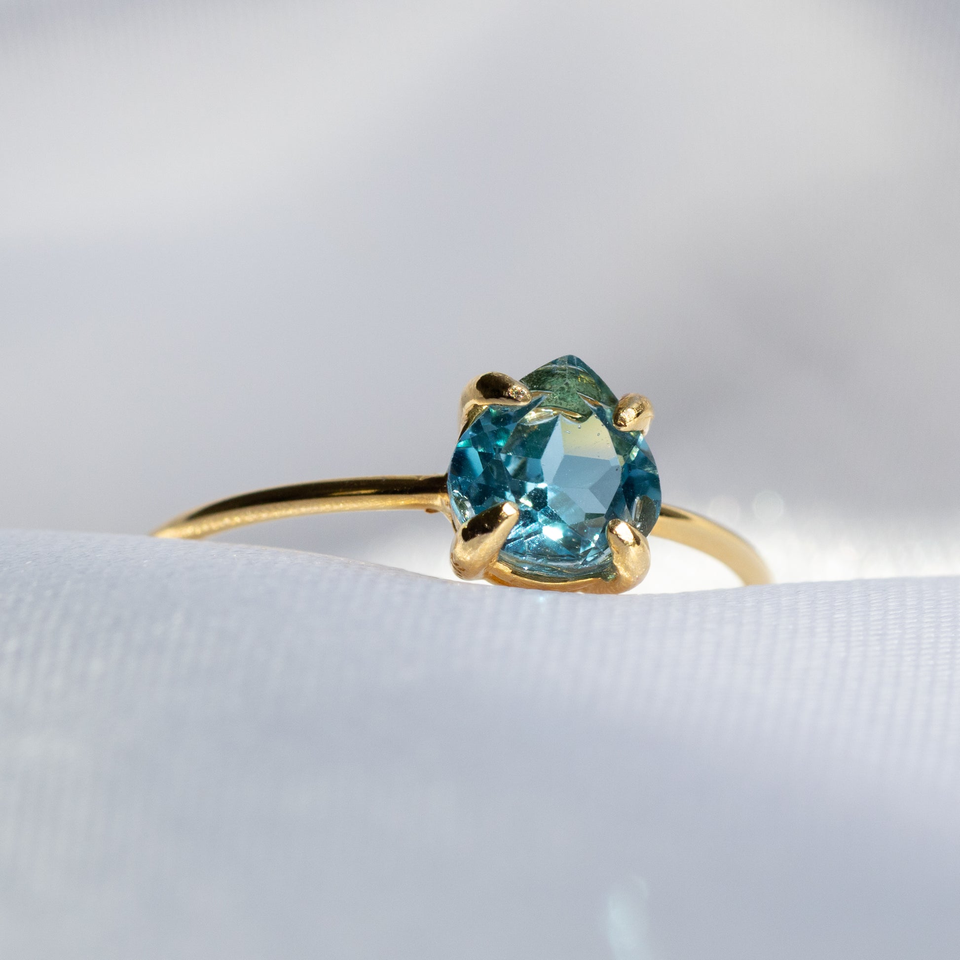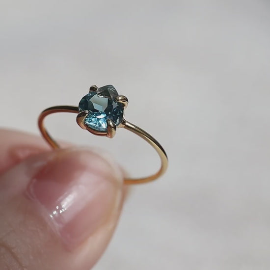 シックで落ち着いたロンドンブルートパーズを、ころんと愛らしいマロンカットに。