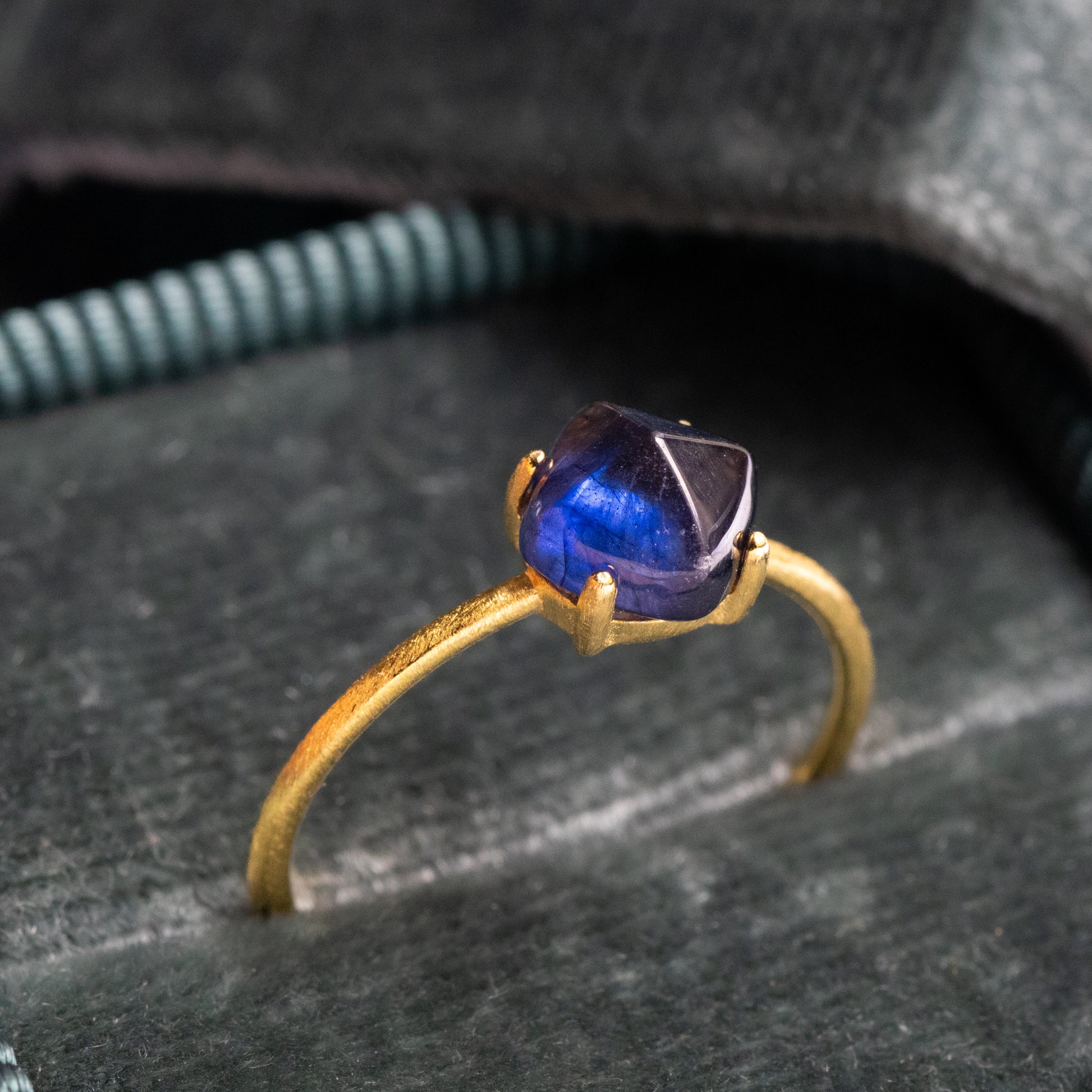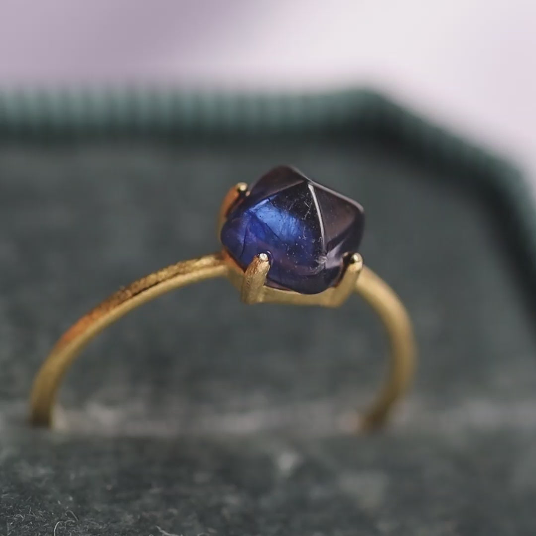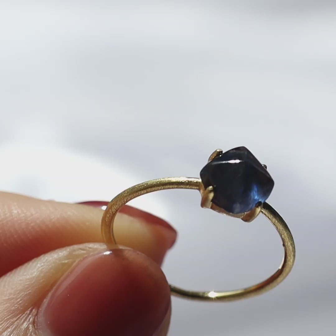 【濃紺の輝き】宝石質ブルーサファイア シュガーローフリング(Silver925 18kgp)