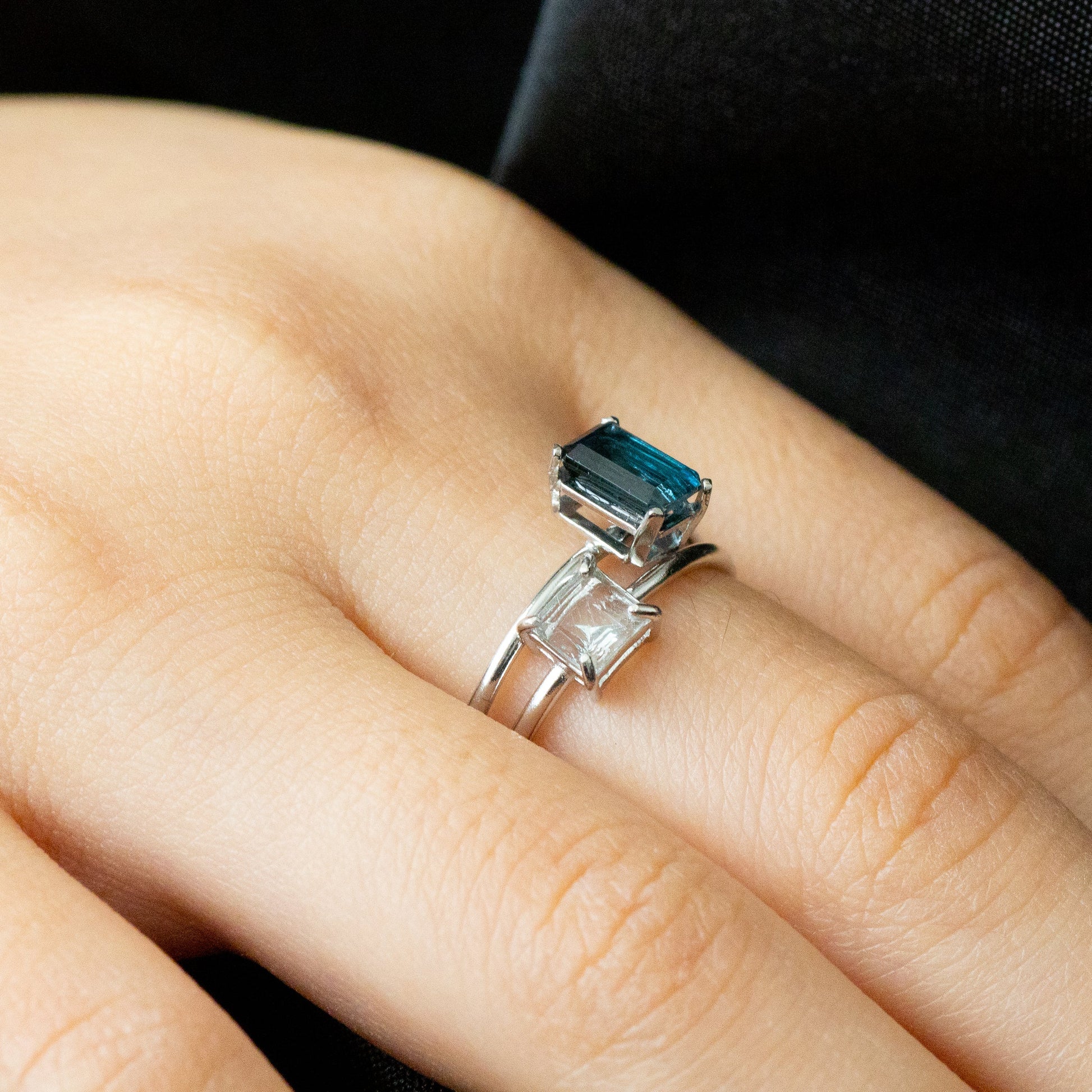 深く濃い青色が上品なロンドンブルートパーズです。