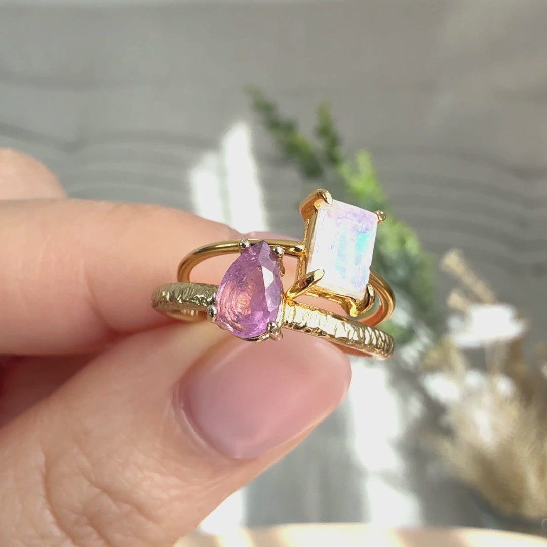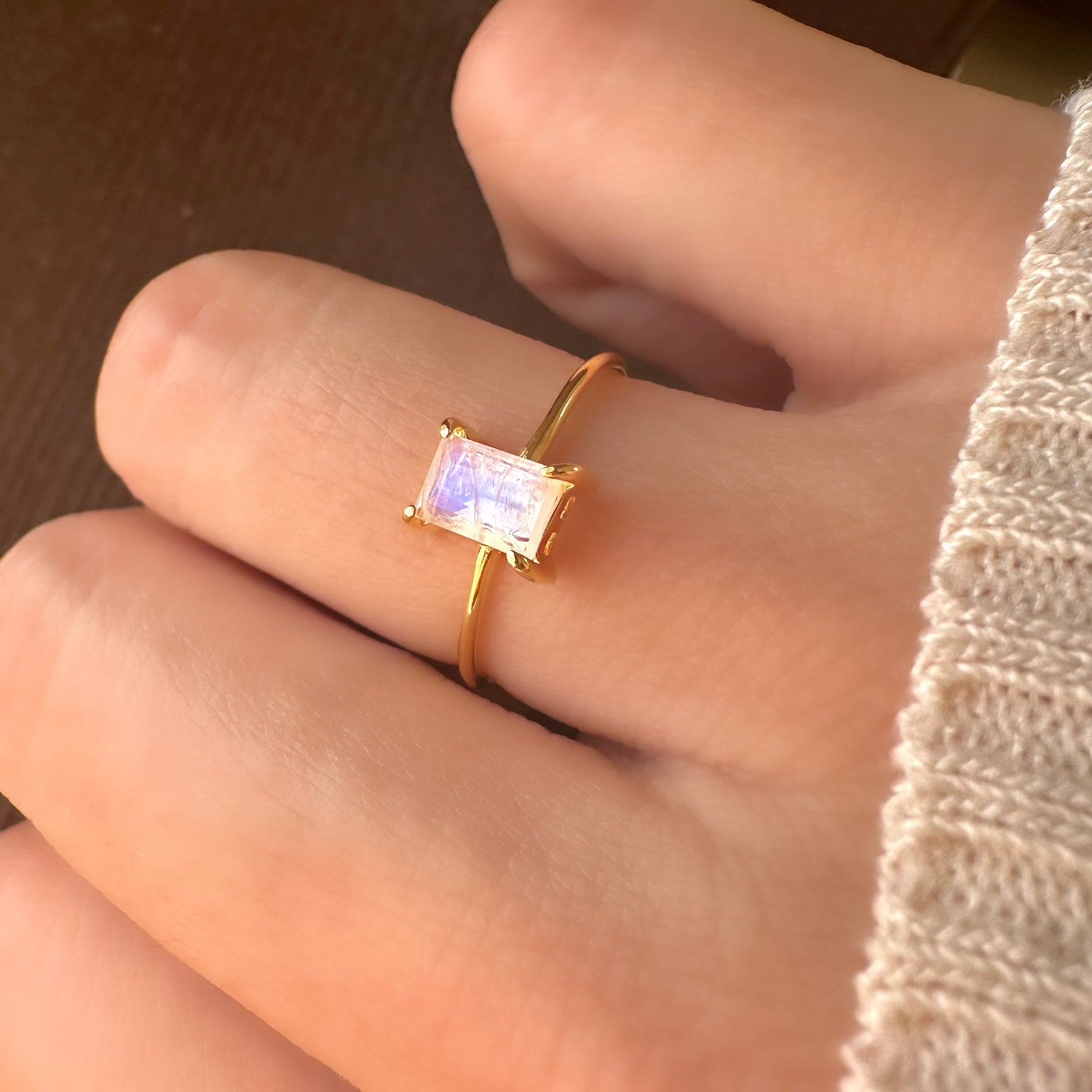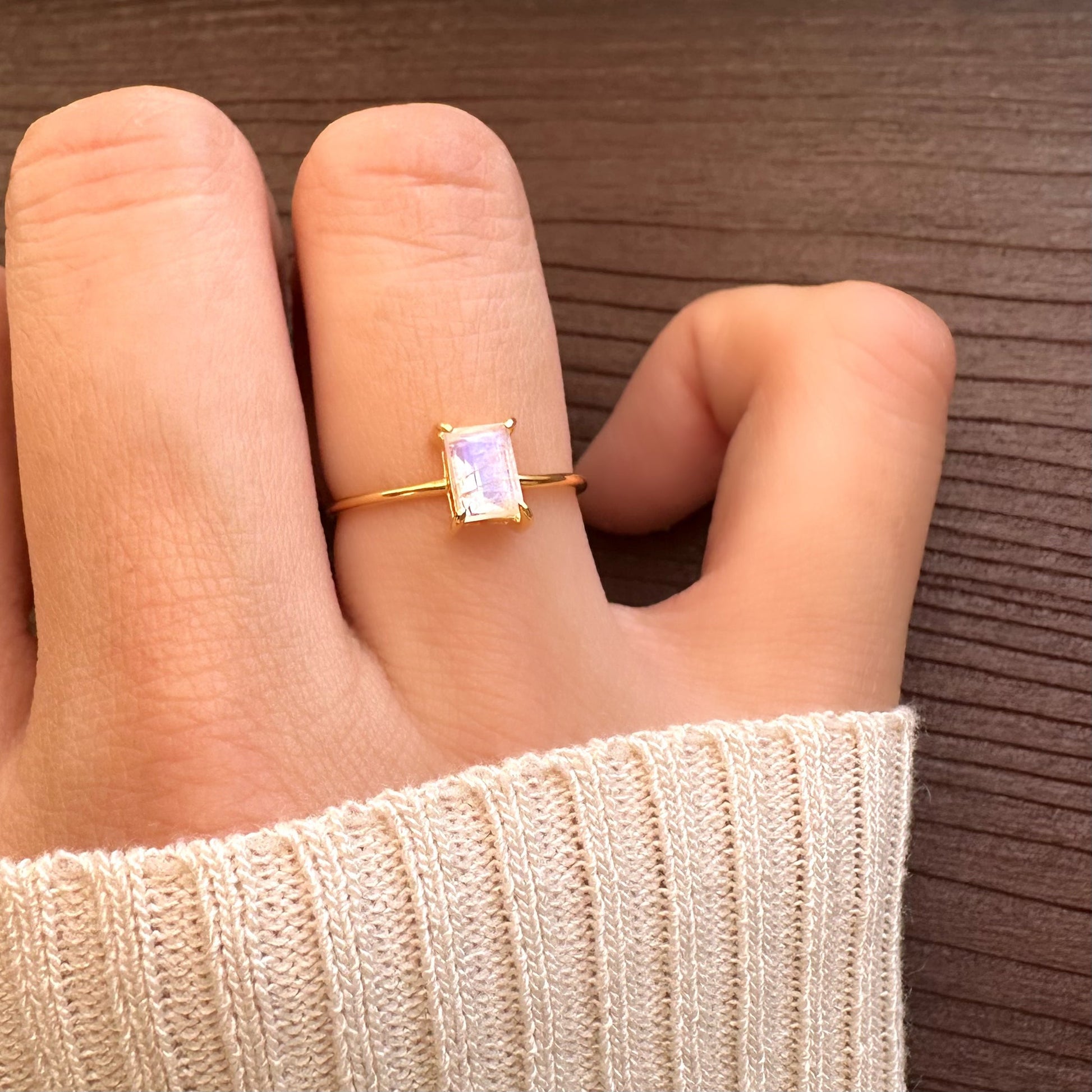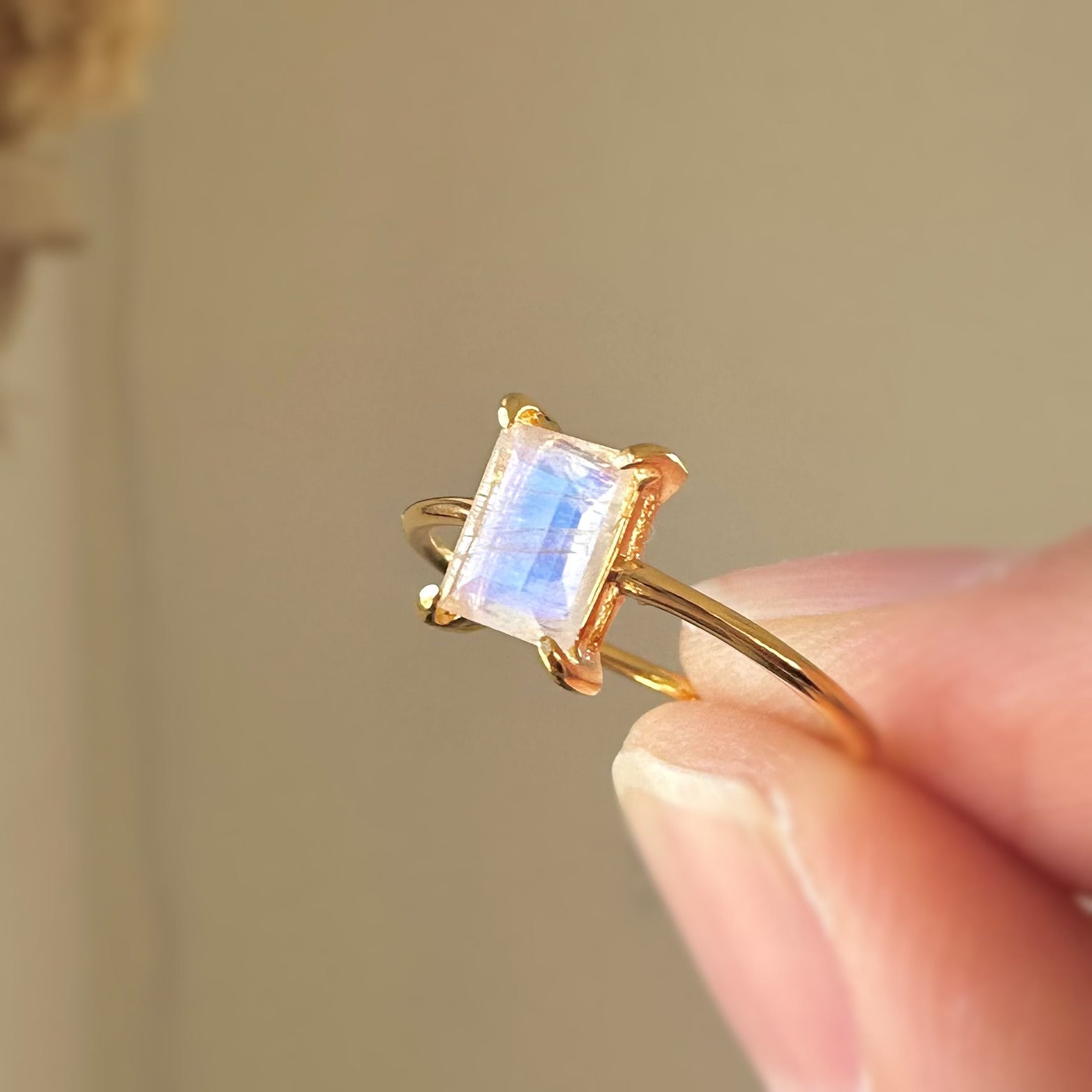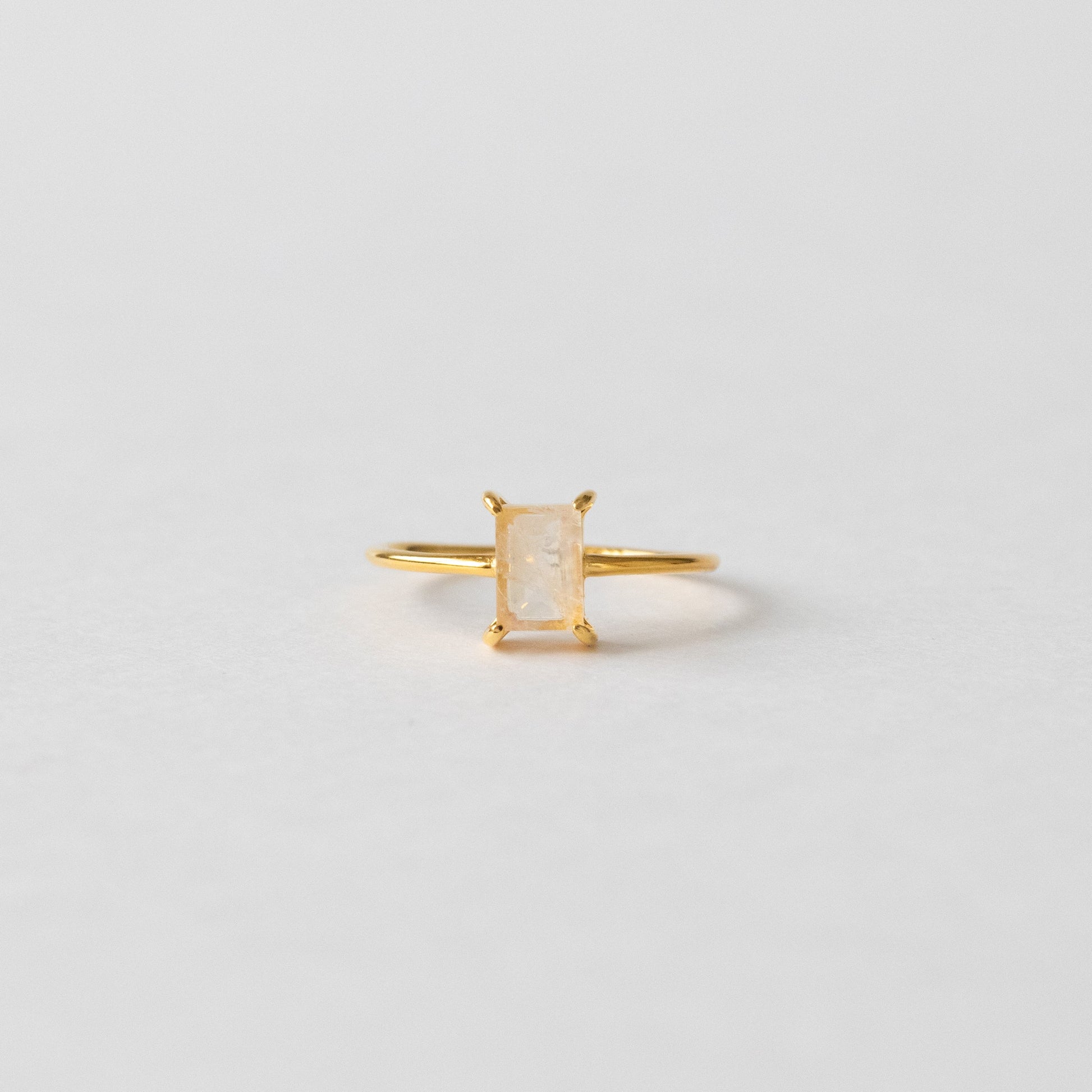 ぱっと見は透明だけれど、光の当たる角度によって青?紫?っぽいシラーが光ってとても綺麗。ムーンストーンの存在感はありつつもシンプルなので仕事でも着けています💍