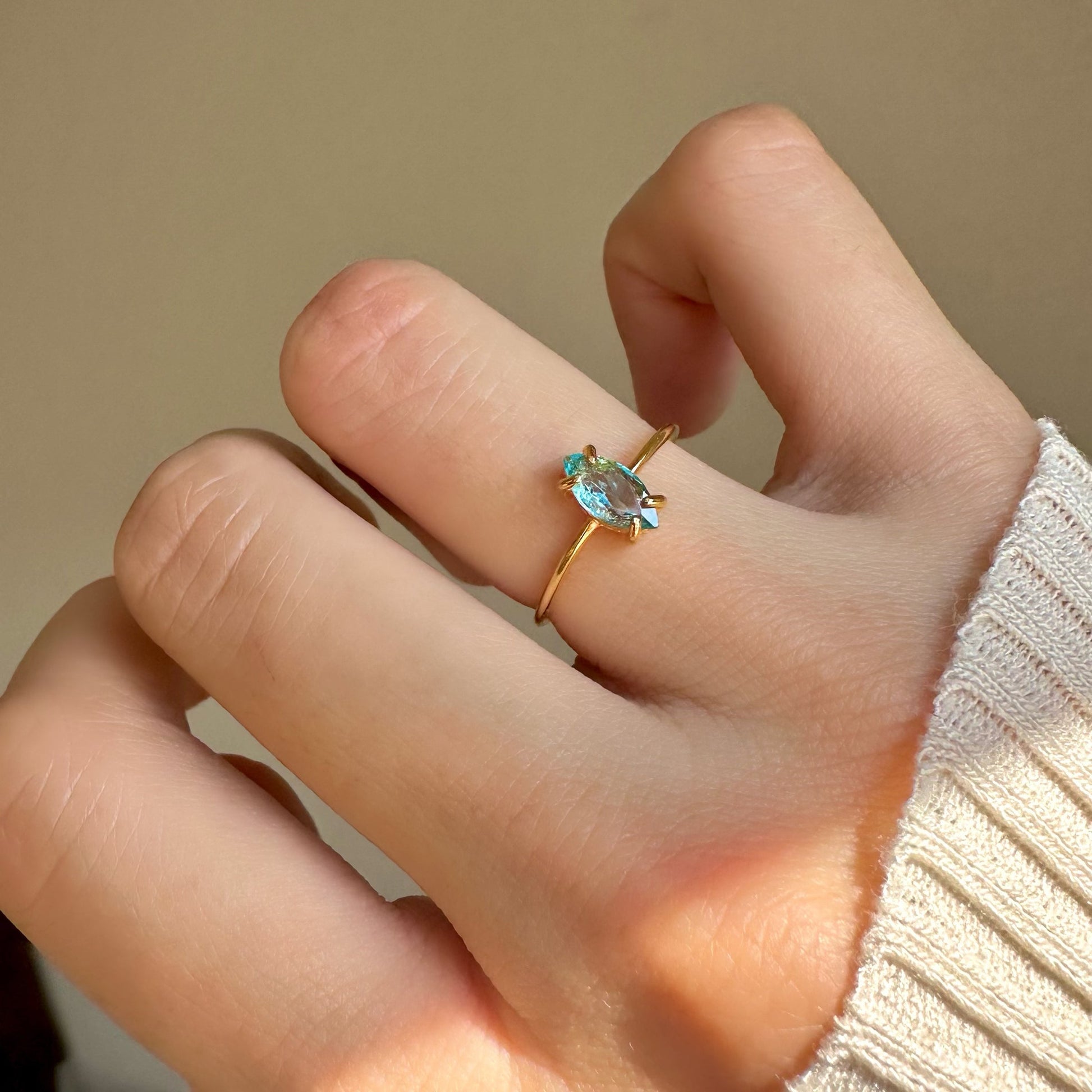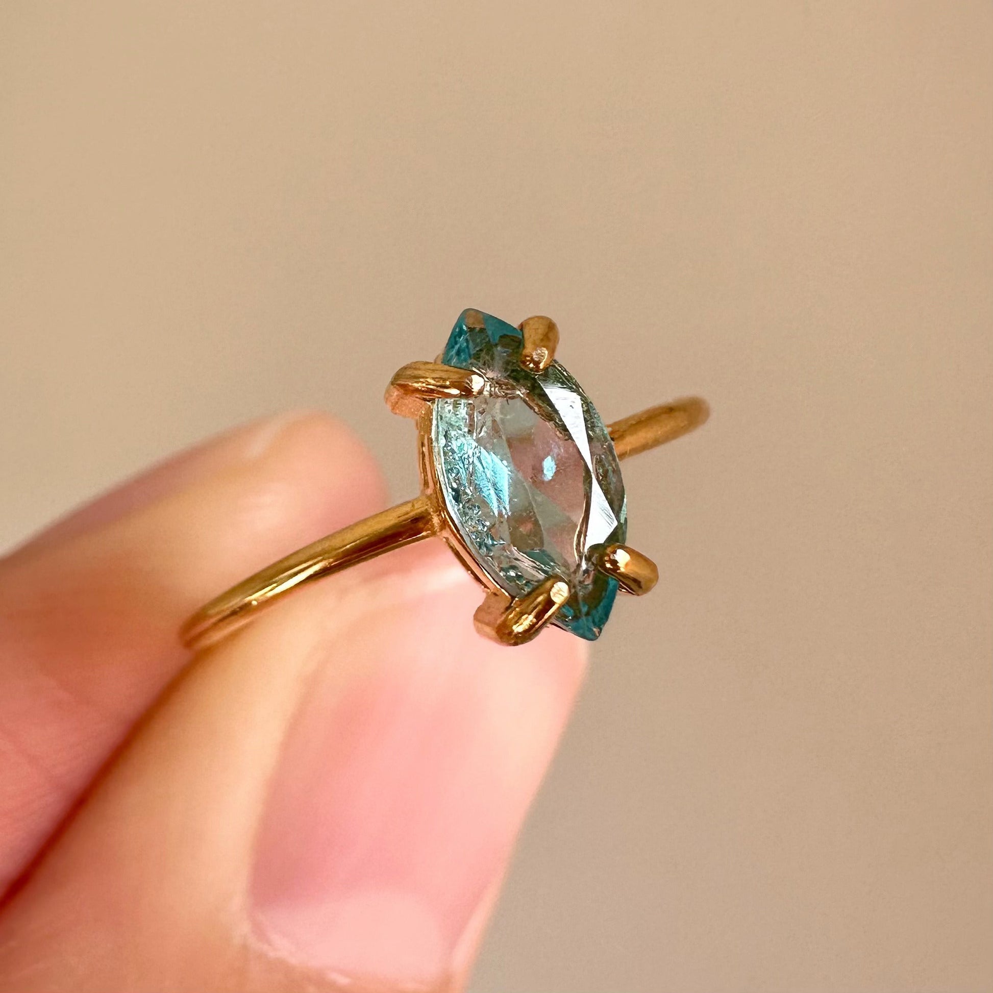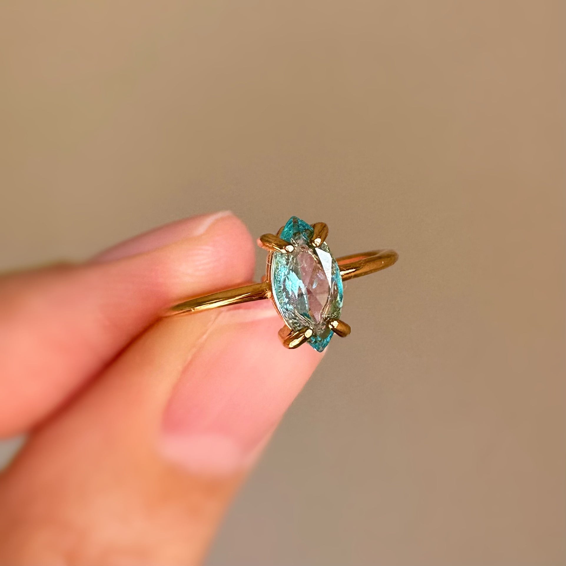 エレガントでモダンな印象を与えるマーキスカットのリングに仕立てました。