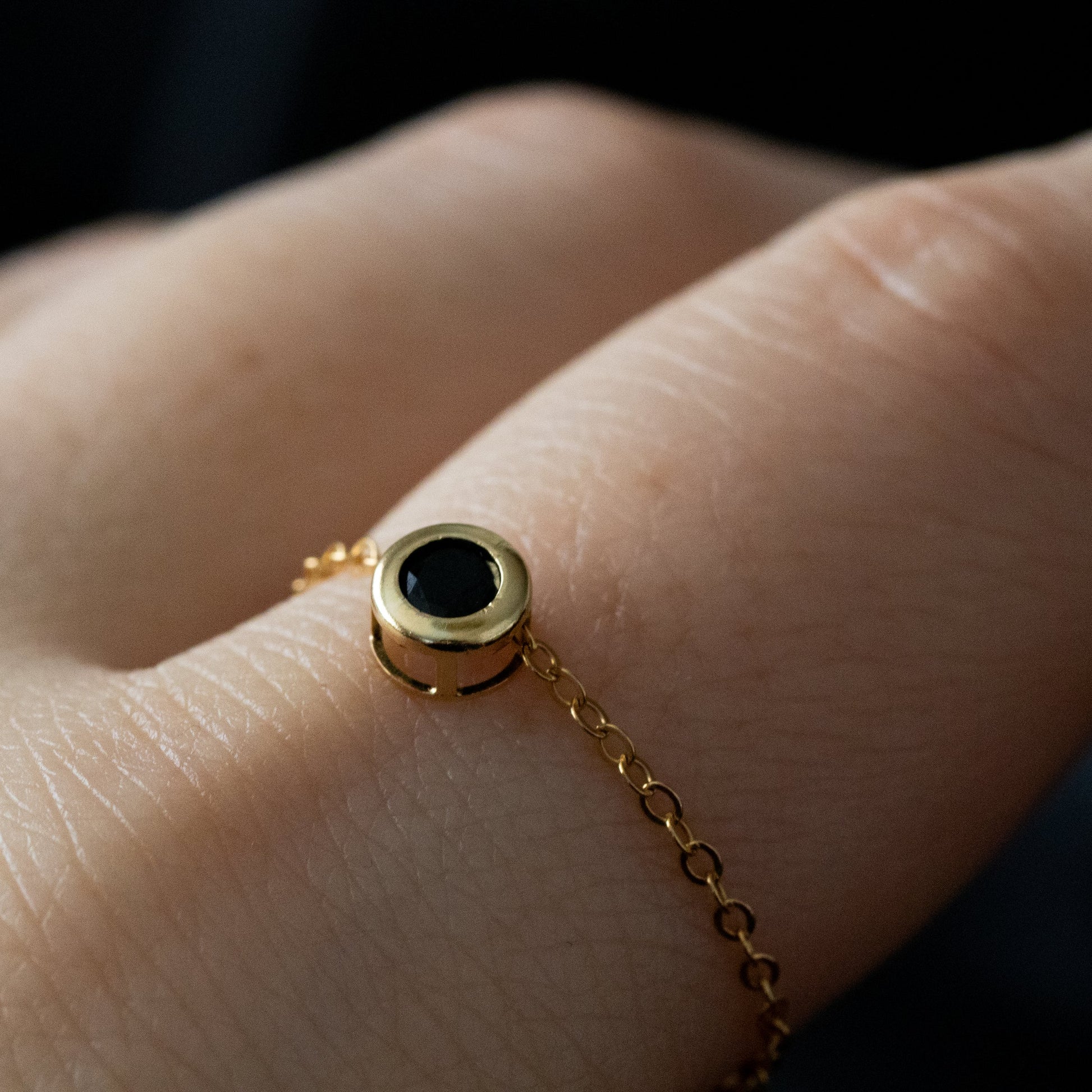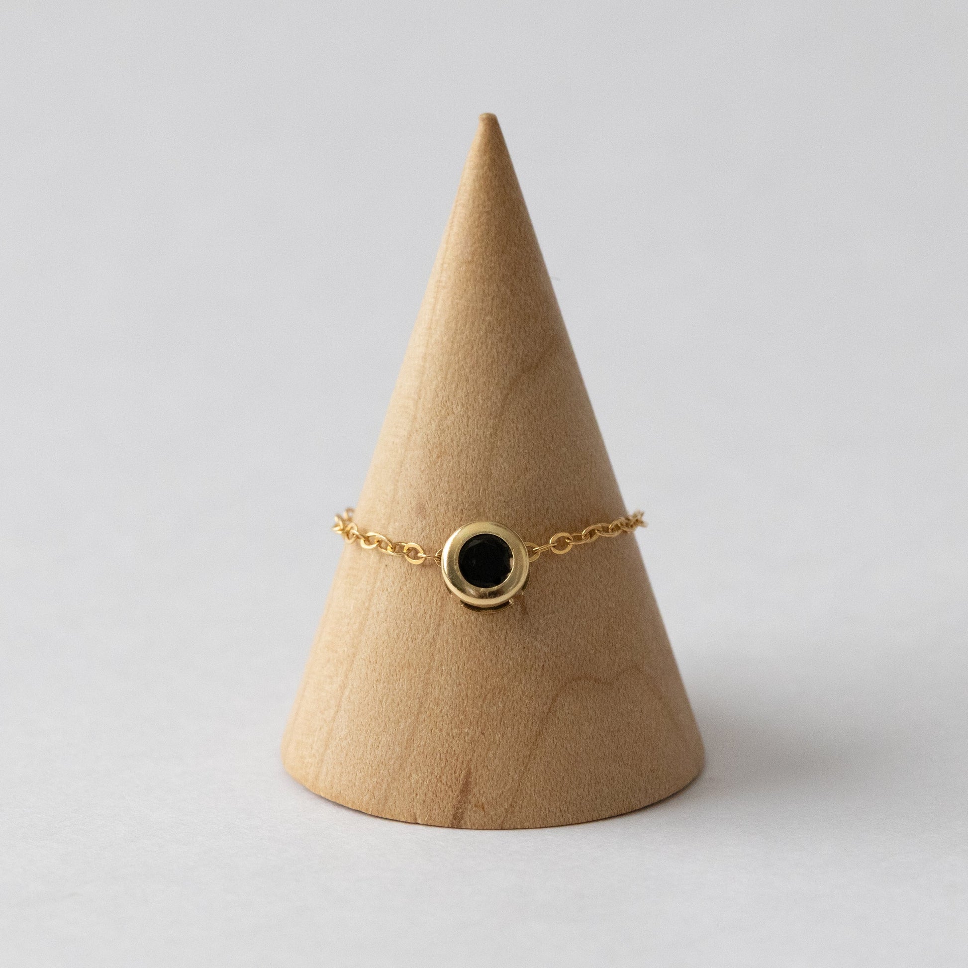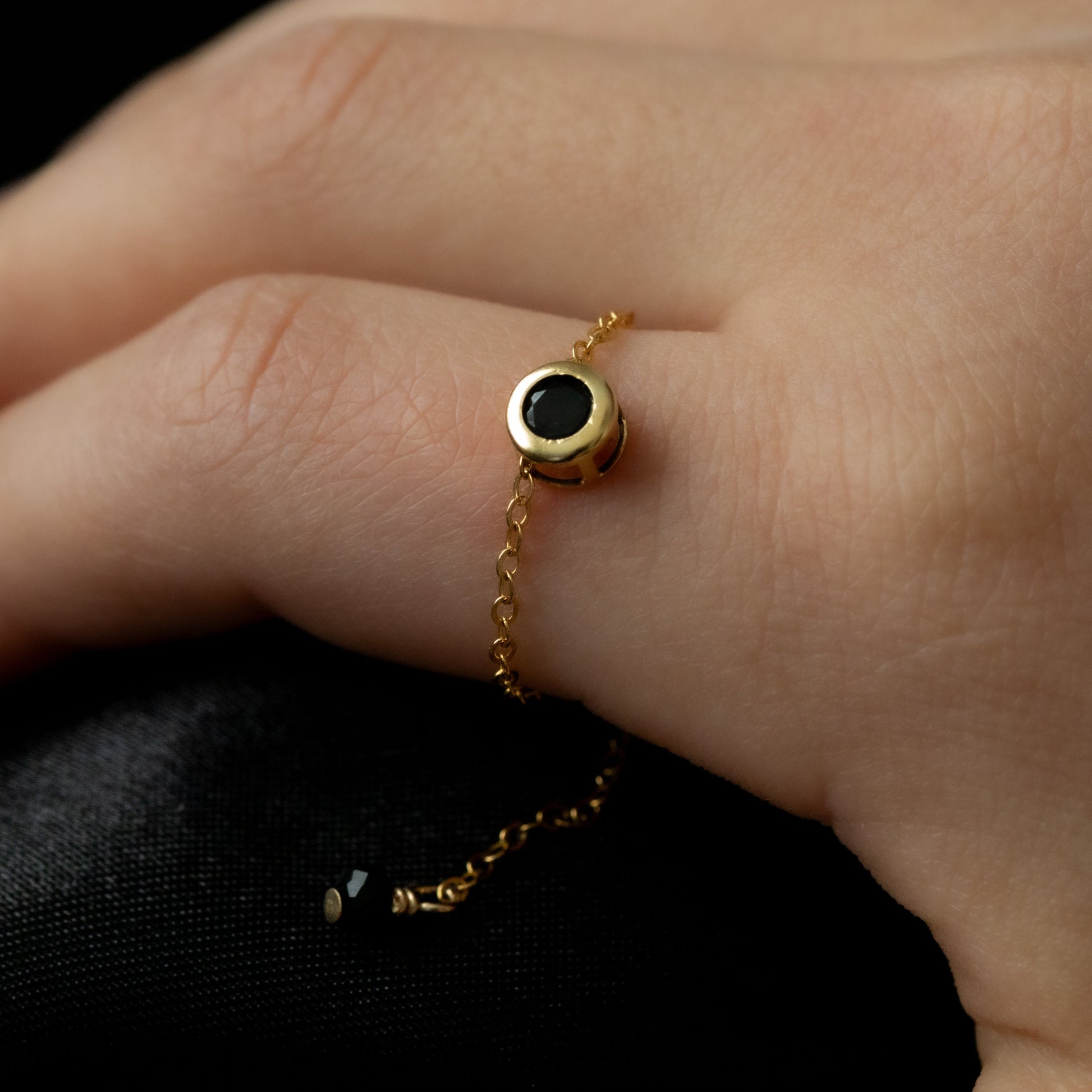 漆黒の輝きと美しい艶が特徴のブラックスピネルを使用した、シンプルながらも洗練された印象のチェーンリングです。