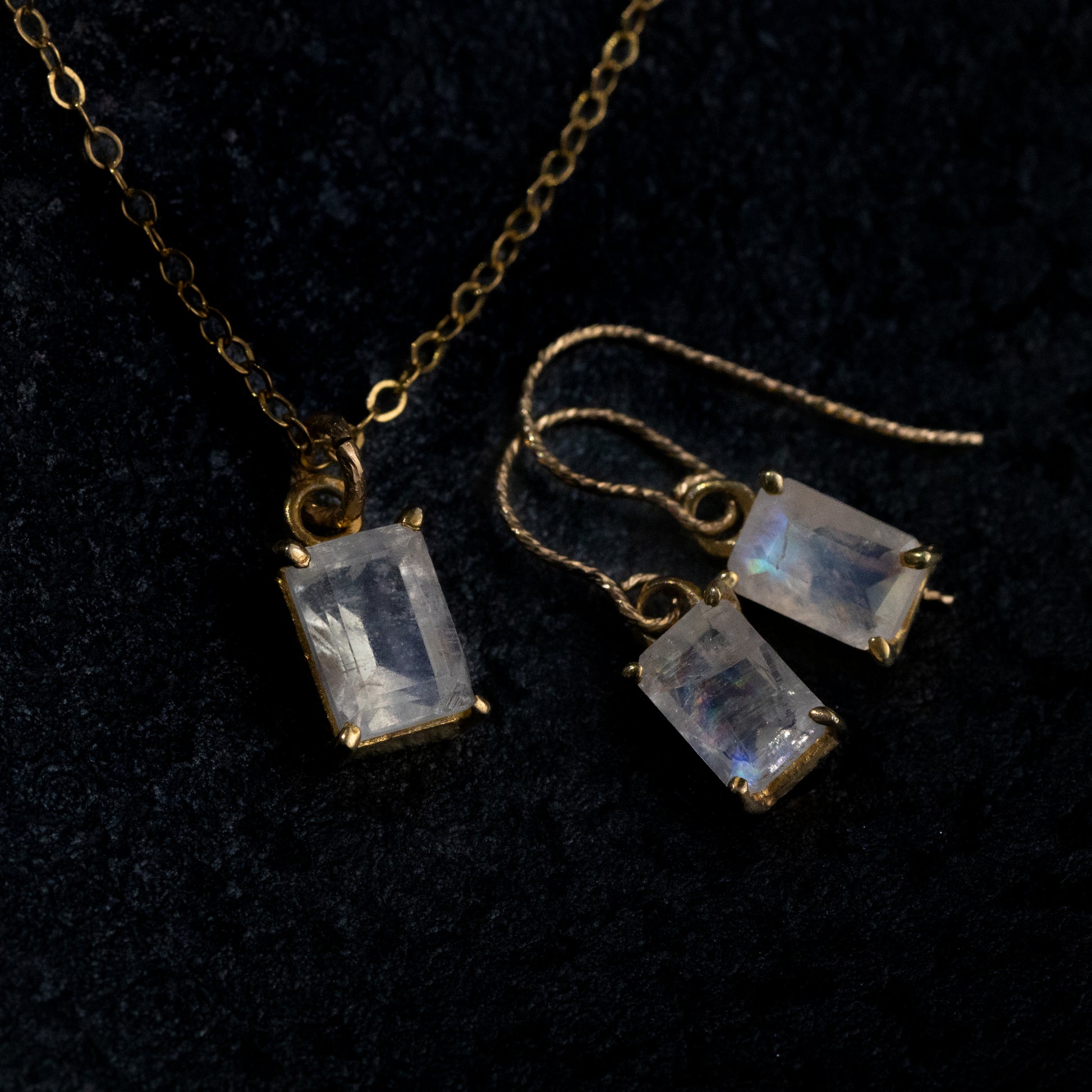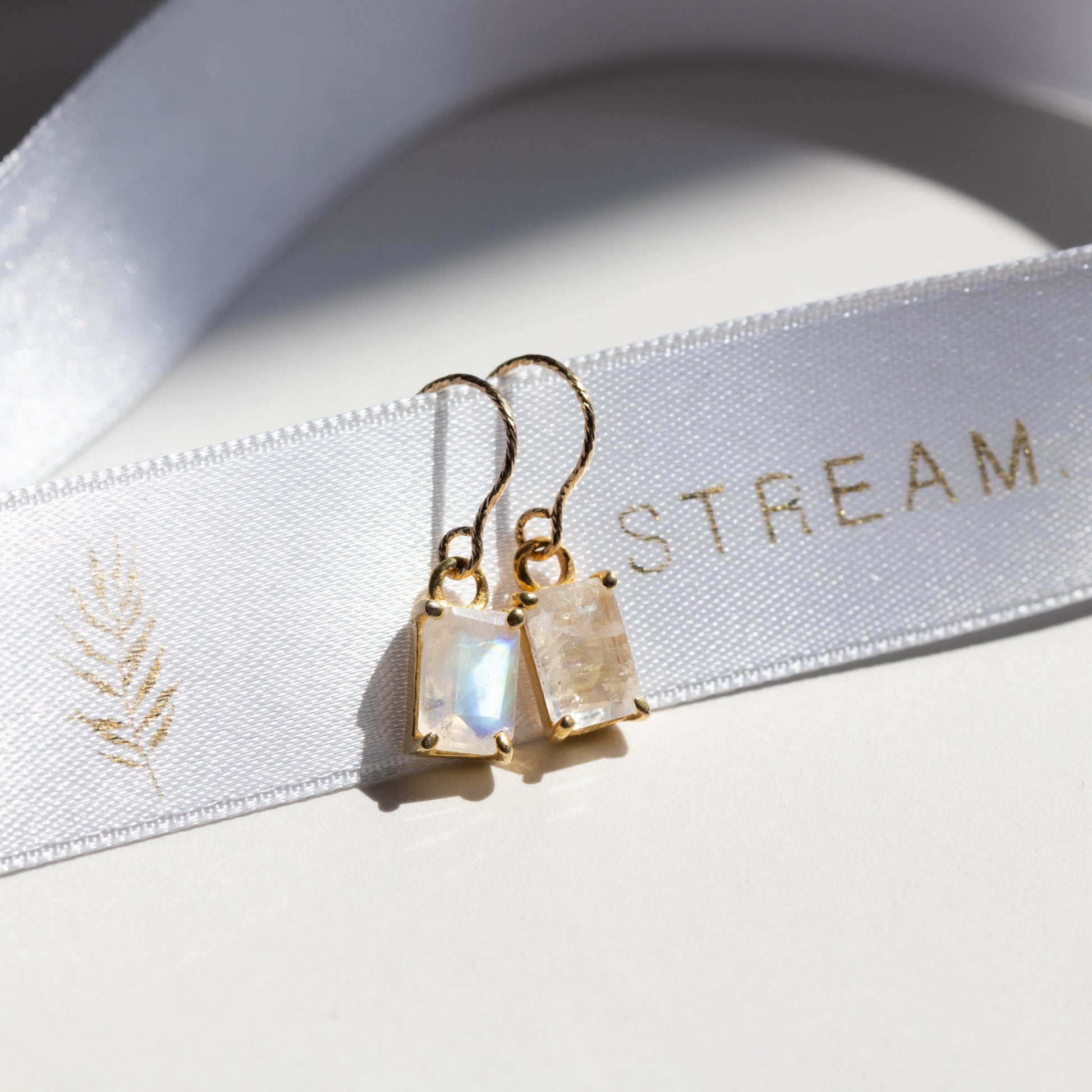 凛としたレクタングルカットと揺れ感が、控えめながらも上品な存在感を引き立てます。