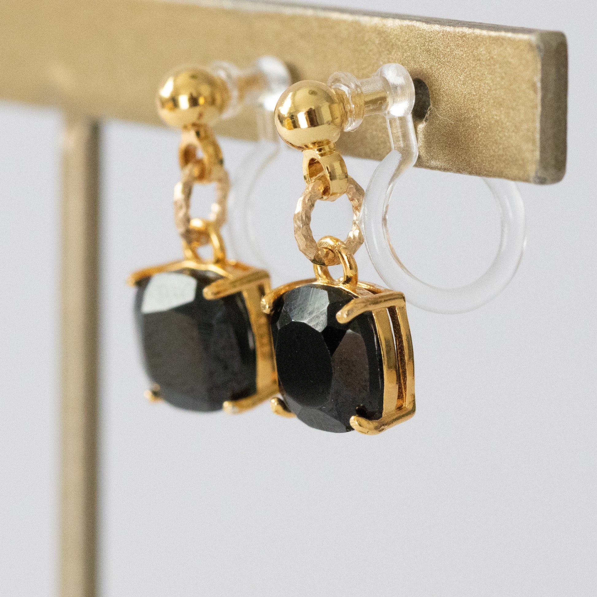 シャープな輝きで魅せる、洗練のブラックピアス。