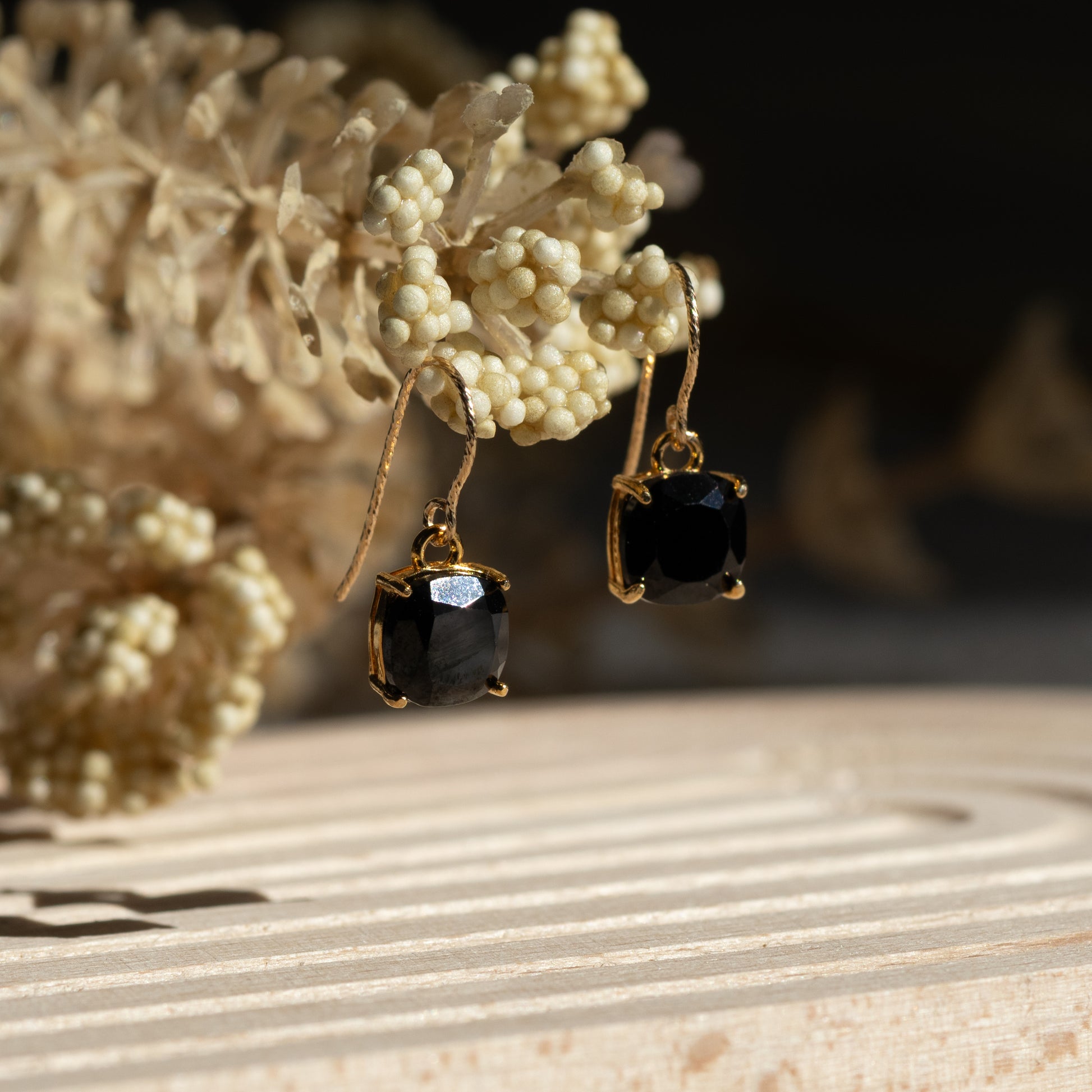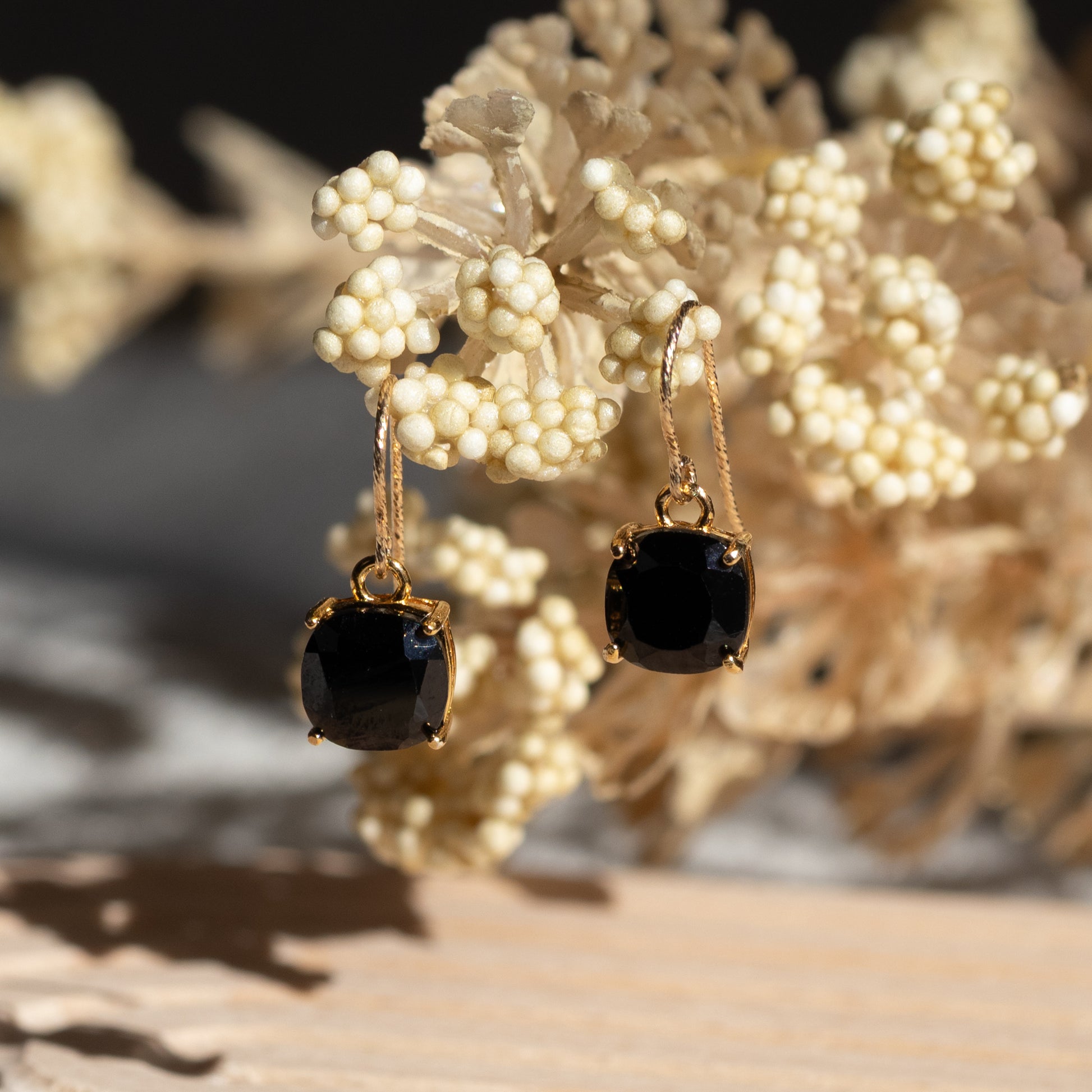 深みのある漆黒と、6mmスクエアカットの反射が美しく調和したブラックスピネル。
