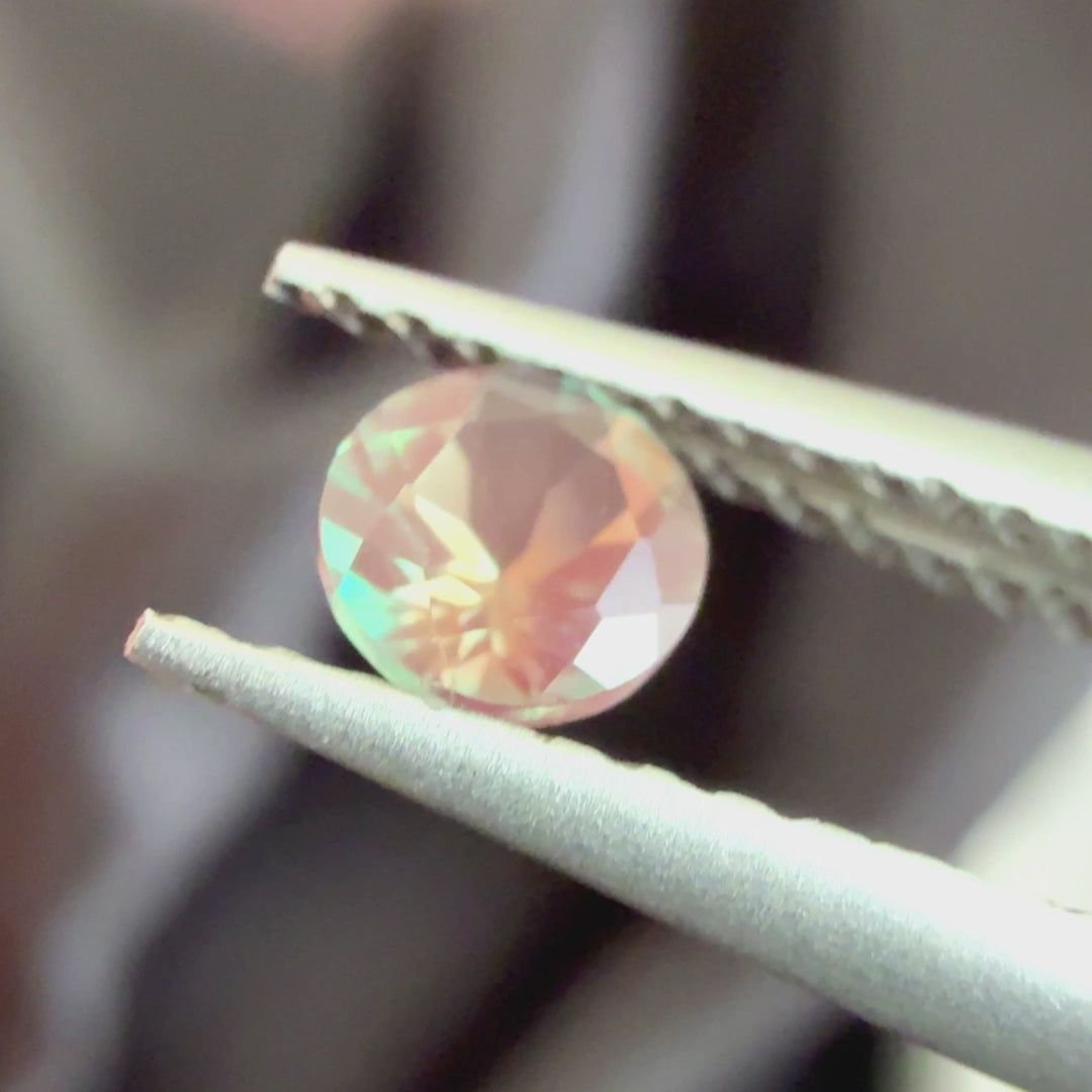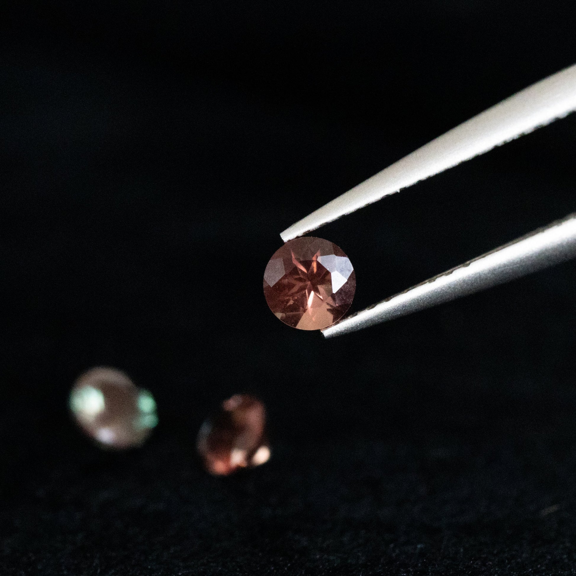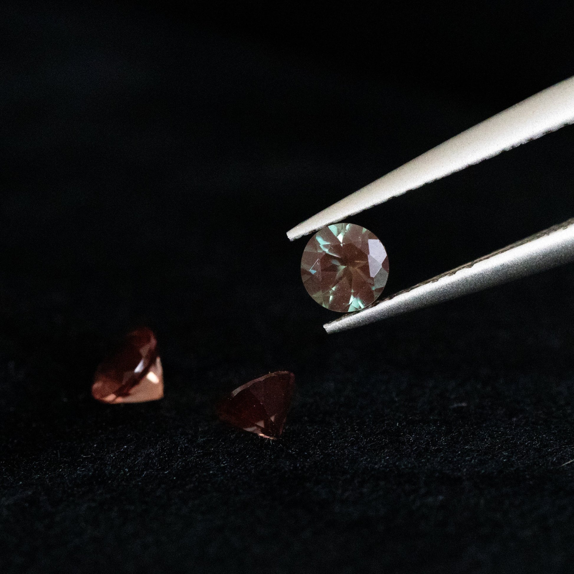 鮮やかなレッドブラウンと深いグリーンが絶妙に交錯するレアストーン・バイカラーアンデシンを使用。