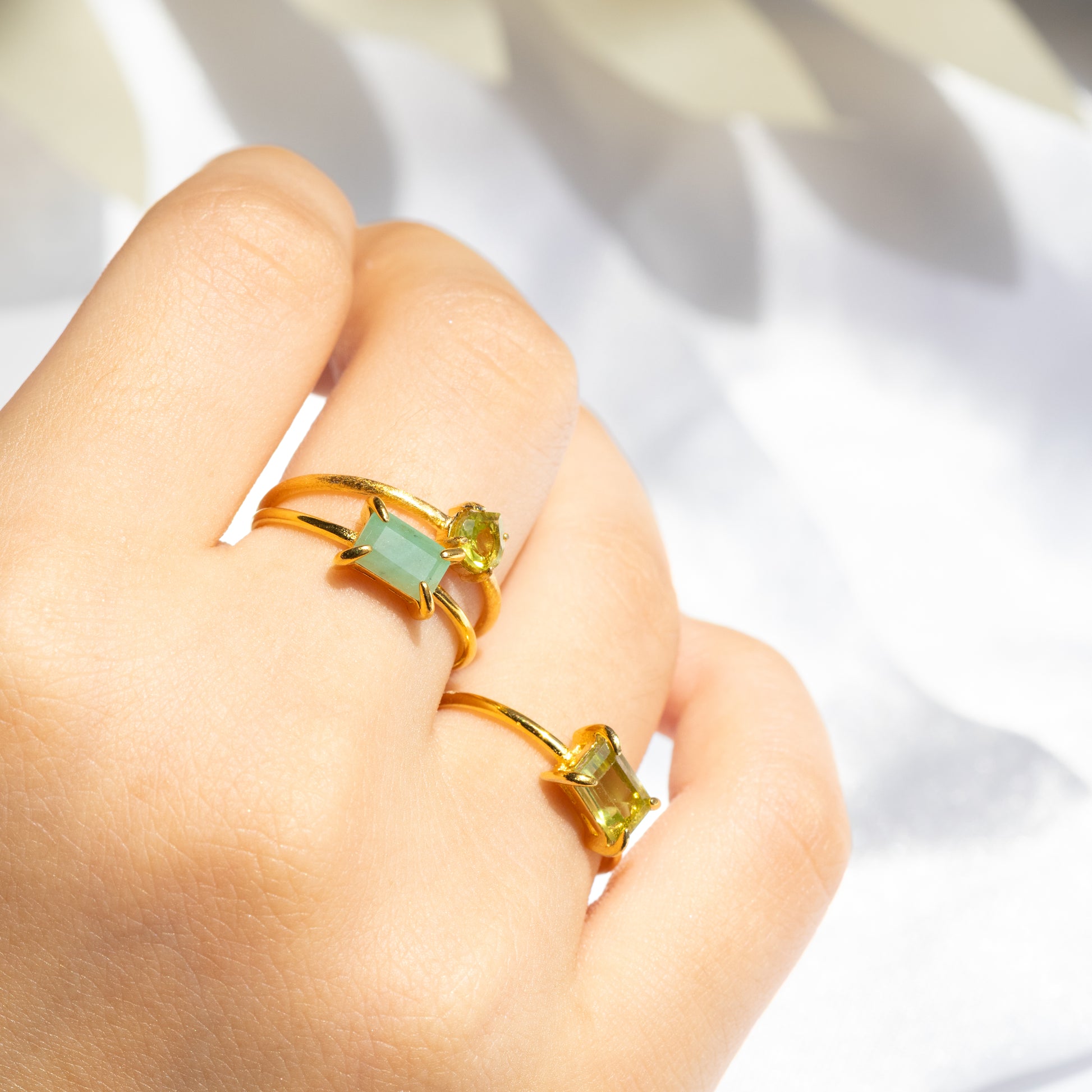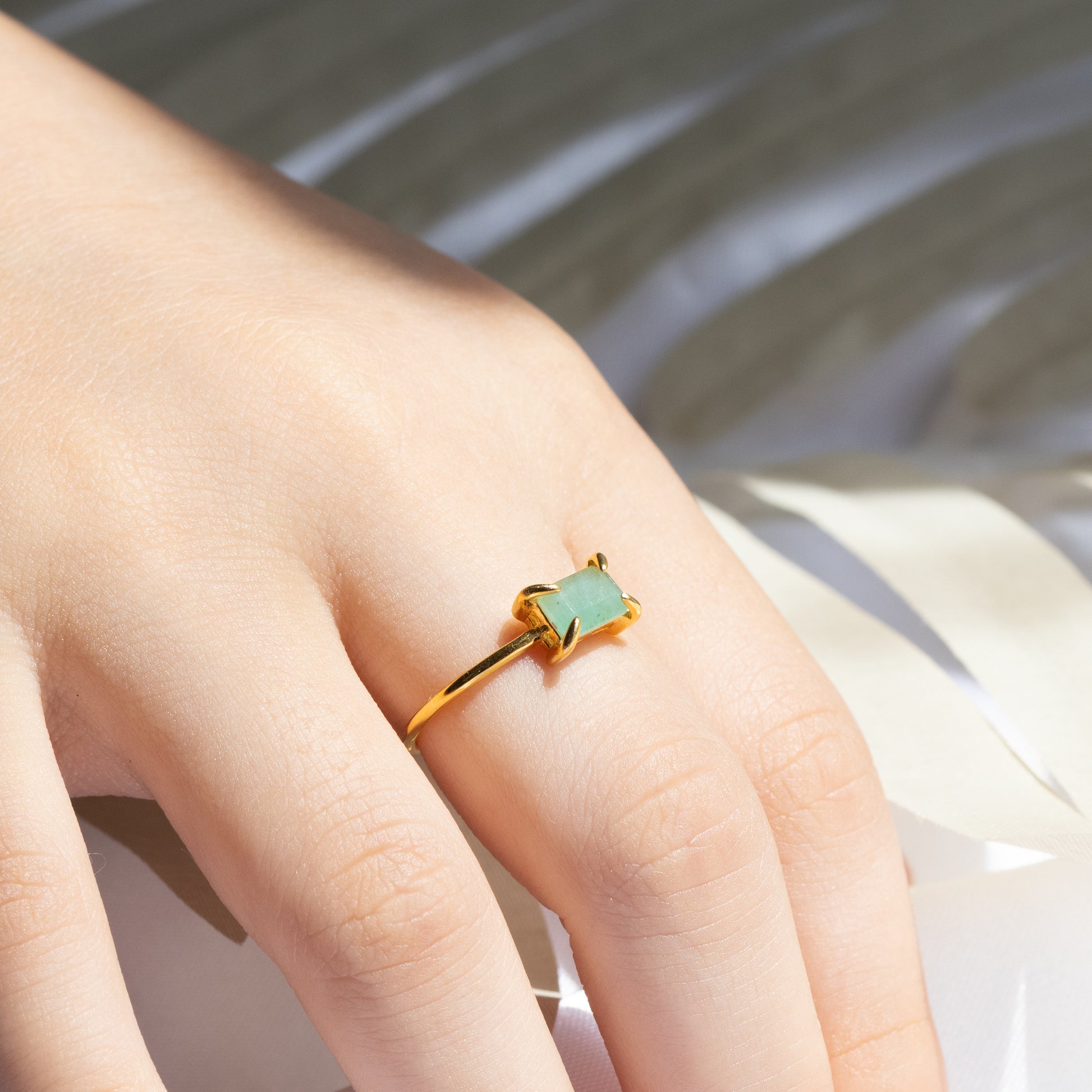 濃いグリーンとは異なる優しい雰囲気が、ナチュラルで上品なアクセントを加えたい方におすすめのリングです。