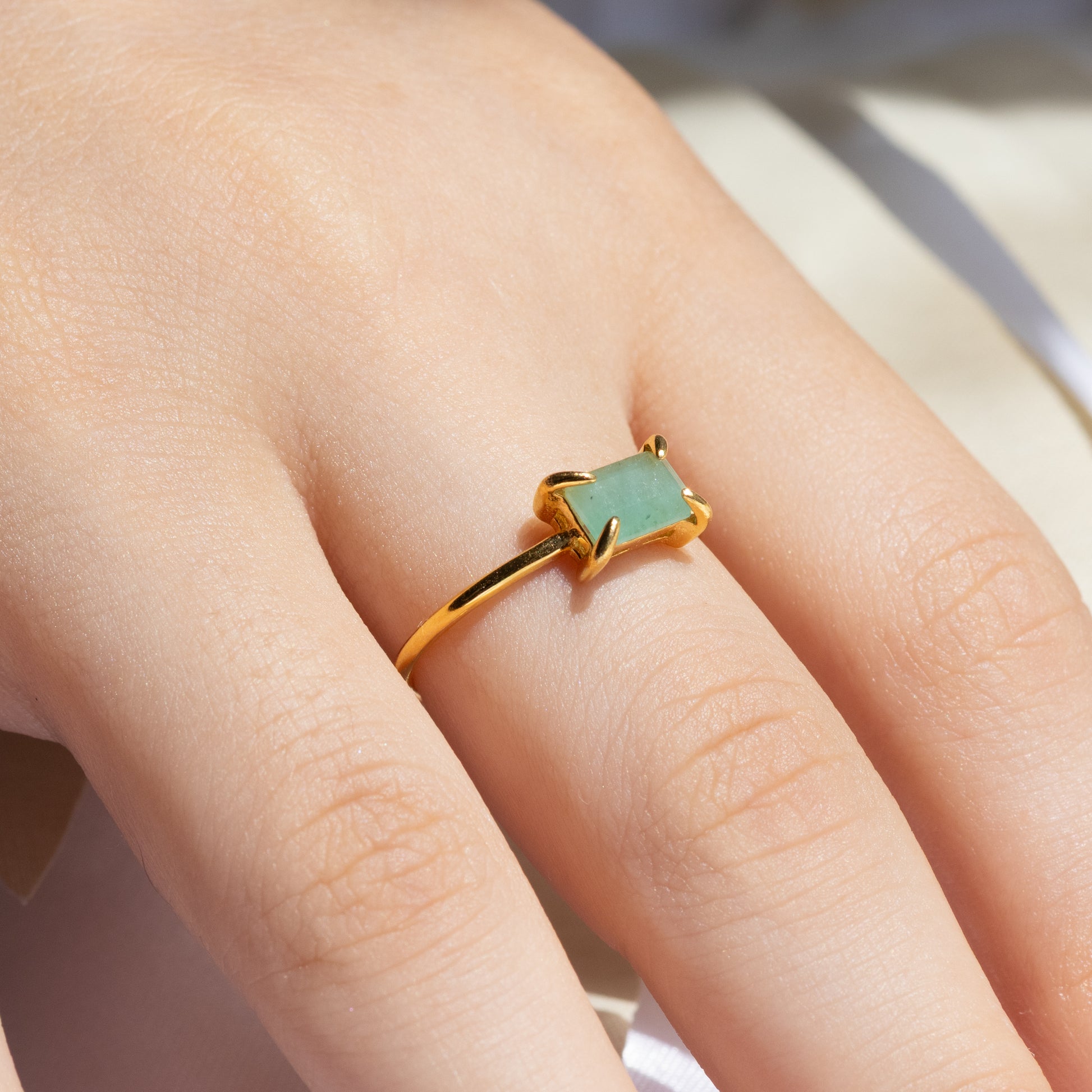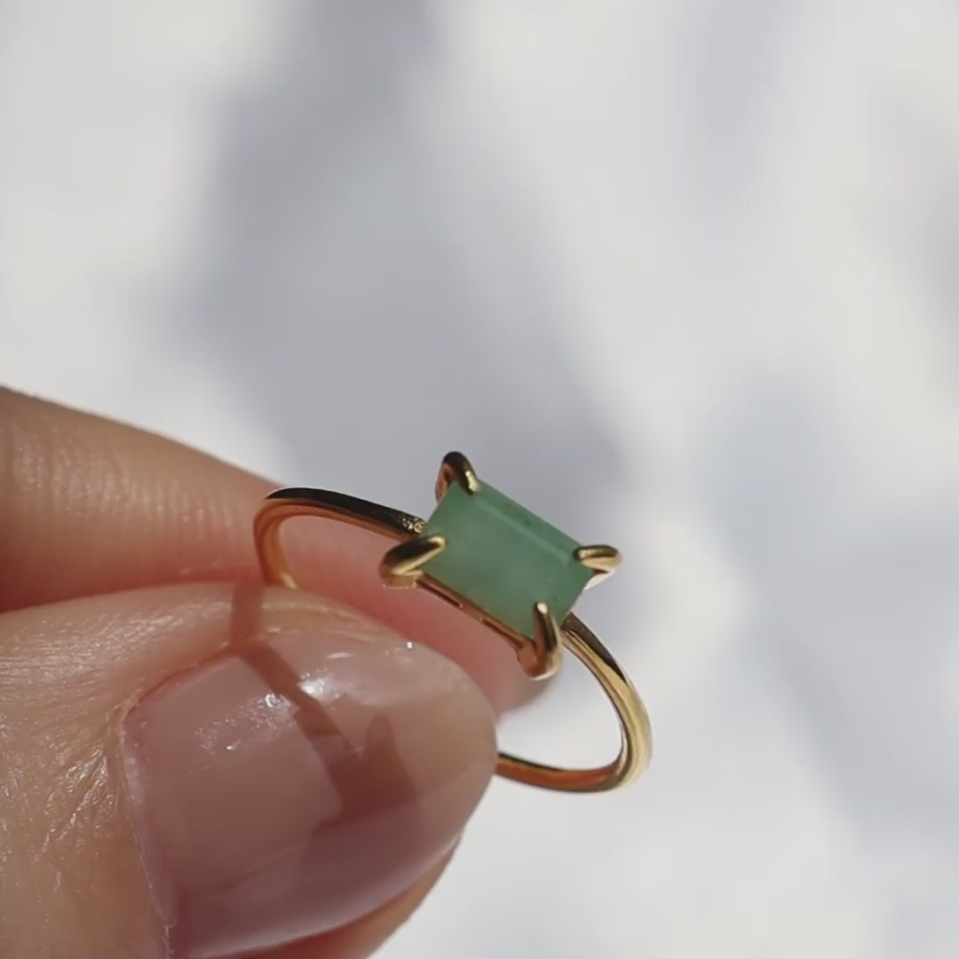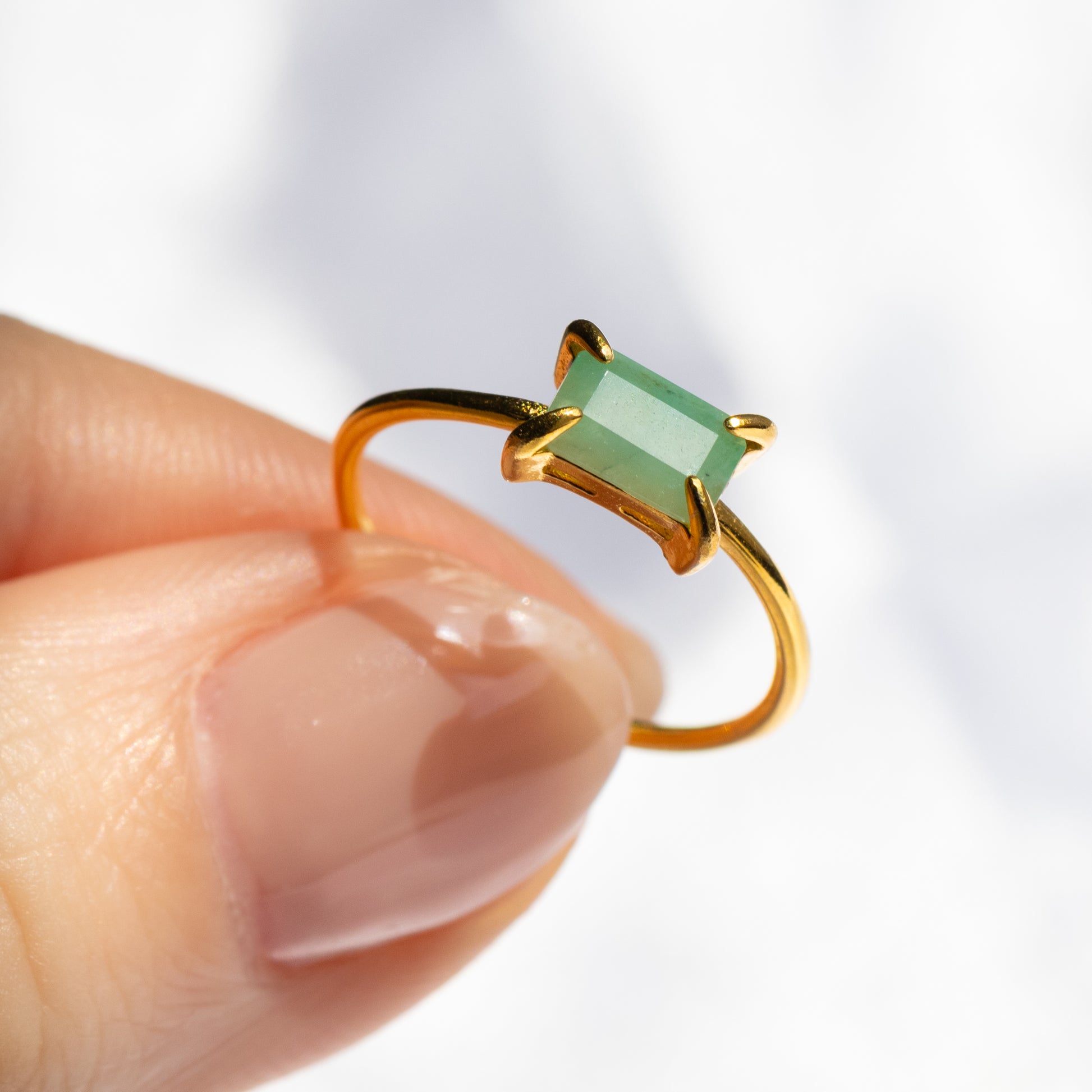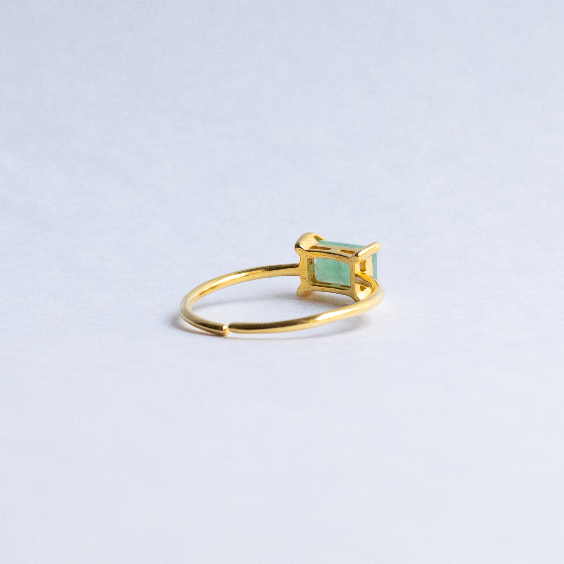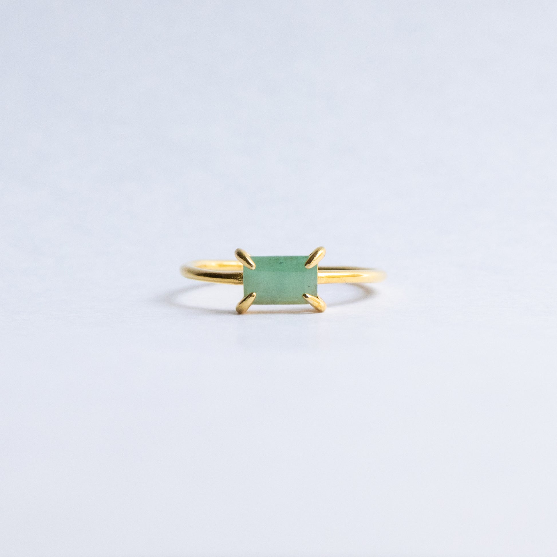柔らかなミルキーグリーンが指先に静かに溶け込む、ブラジル産エメラルドのレクタングルリングです。