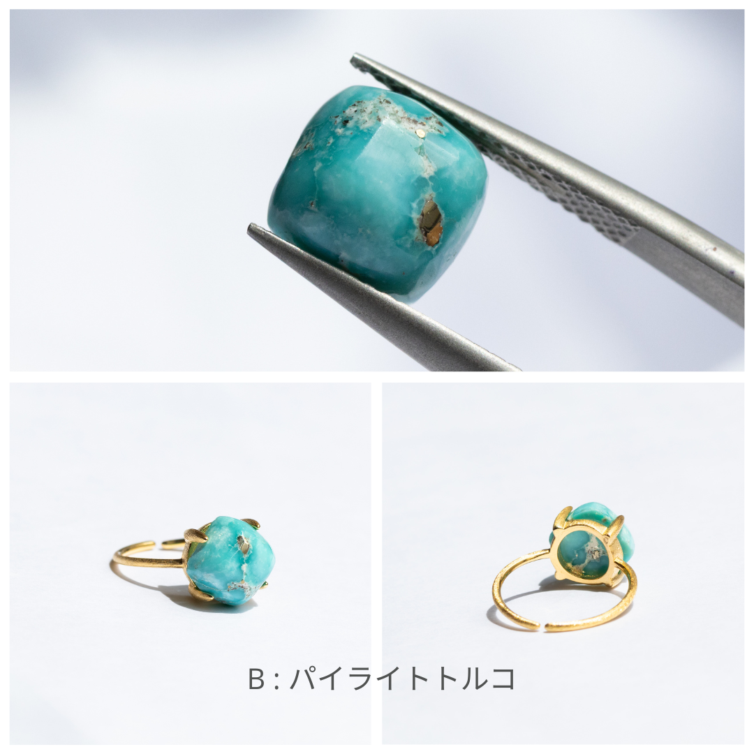 明るいターコイズブルーの中に、パイライトがきらめく特別な石。
