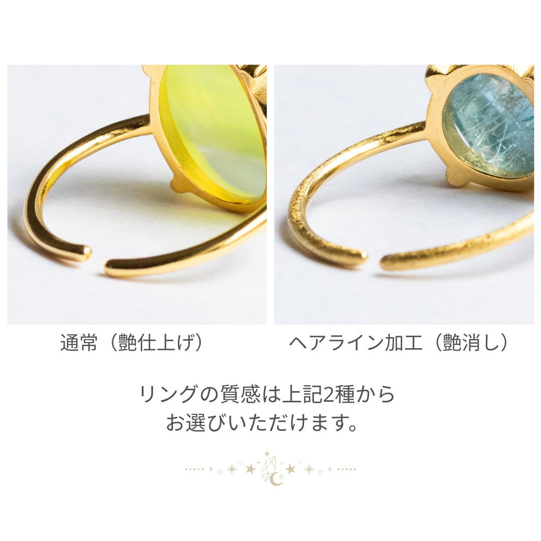 角度を変えるたびに細やかな輝きがきらきらと踊り、明るくポジティブな気持ちにさせてくれます。夏の日差しに映える、華やかな1石です。