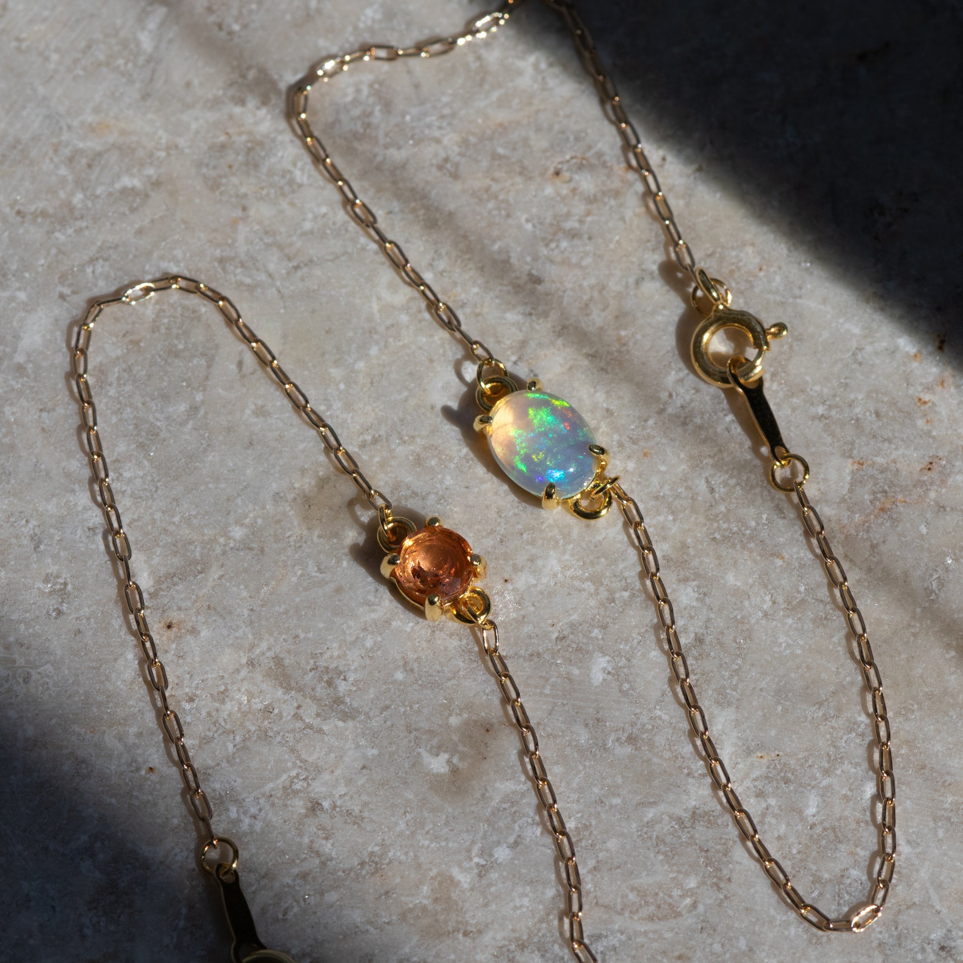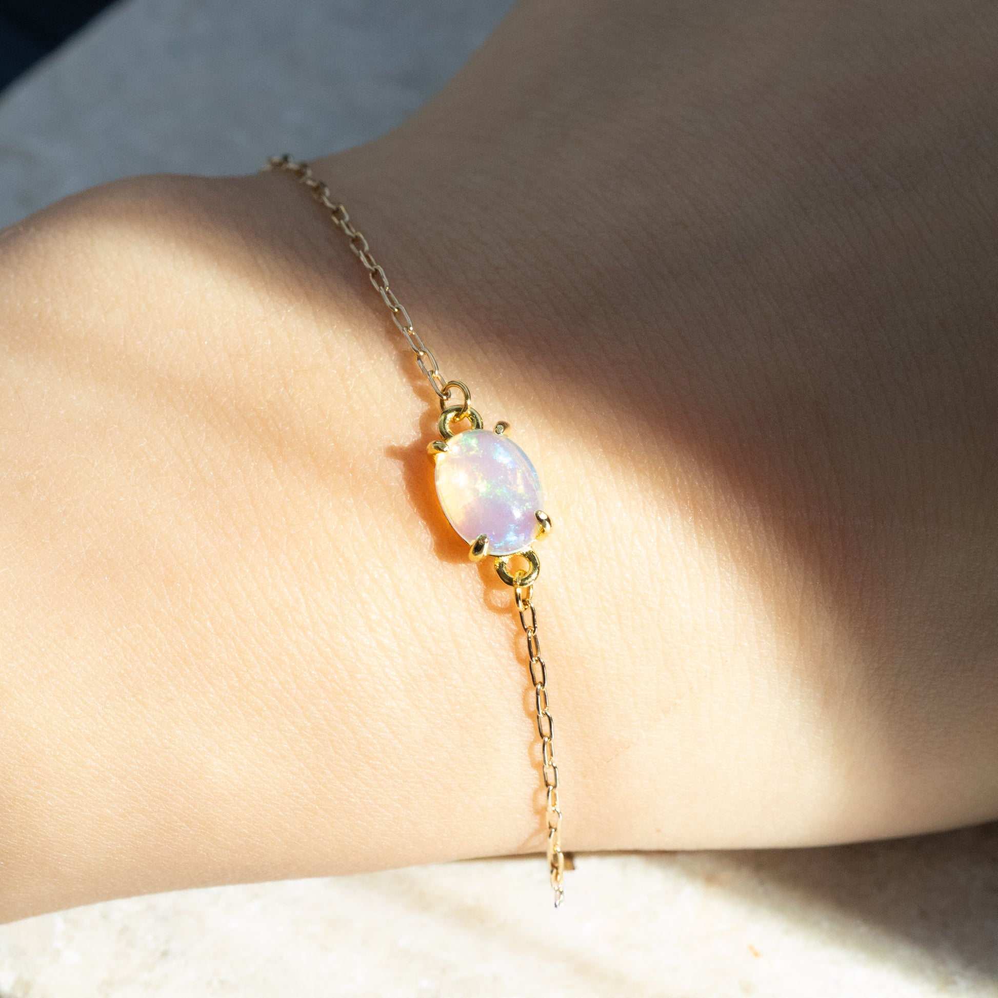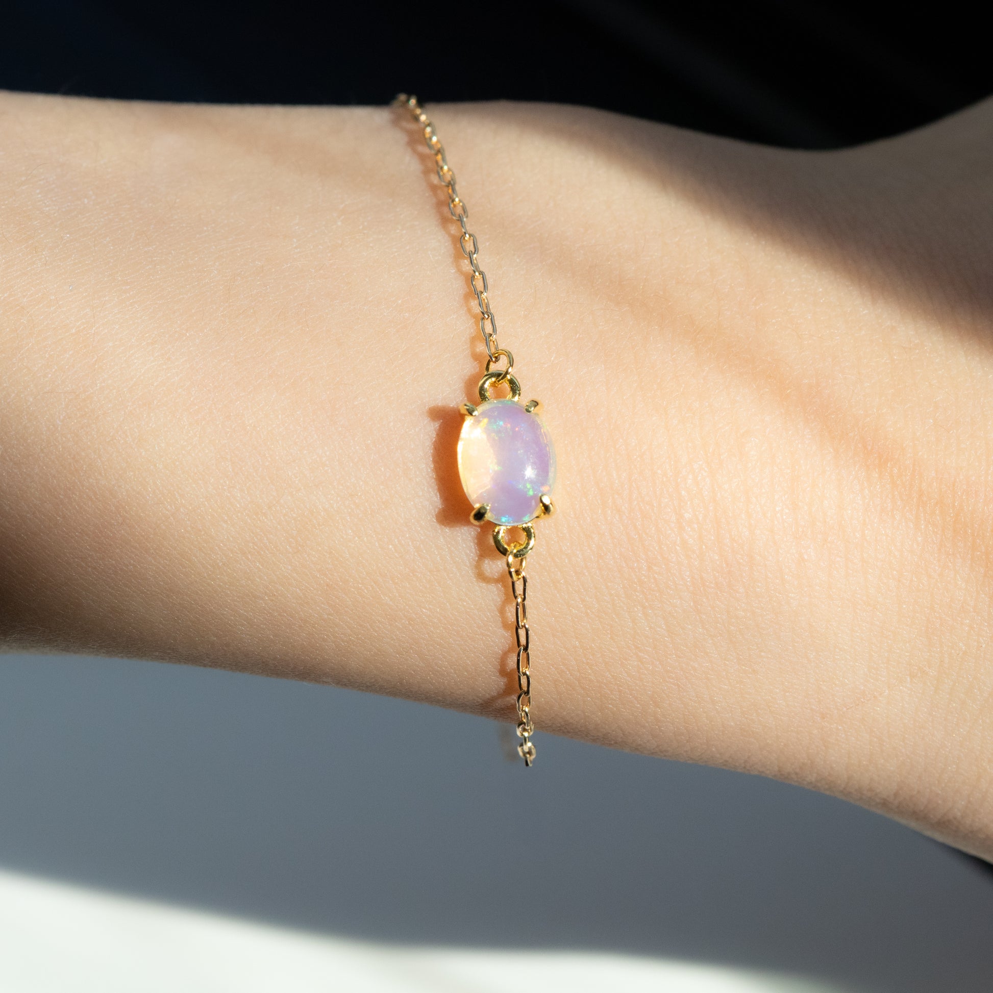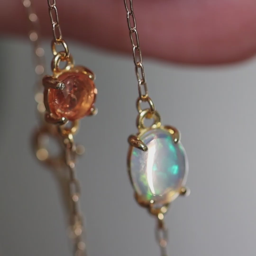 チェーンの線が細くて華奢なので、オパールの透明感と遊色が引き立ちます。