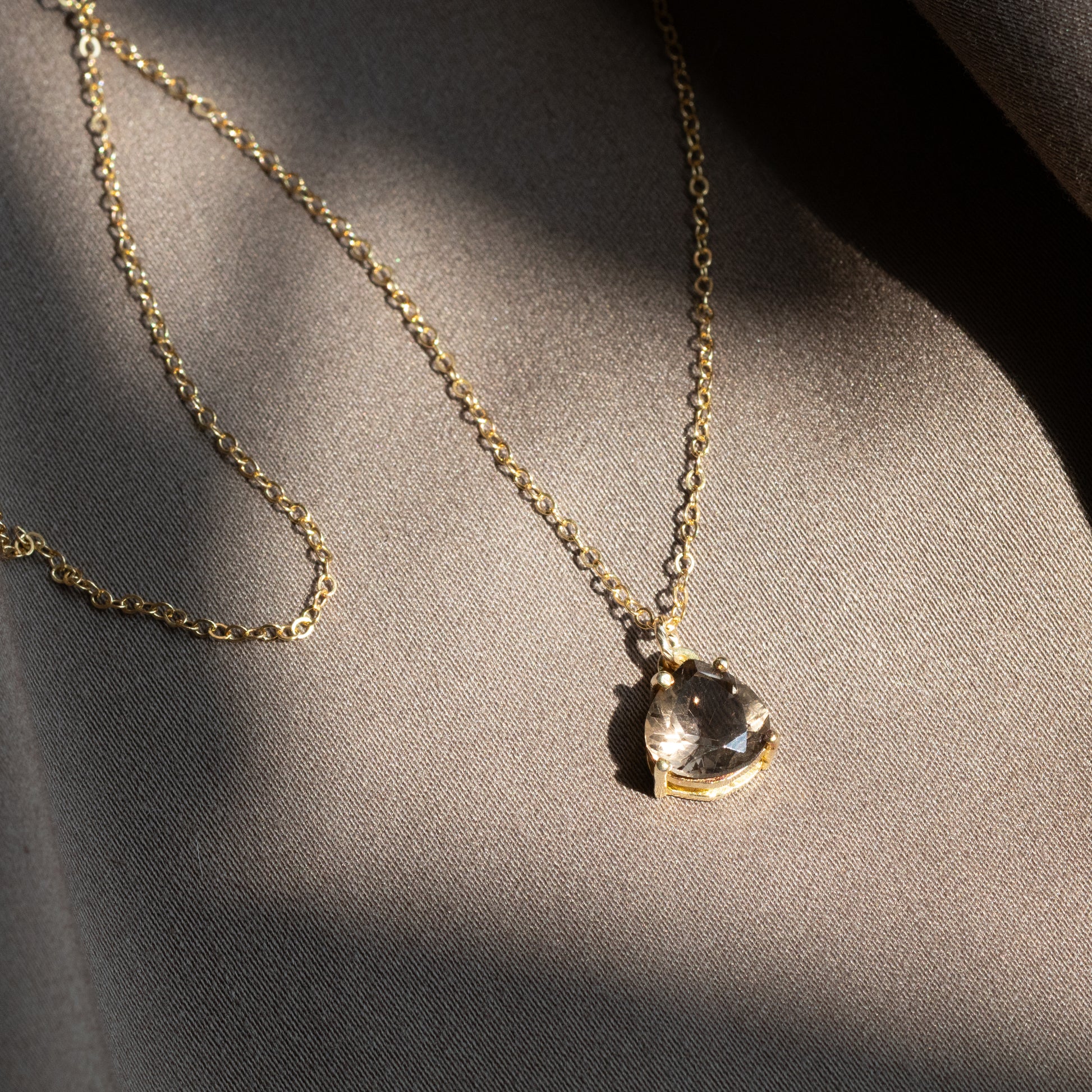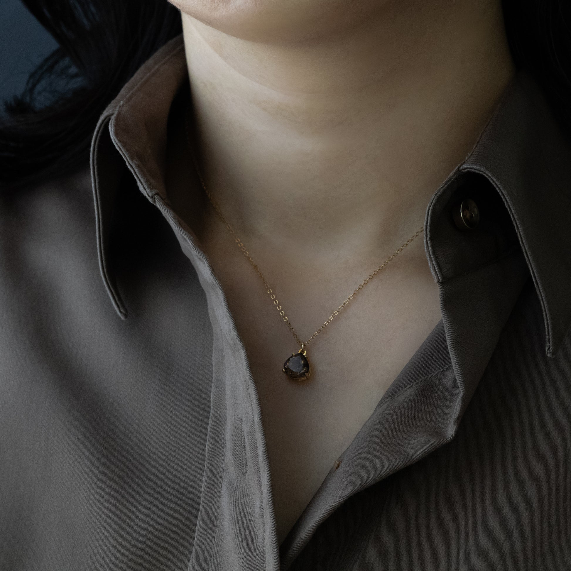 ふっくらとしたマロンファセットカットが、胸元にやわらかな輝きを添えるネックレス。