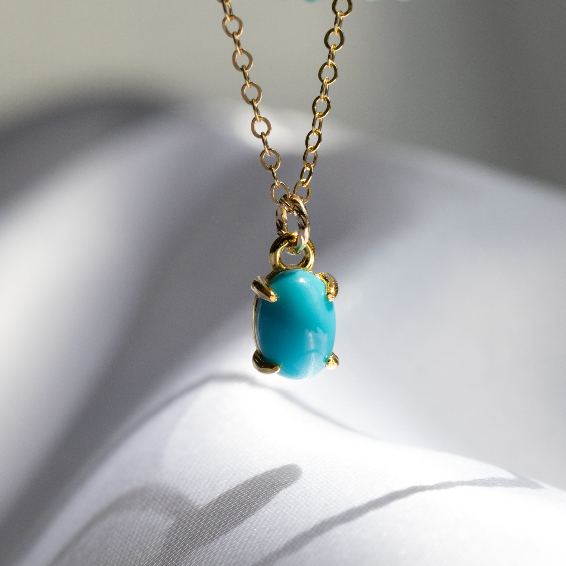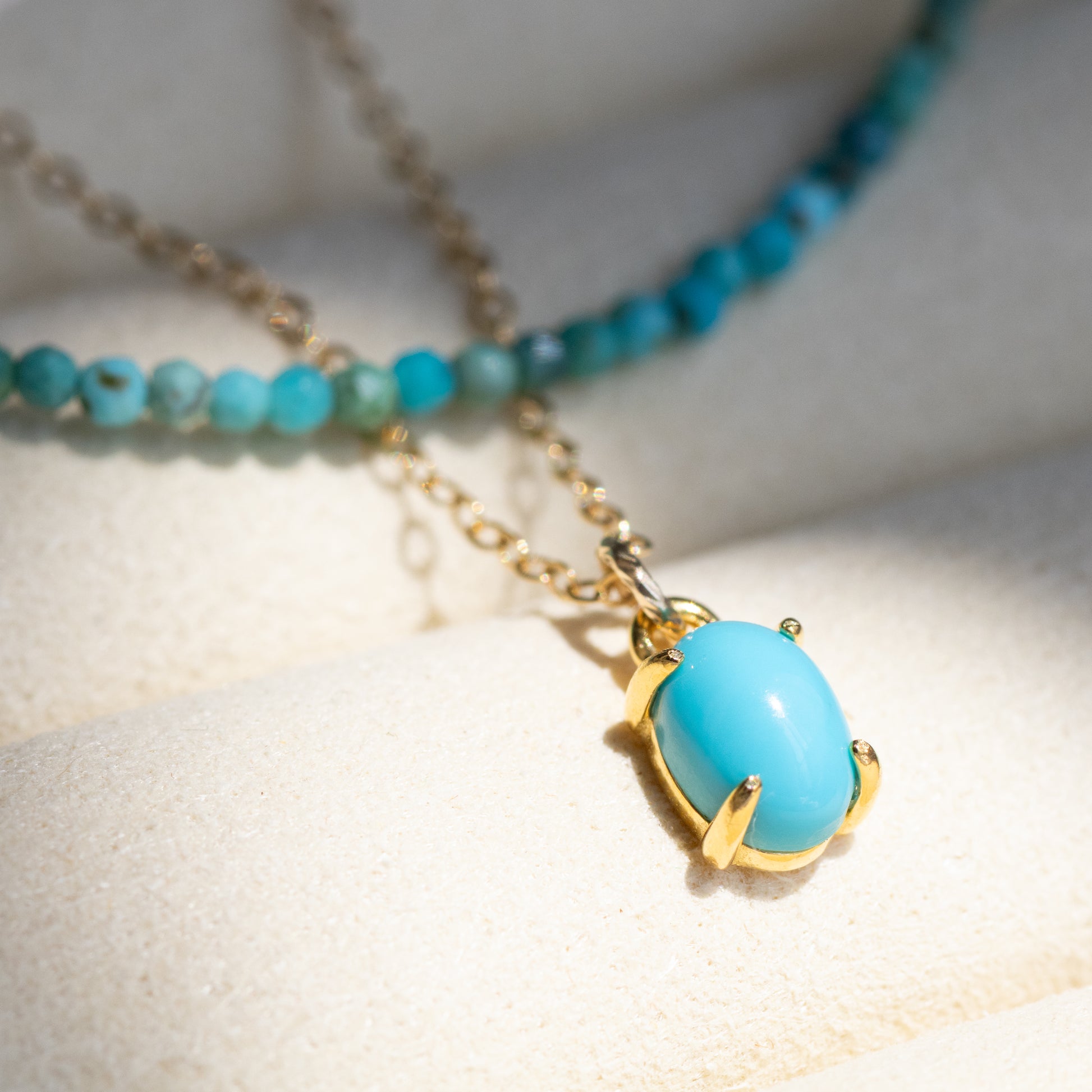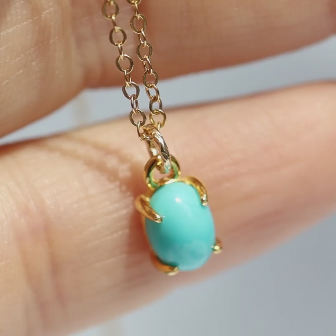 チェーンには上質な14kgf(ゴールドフィルド)を使用し、ターコイズの瑞々しさをより引き立てます。