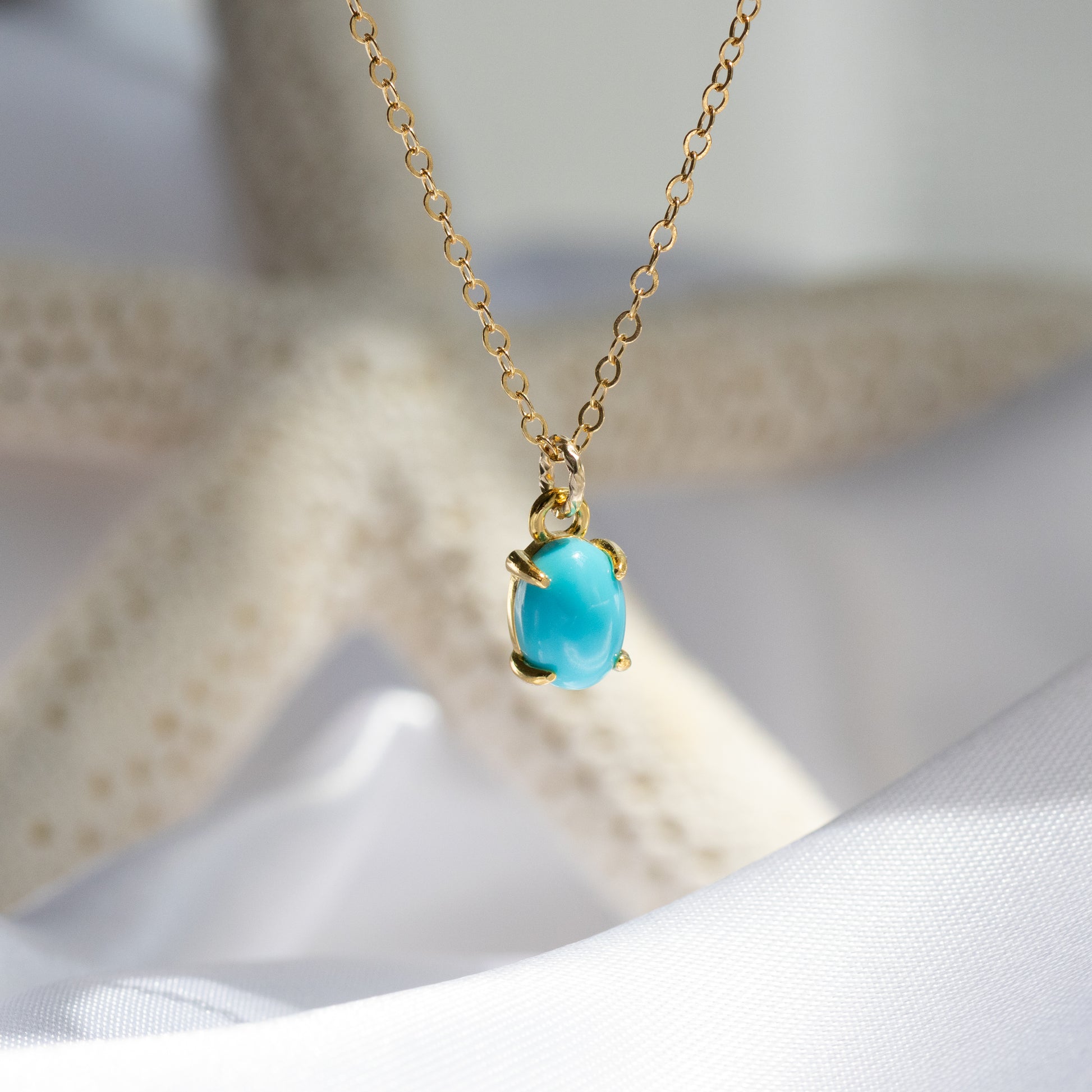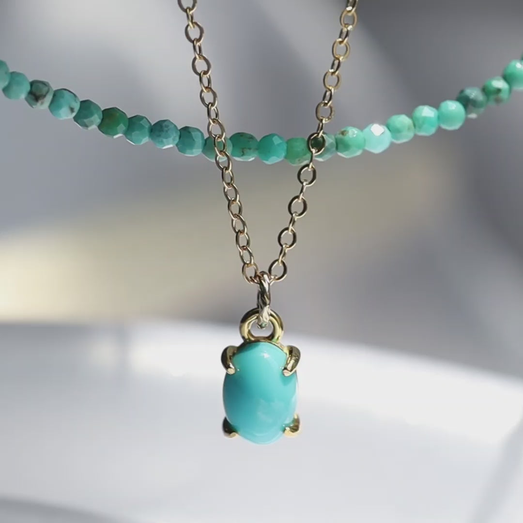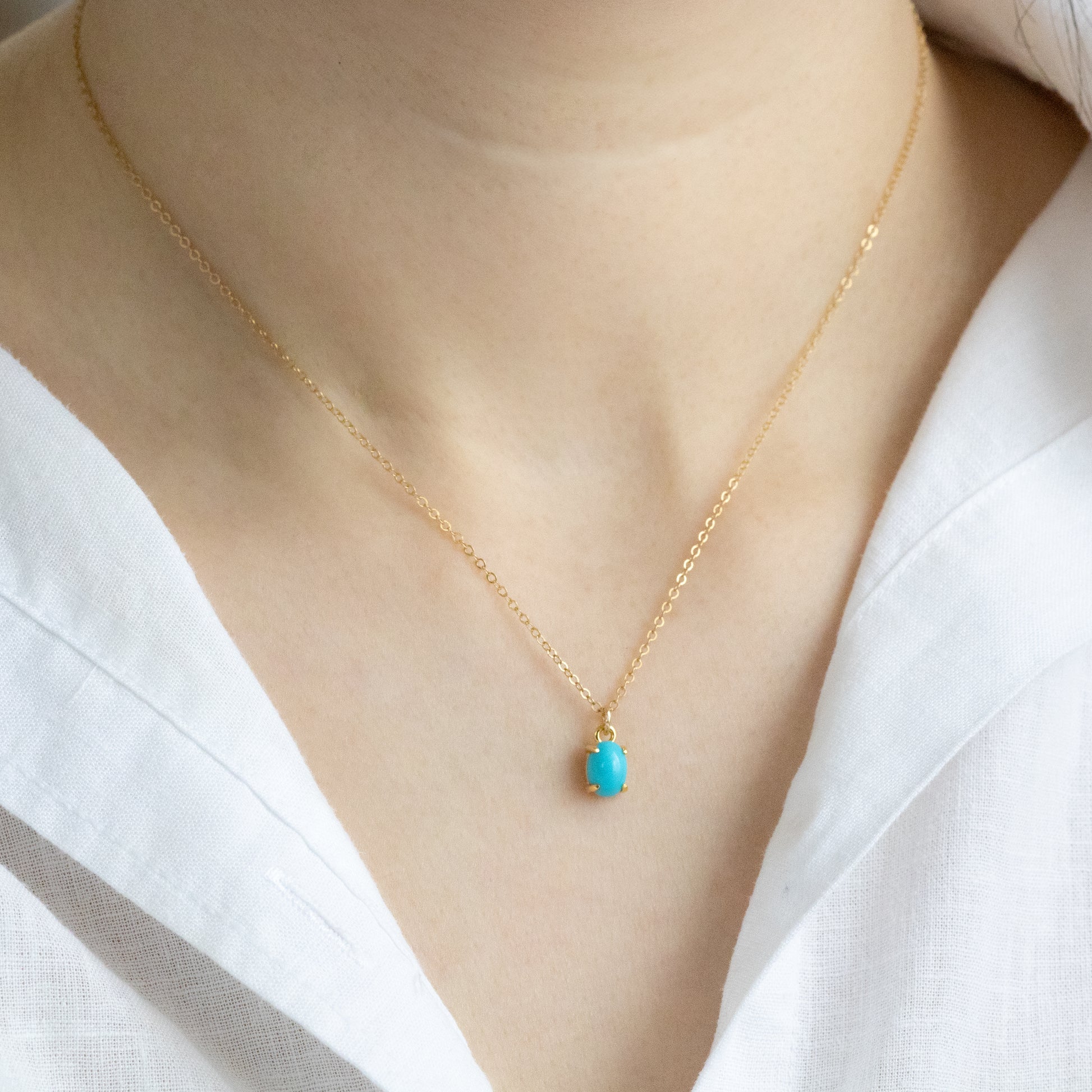 チェーンには上質な14kgf(ゴールドフィルド)を使用し、ターコイズの瑞々しさをより引き立てます。