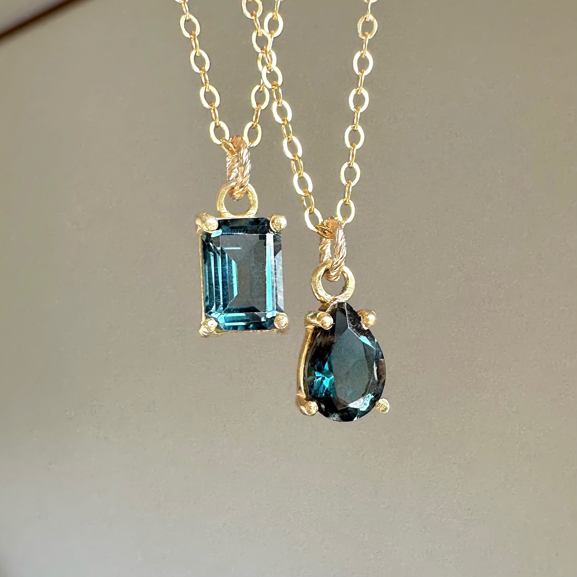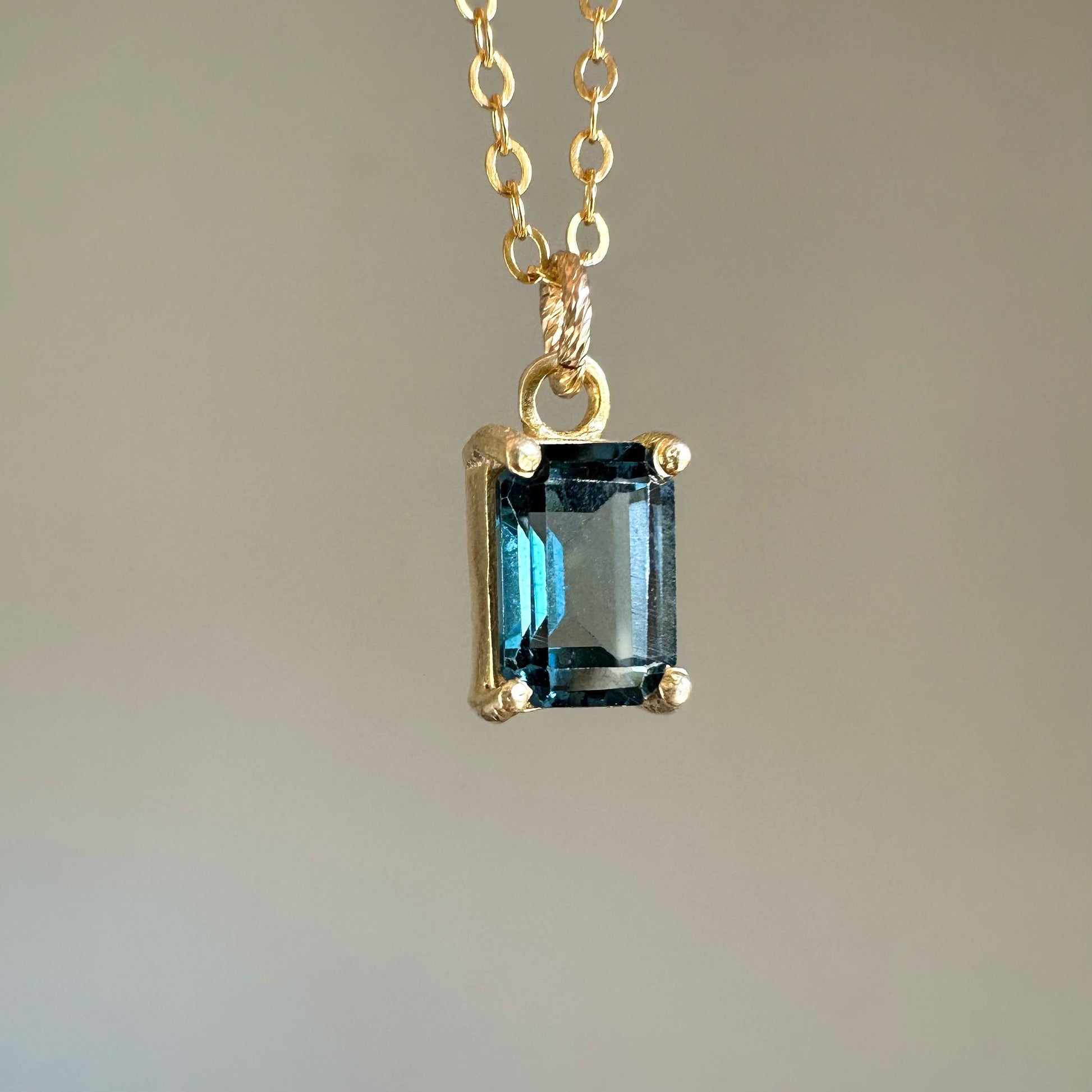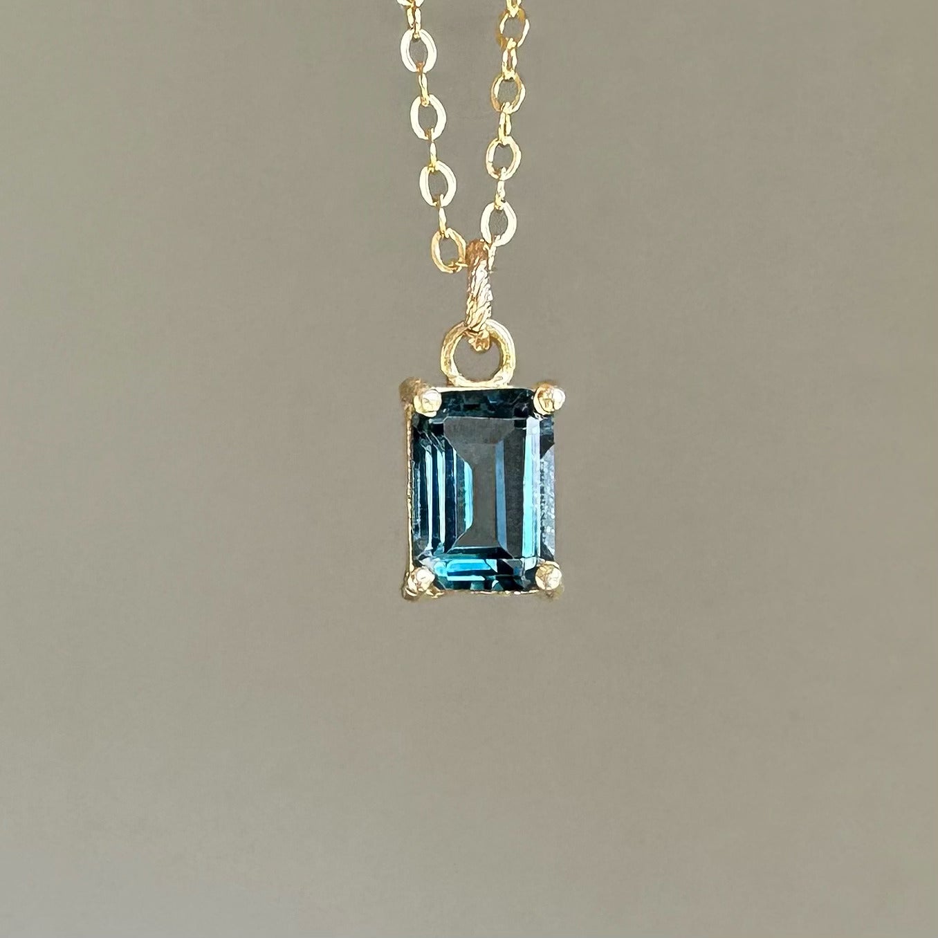 【14kgfネックレス】宝石質AAAロンドンブルートパーズ レクタングルネックレス