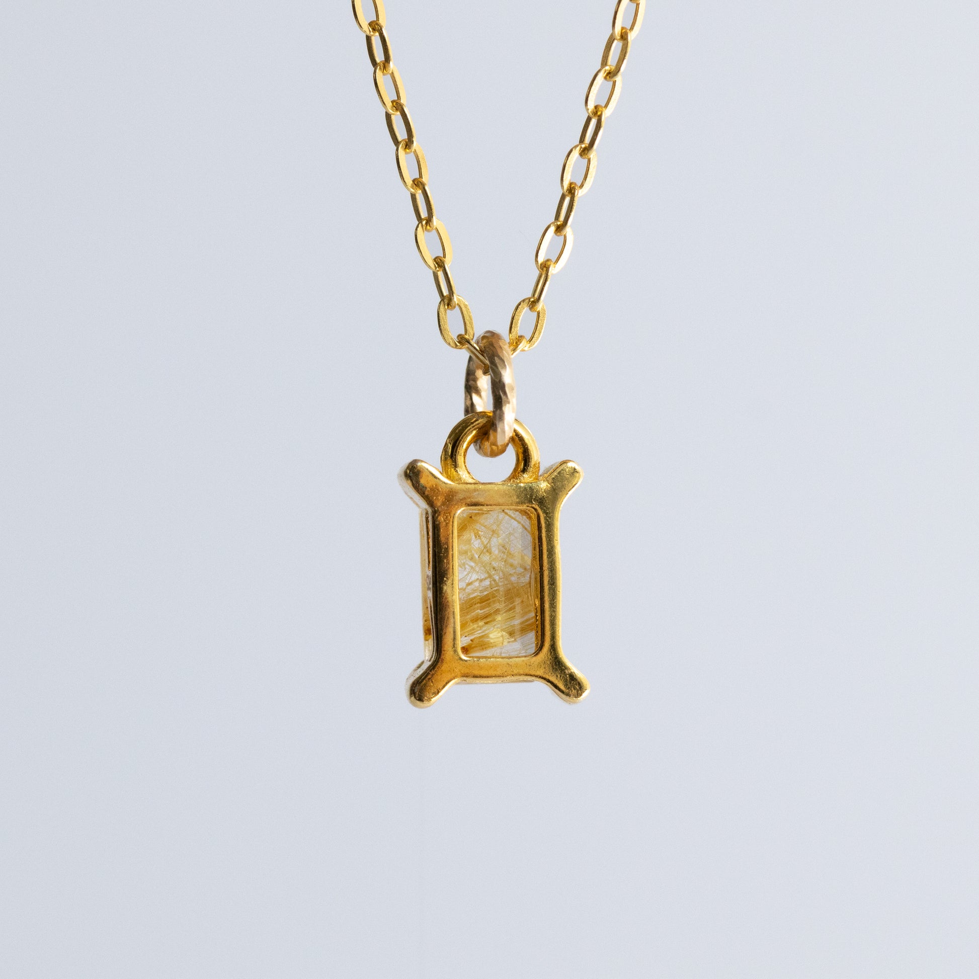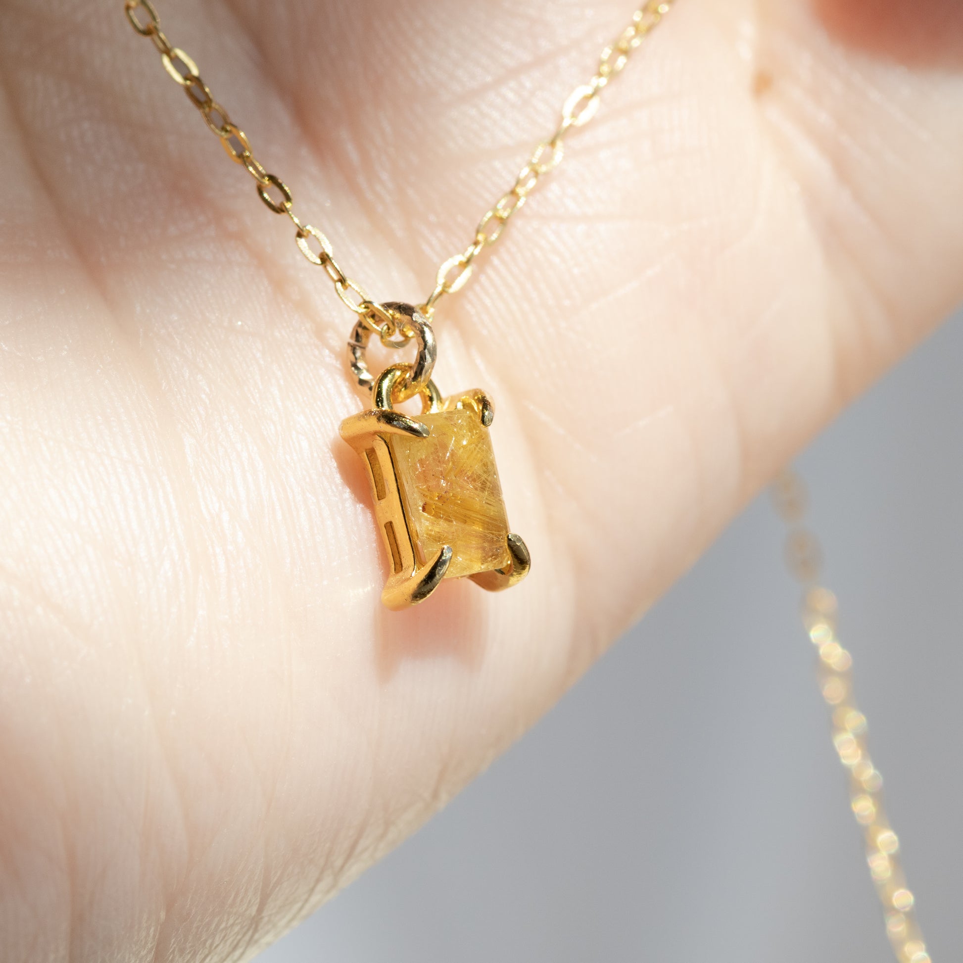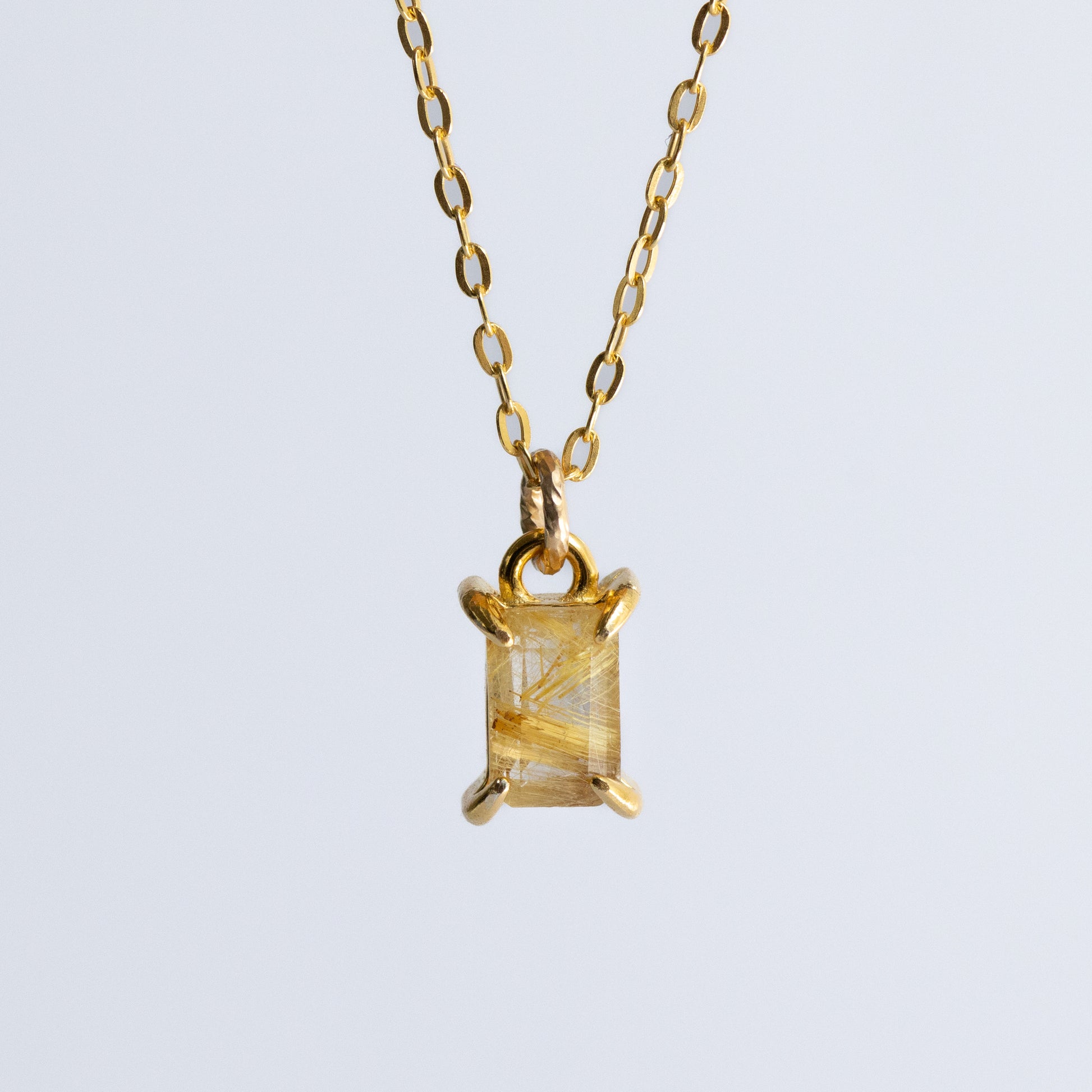 透明感のあるクォーツにまっすぐに伸びるルチルの金線が美しく映え、シンプルながらも奥行きのある存在感を演出してくれます。