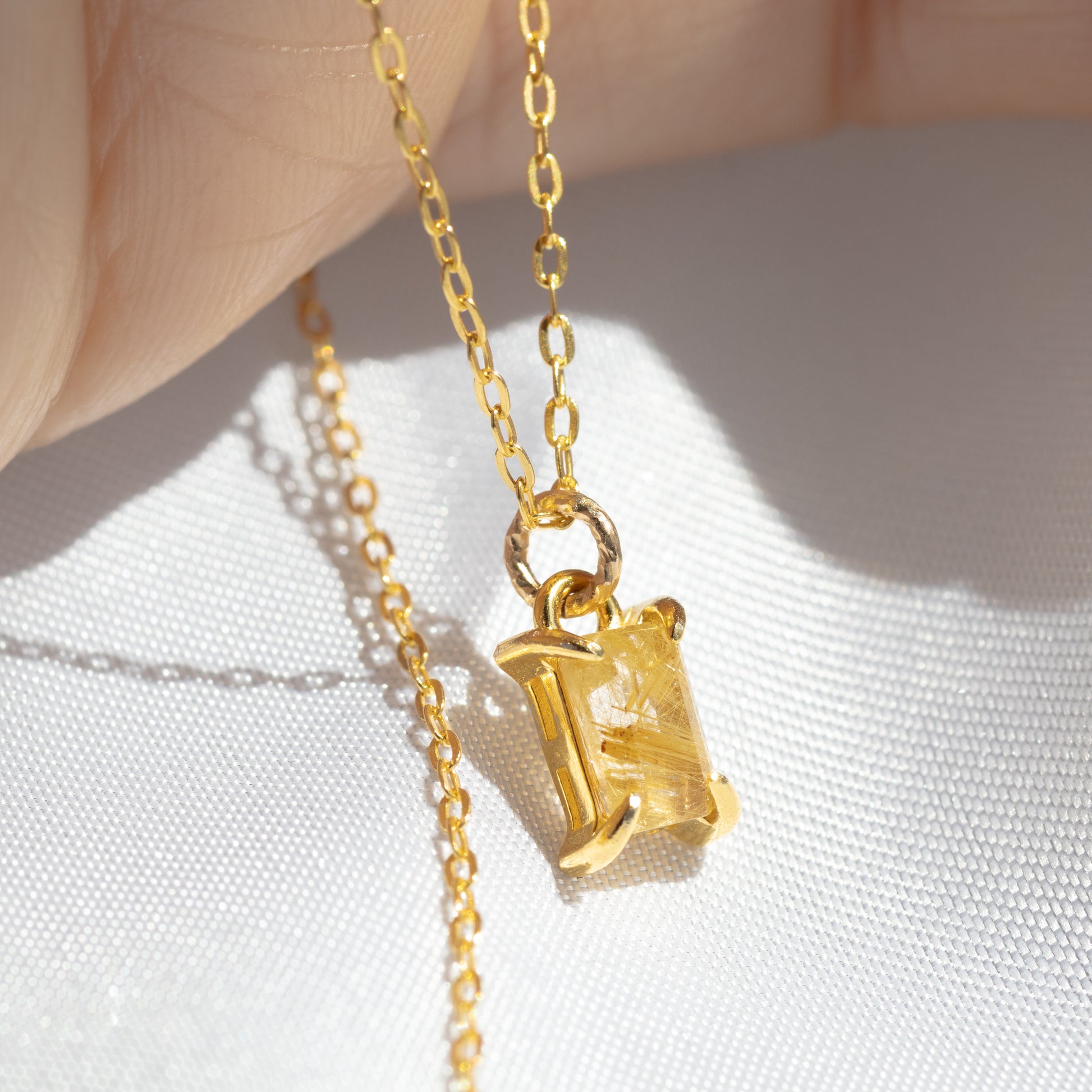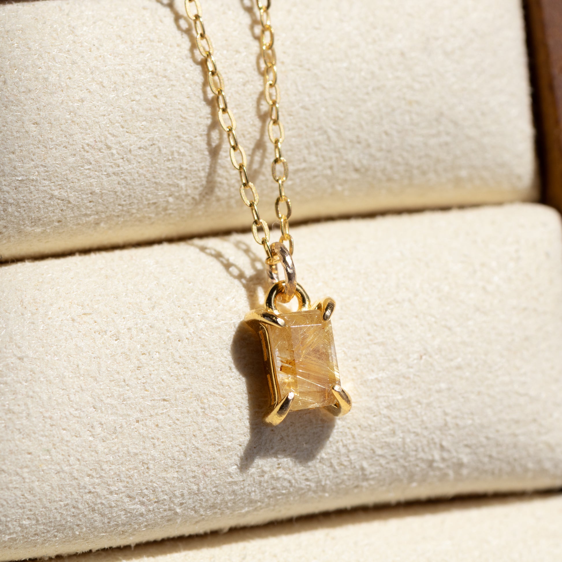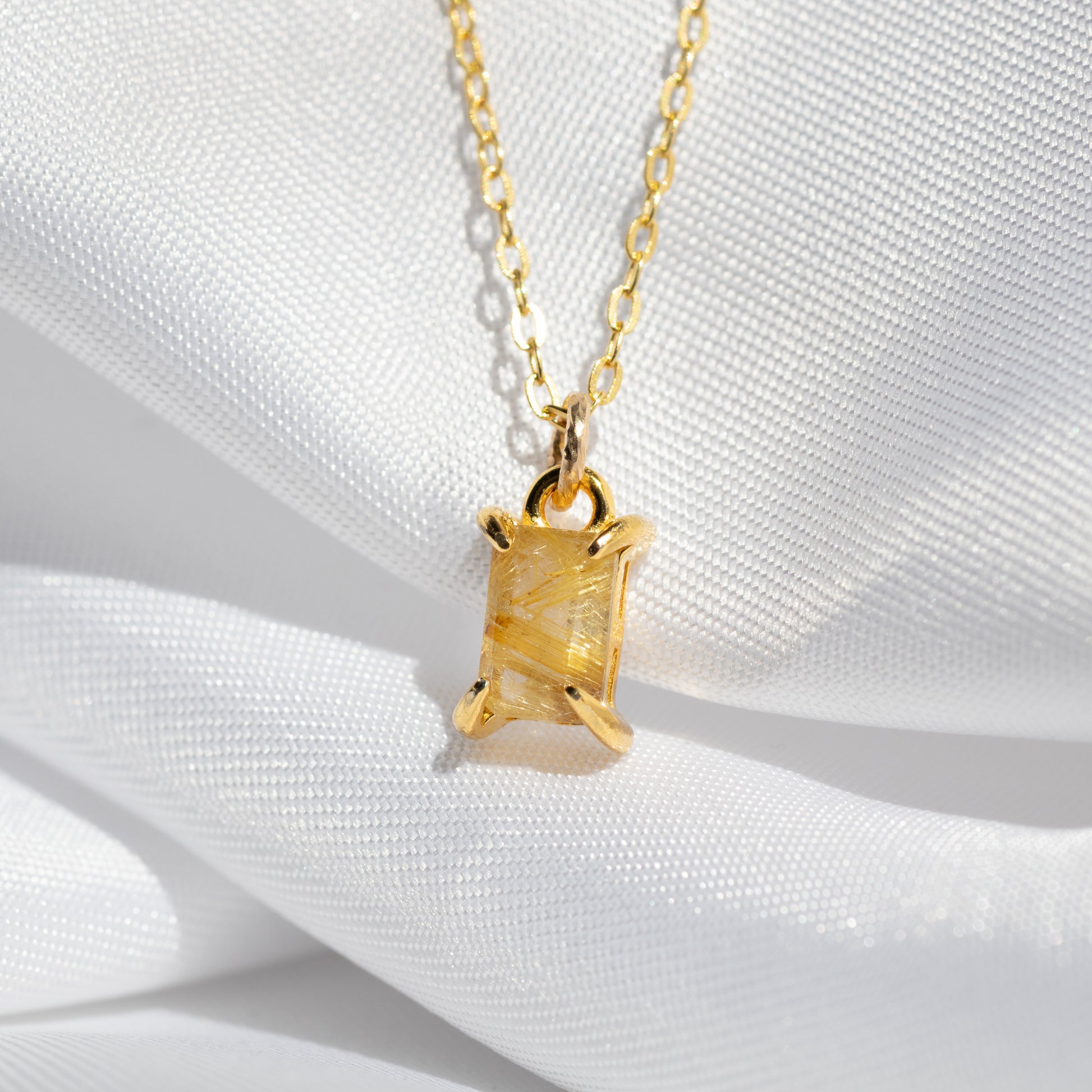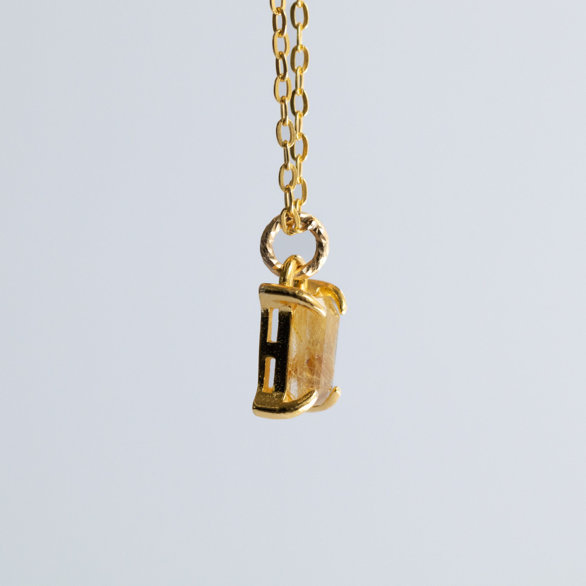透明感のあるクォーツにまっすぐに伸びるルチルの金線が美しく映え、シンプルながらも奥行きのある存在感を演出してくれます。