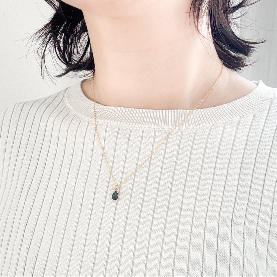 華奢な14kgf(ゴールドフィルド)チェーンが首元に自然になじみ、日常にも特別な日にも寄り添ってくれるネックレスです。