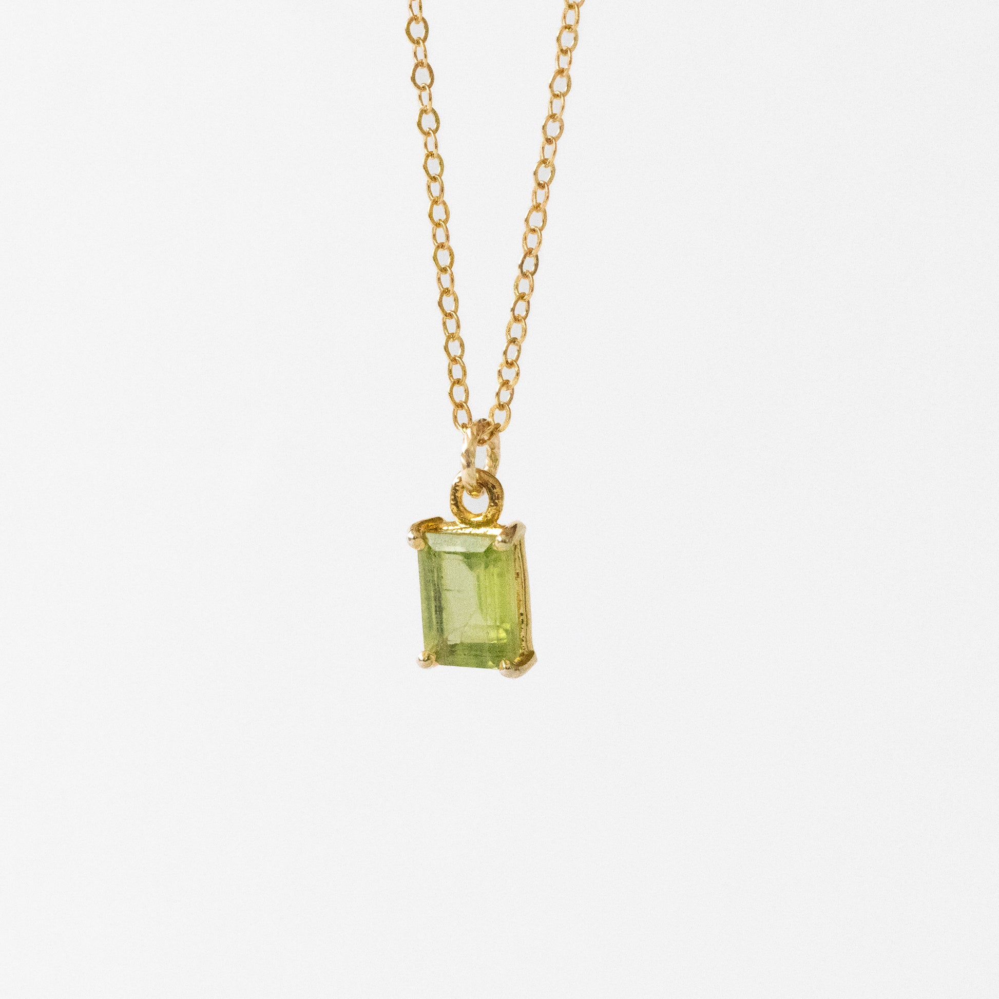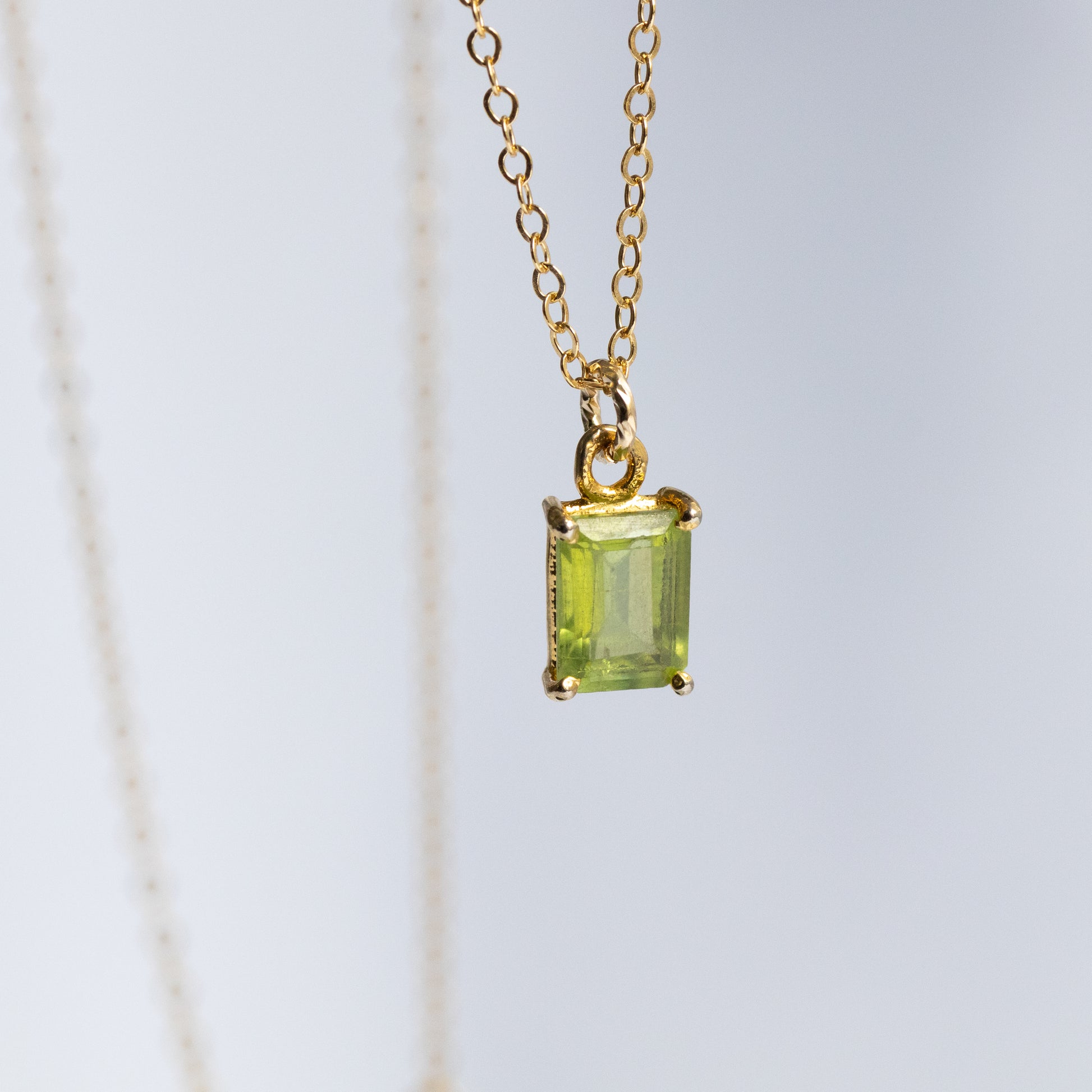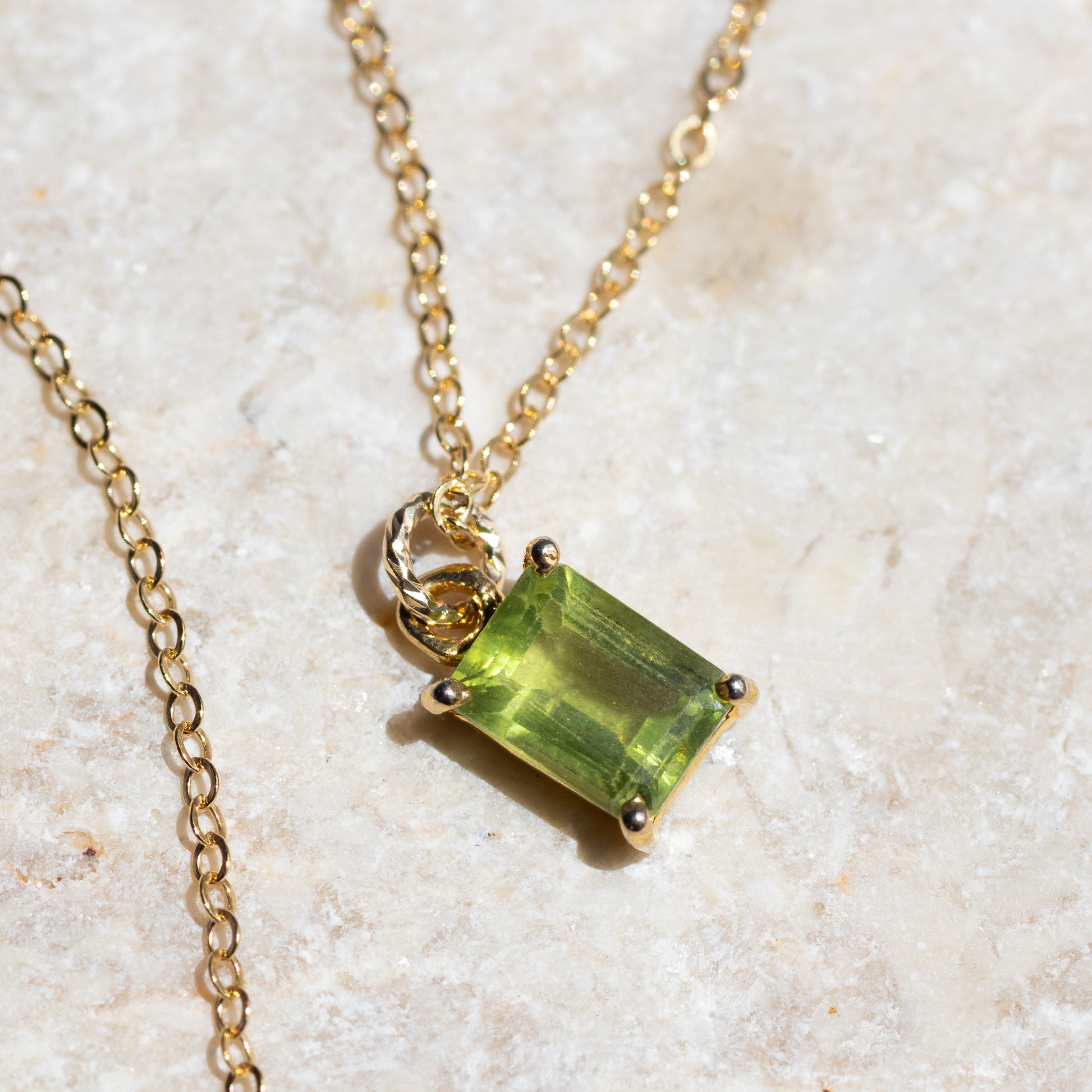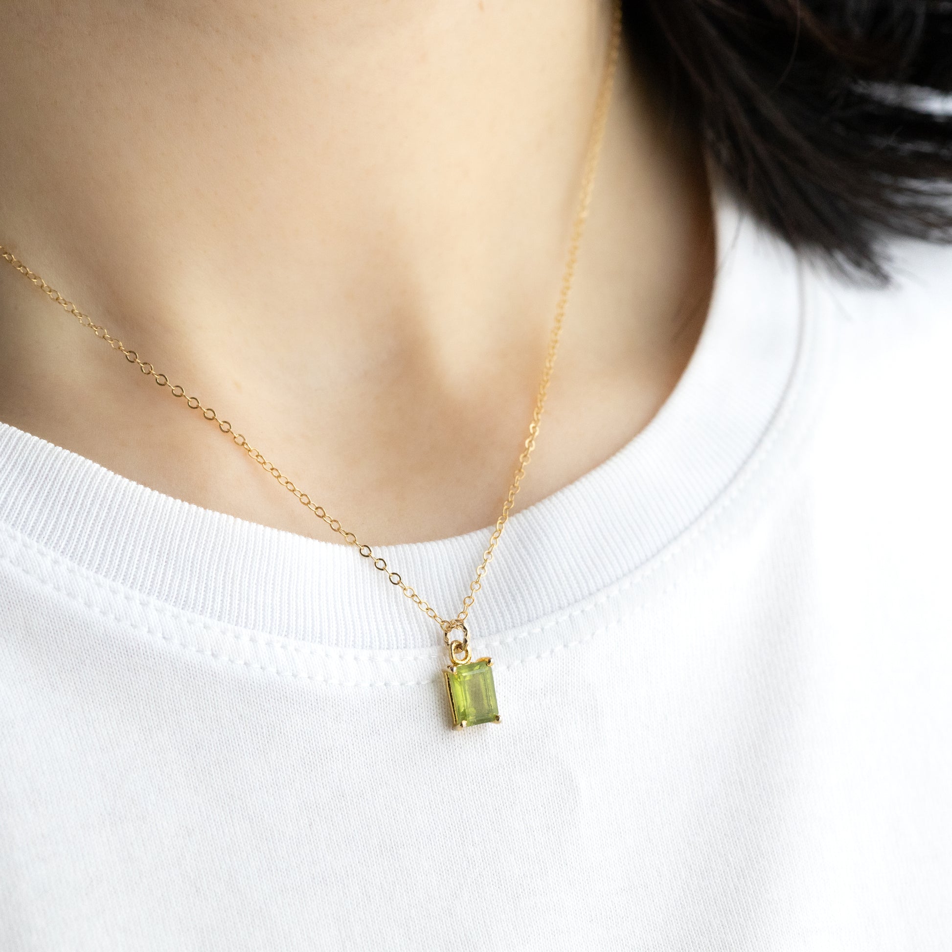 前向きなエネルギーをもたらすとされる“太陽の石”ペリドットを、胸元にそっと添えて。