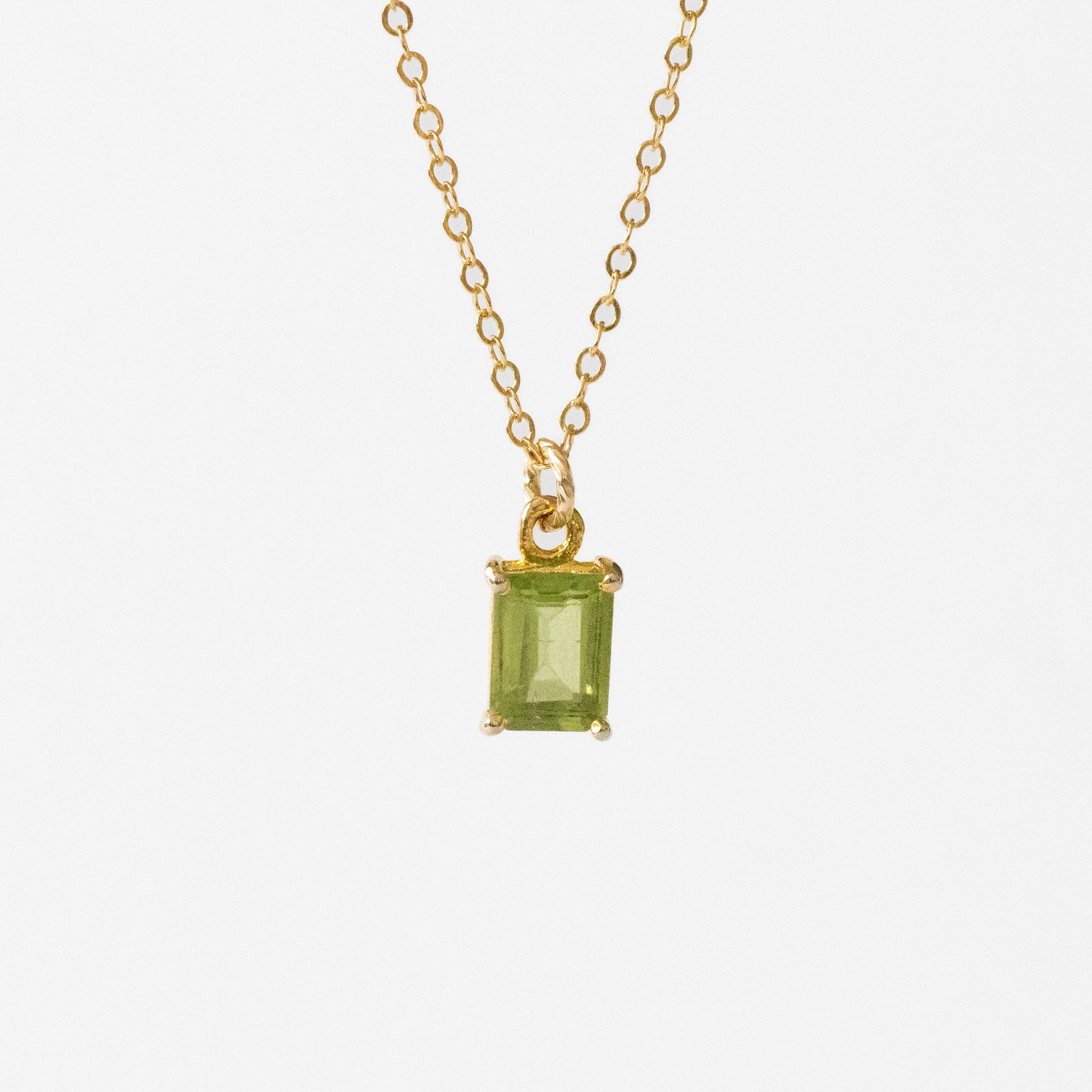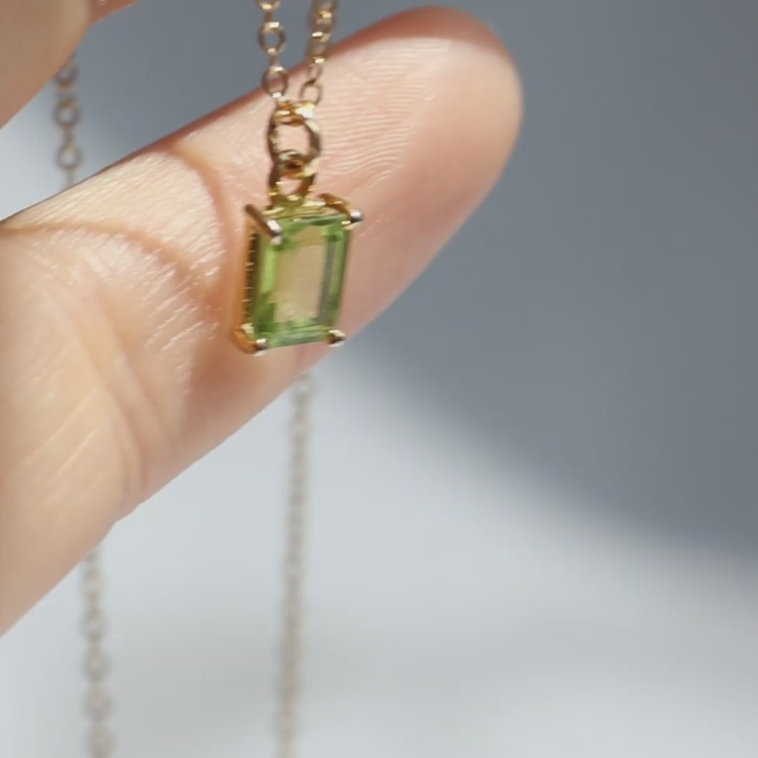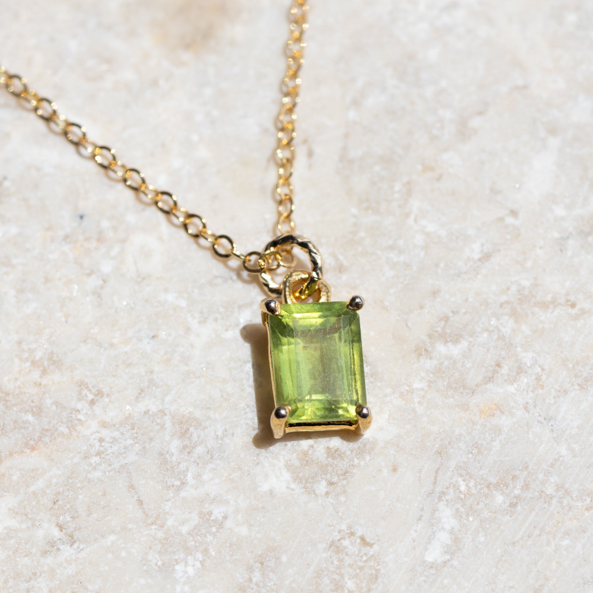 前向きなエネルギーをもたらすとされる“太陽の石”ペリドットを、胸元にそっと添えて。