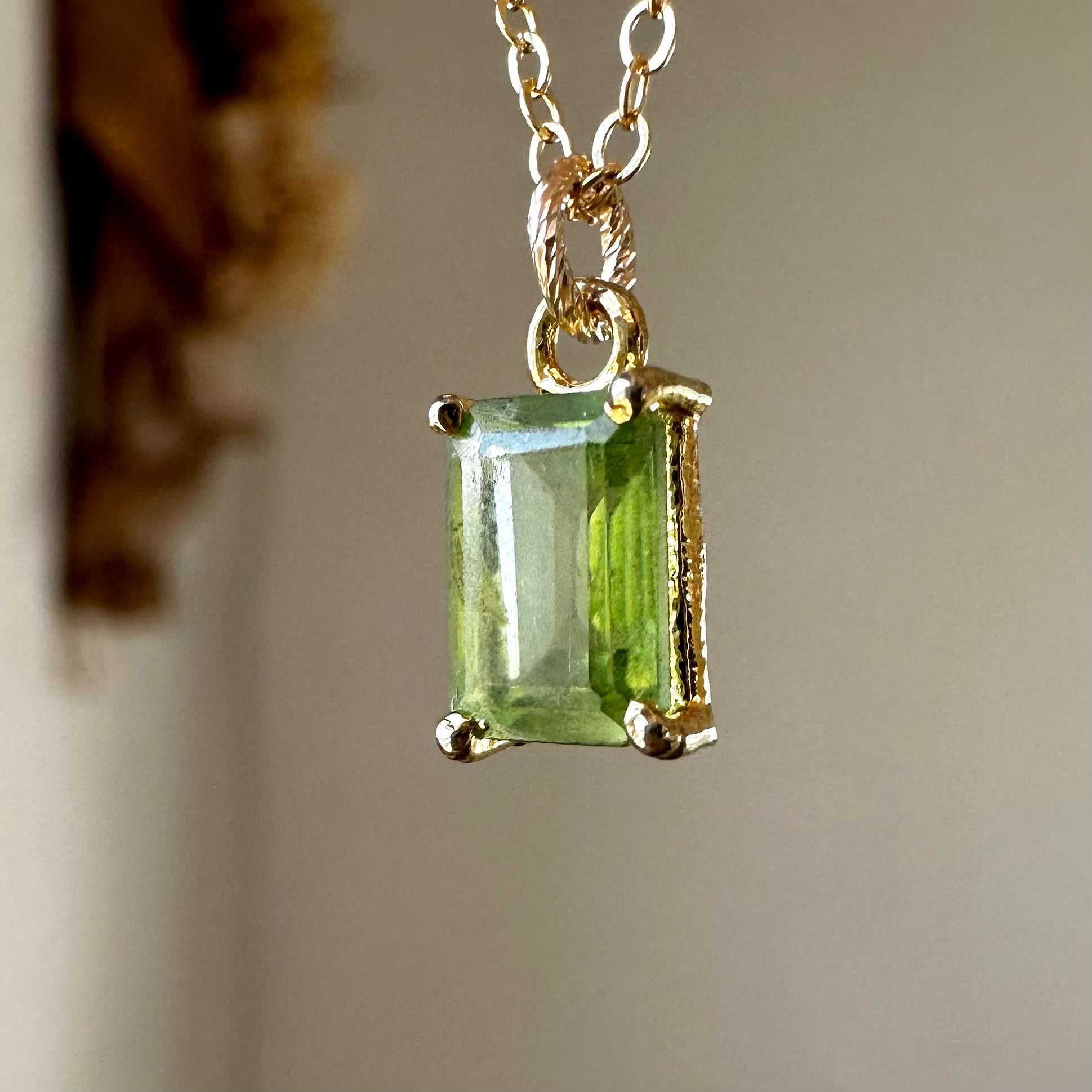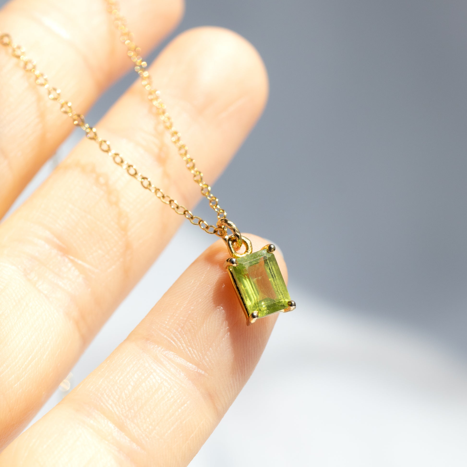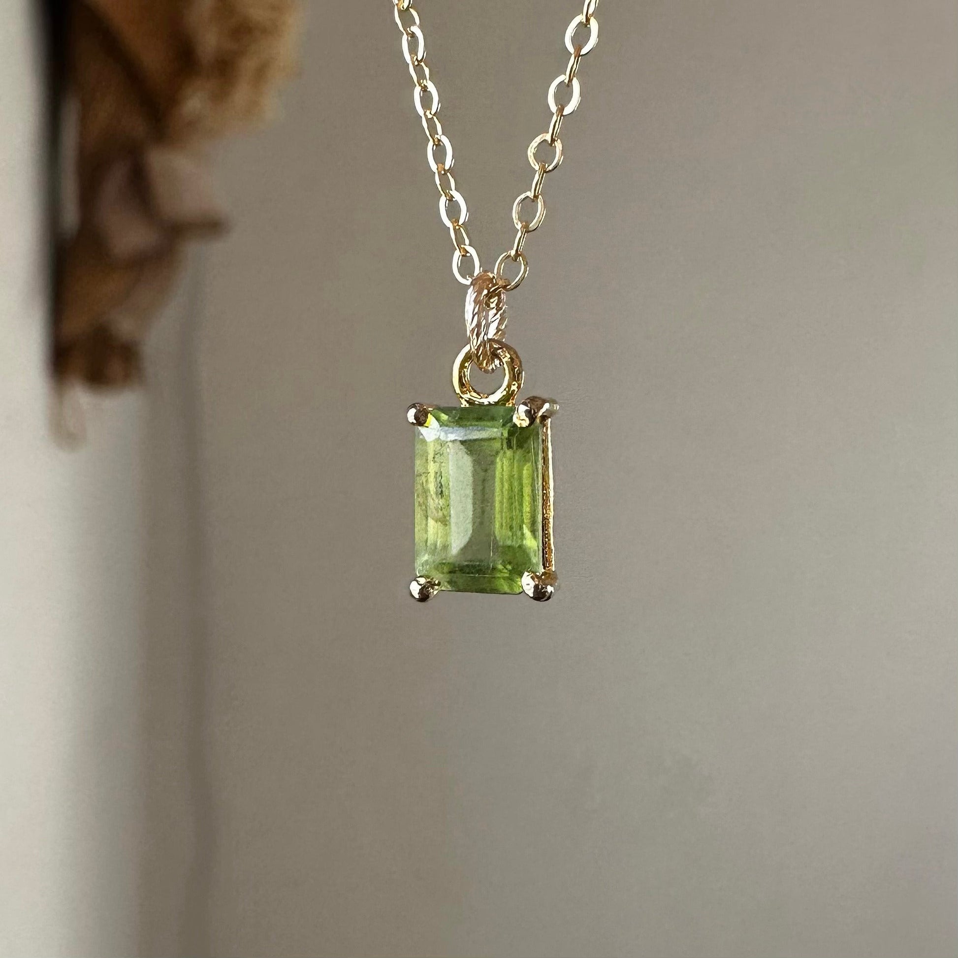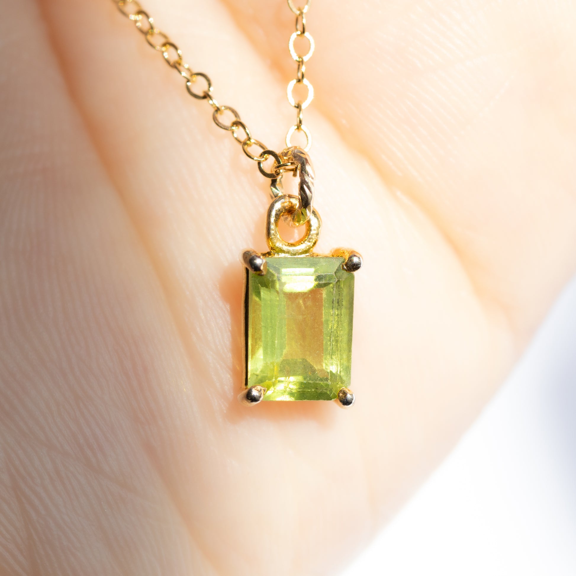 前向きなエネルギーをもたらすとされる“太陽の石”ペリドットを、胸元にそっと添えて。