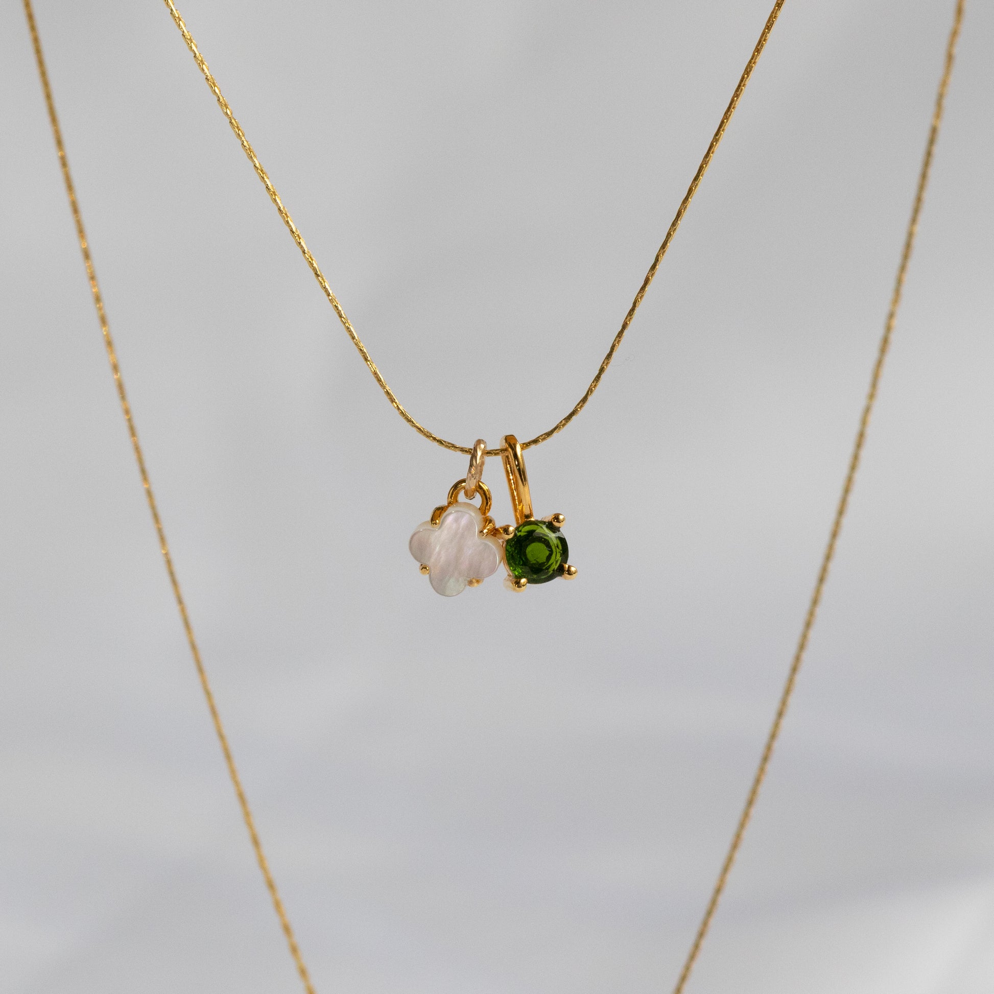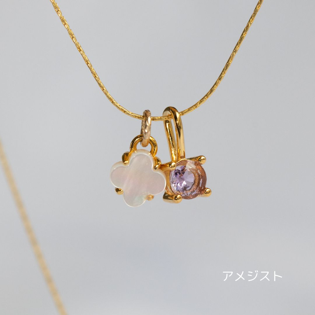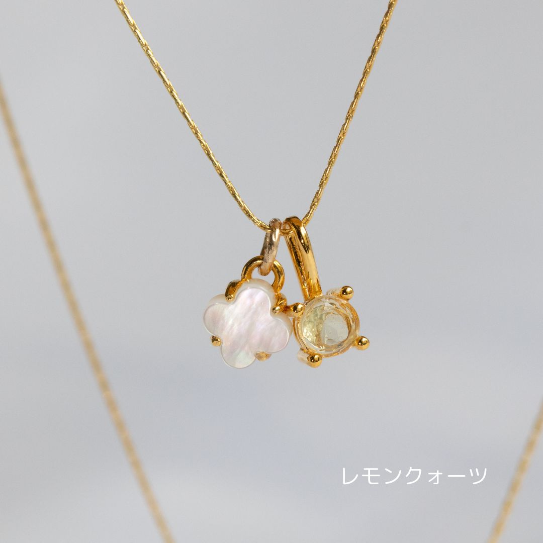 取り外し可能な天然石チャームと合わせて、気分に合わせて楽しめる2way仕様に。
