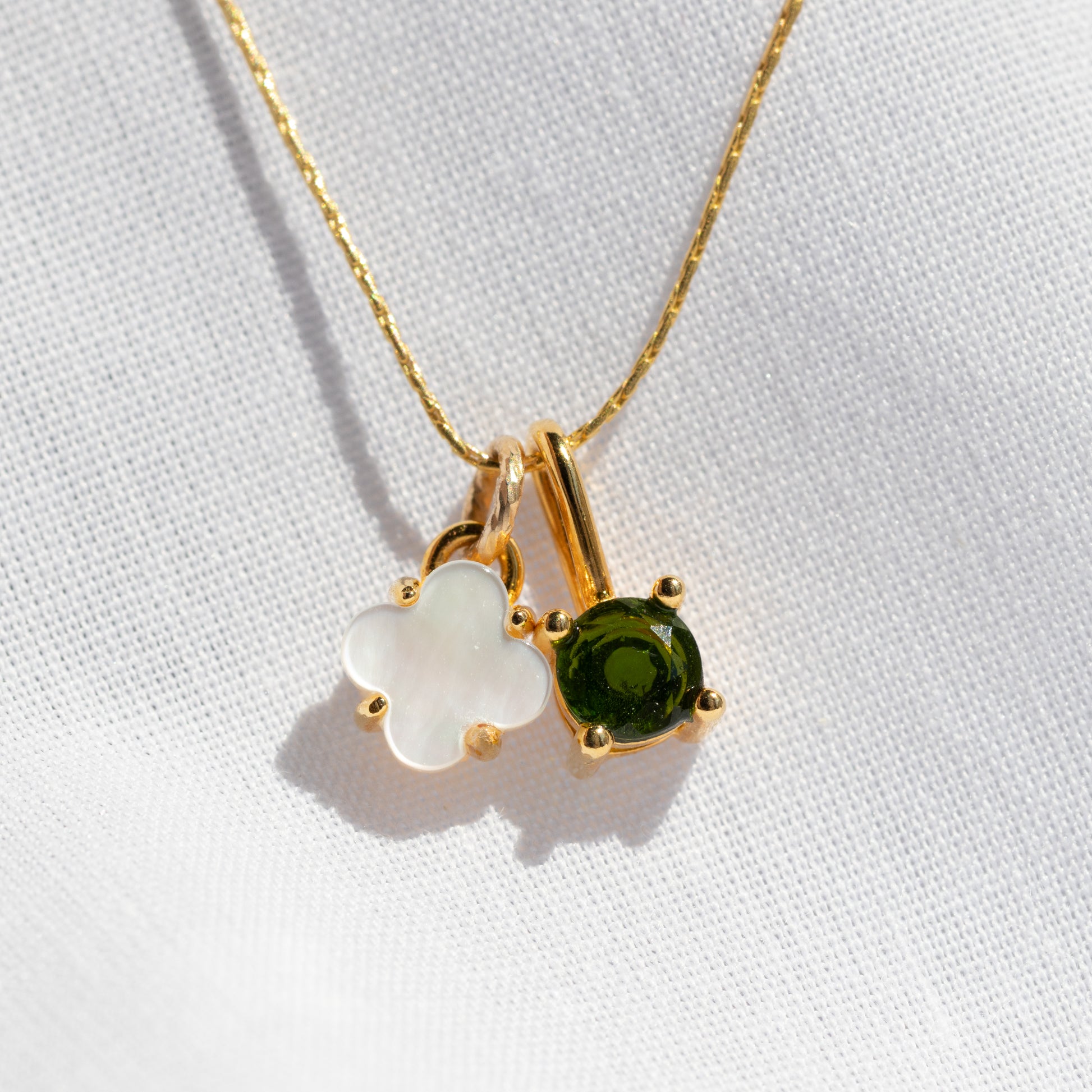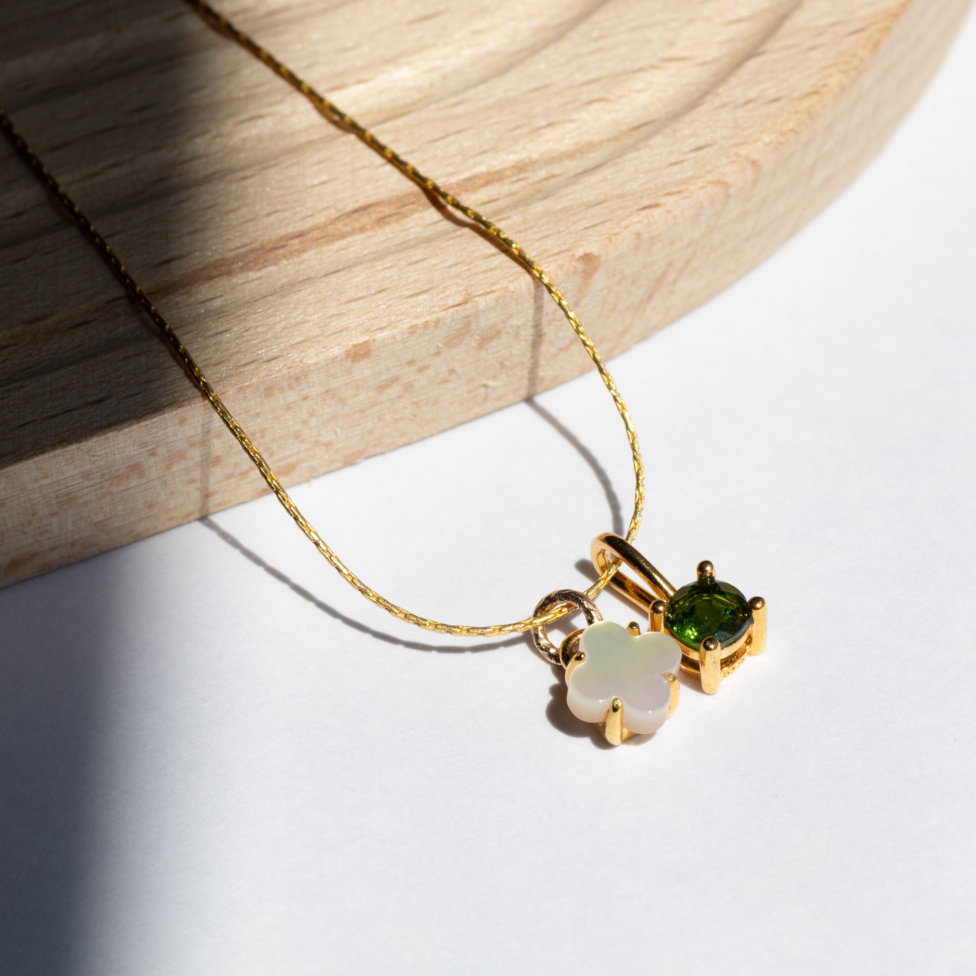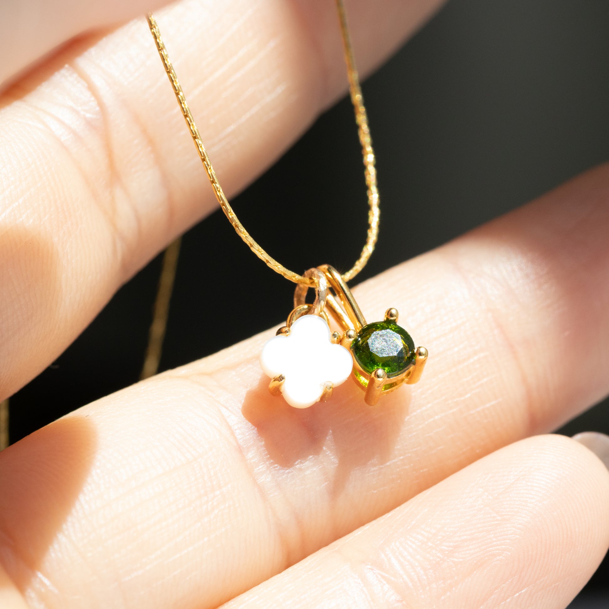 取り外し可能な天然石チャームと合わせて、気分に合わせて楽しめる2way仕様に。