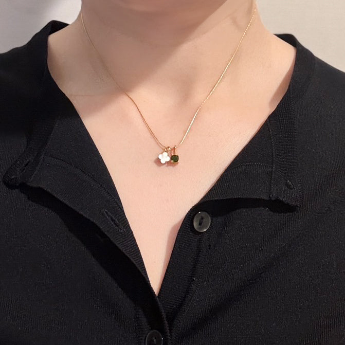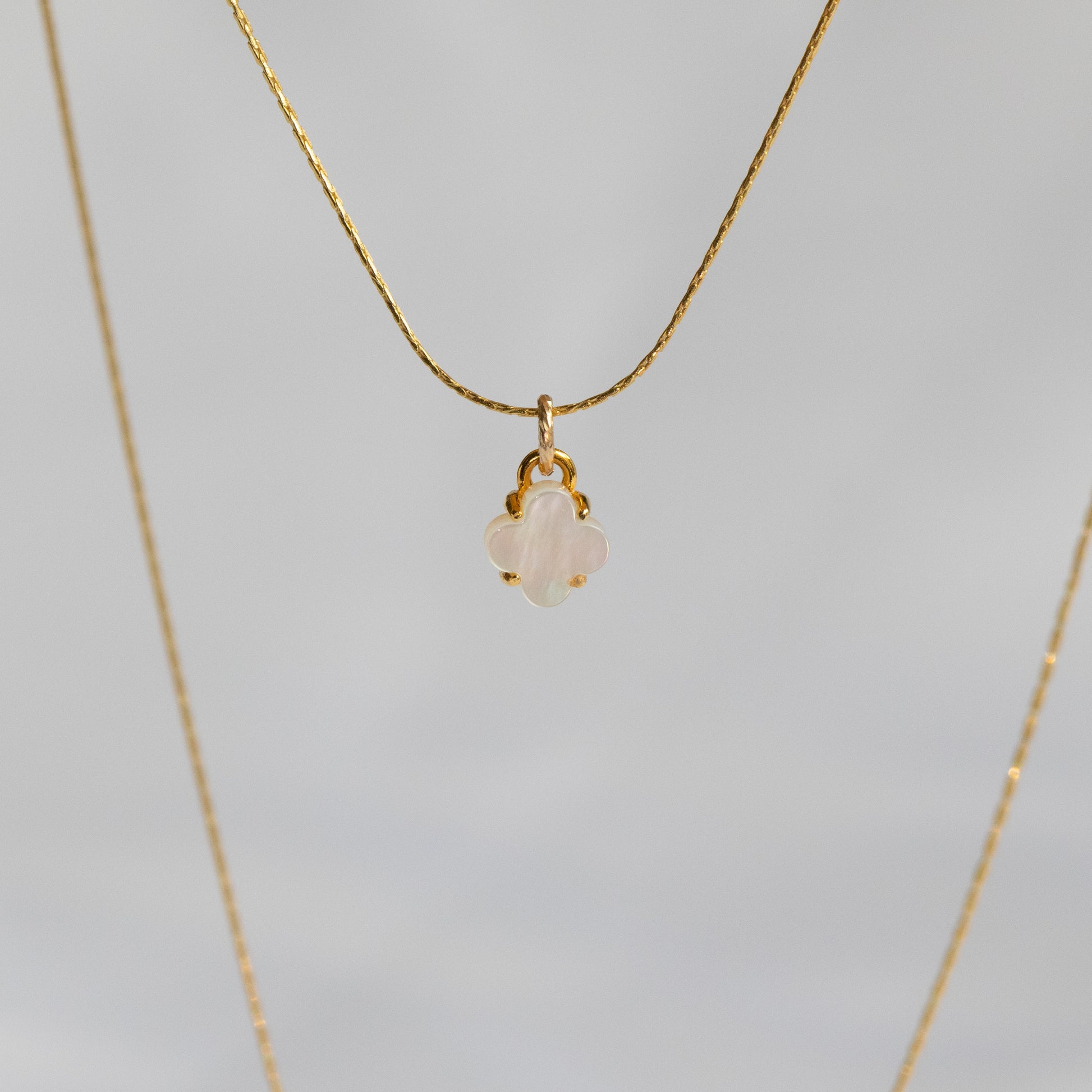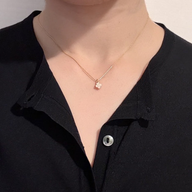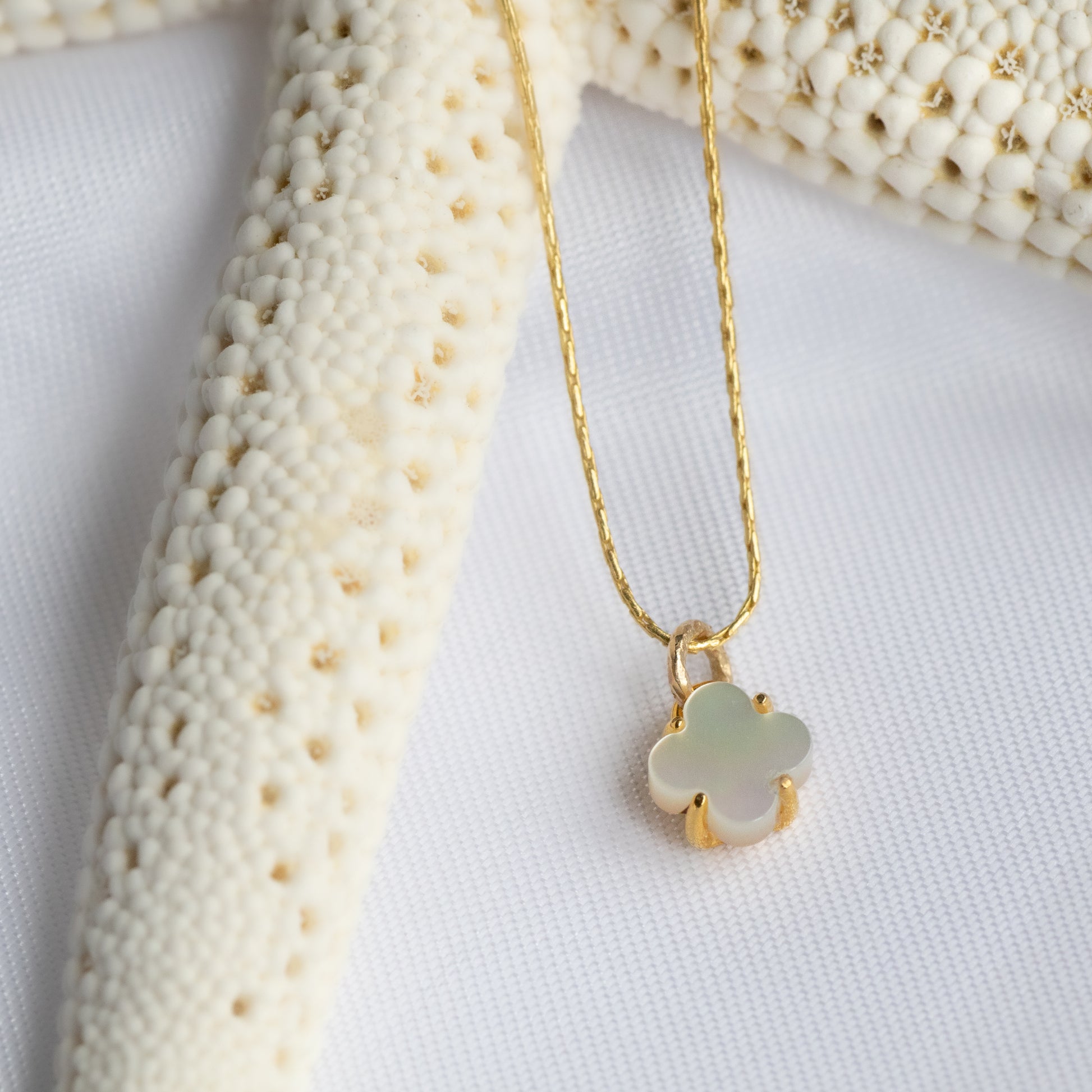 やさしく艶めくホワイトシェルを、可憐なフラワーモチーフに仕立てたネックレス。