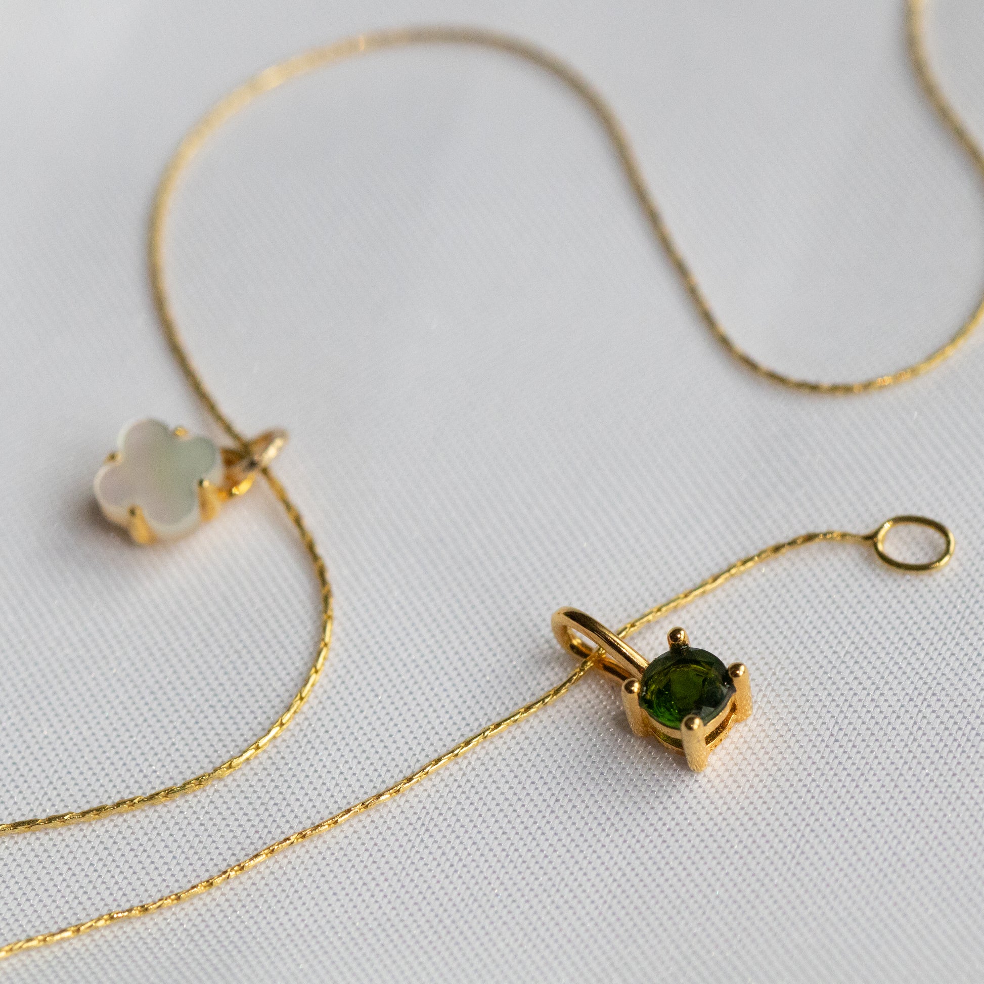 チェーンには、繊細な輝きを放つ0.7mm幅のビーディングチェーン(Silver925/18KGP)を採用。