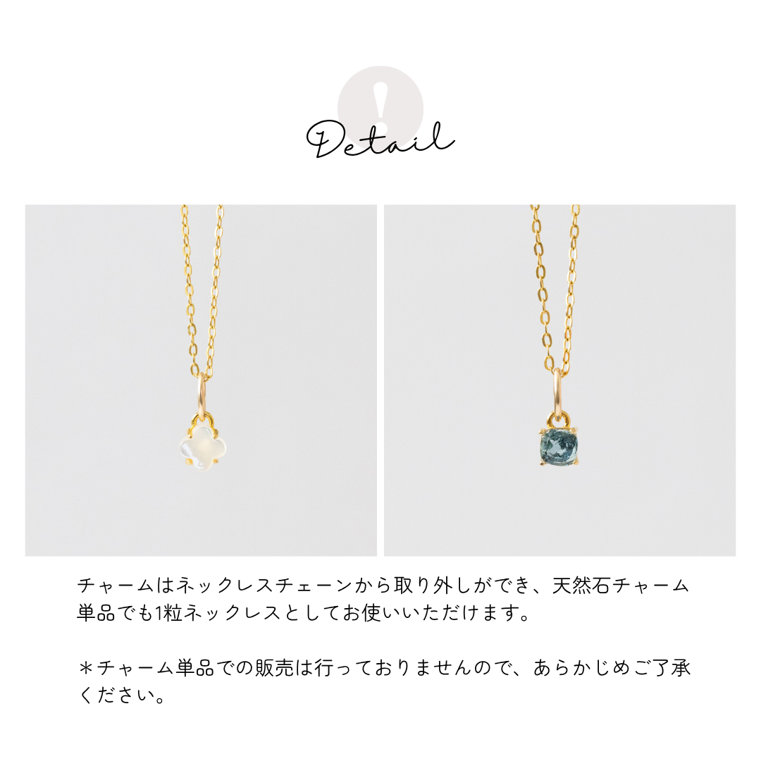 ホワイトシェルフラワー、天然石チャームともに着脱可能で、
