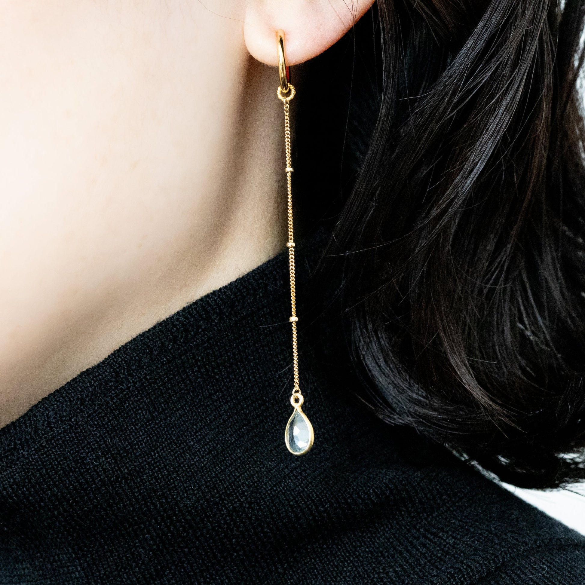 シンプルに1粒で、華やかにチェーンイヤリングとして、2つ重ねてお出かけにと、その日の気分やスタイルに合わせて楽しめる3way 仕様のイヤリングです。