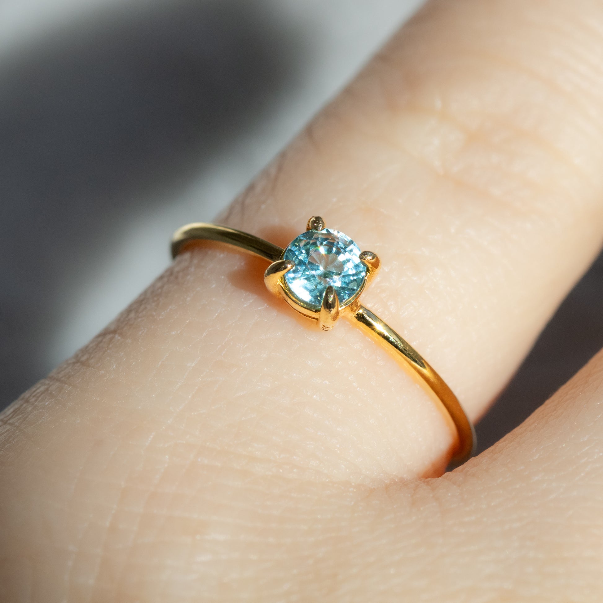 【Holiday collection】天然ブルージルコン ラウンドリング(Silver925 18kgp)