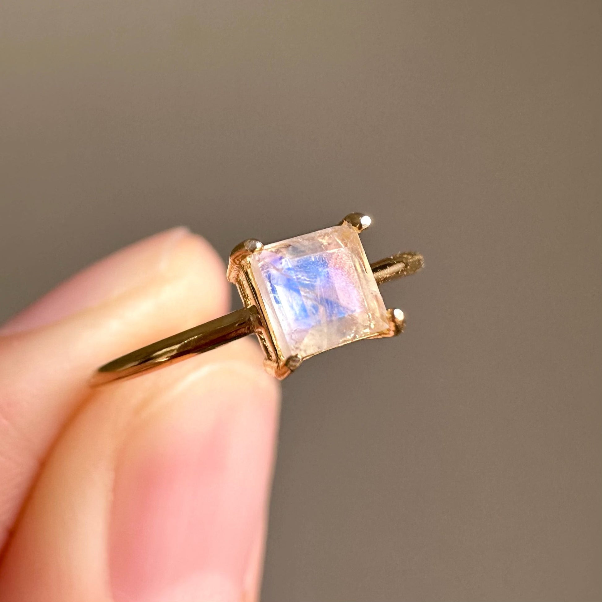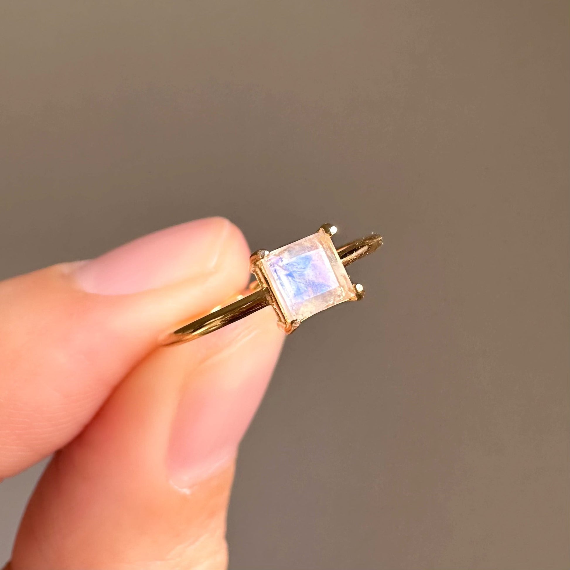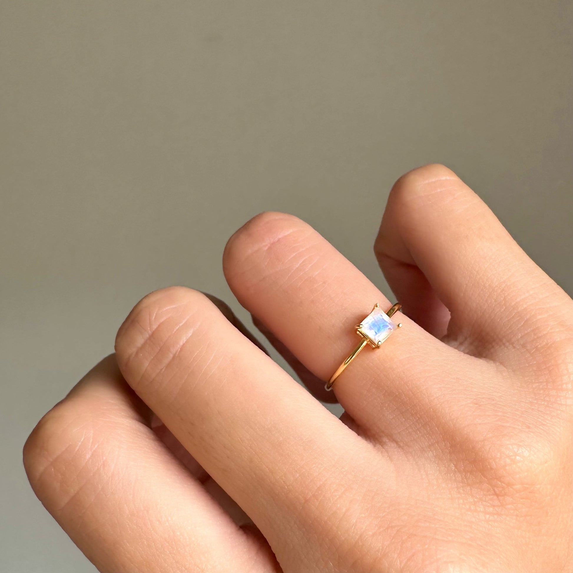 乳白色のベースに美しい虹色のシラーがみられる宝石質のレインボームーンストーンを使用。