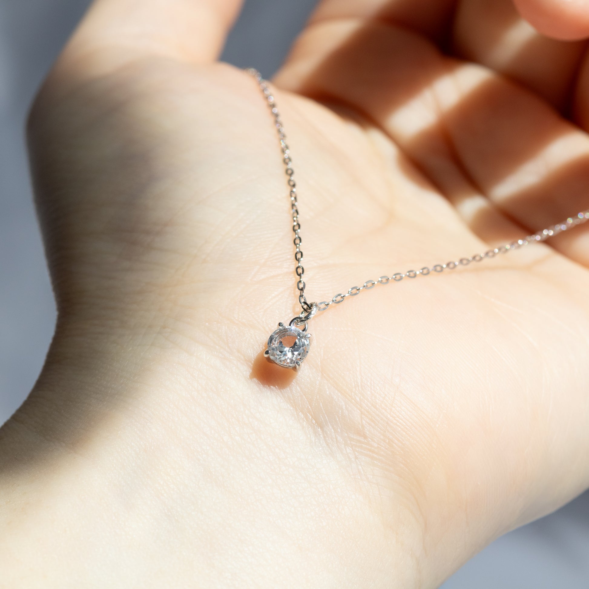透明感あふれる宝石質AAAグレードのホワイトトパーズを使用した、シンプルな1粒ネックレスです。