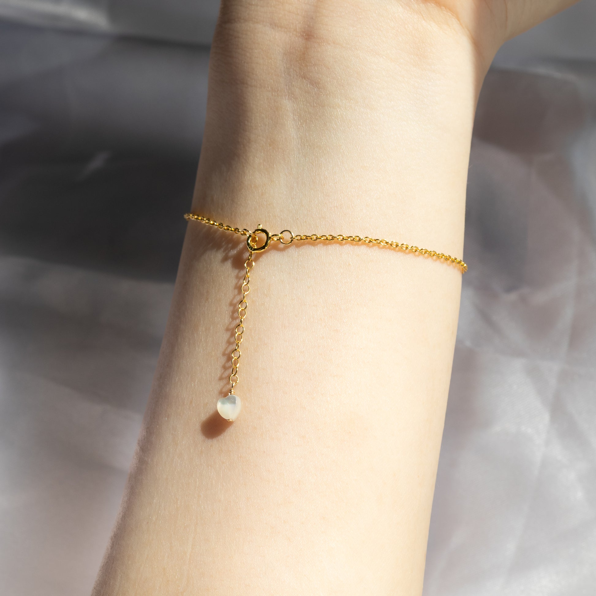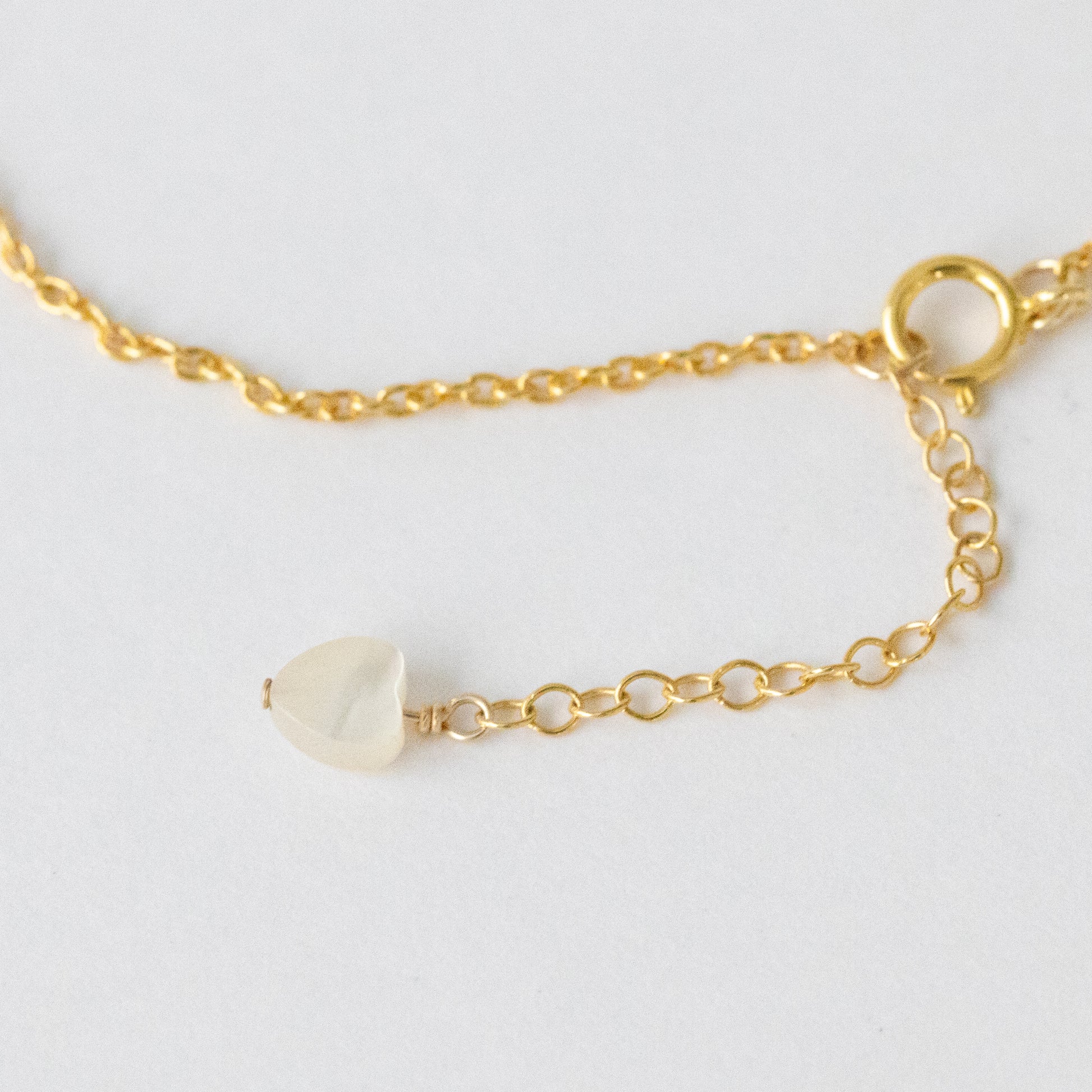 先端には同じホワイトシェル素材のハートをあしらい、大人の女性にも似合う“さりげない可愛さ”をプラスしました。