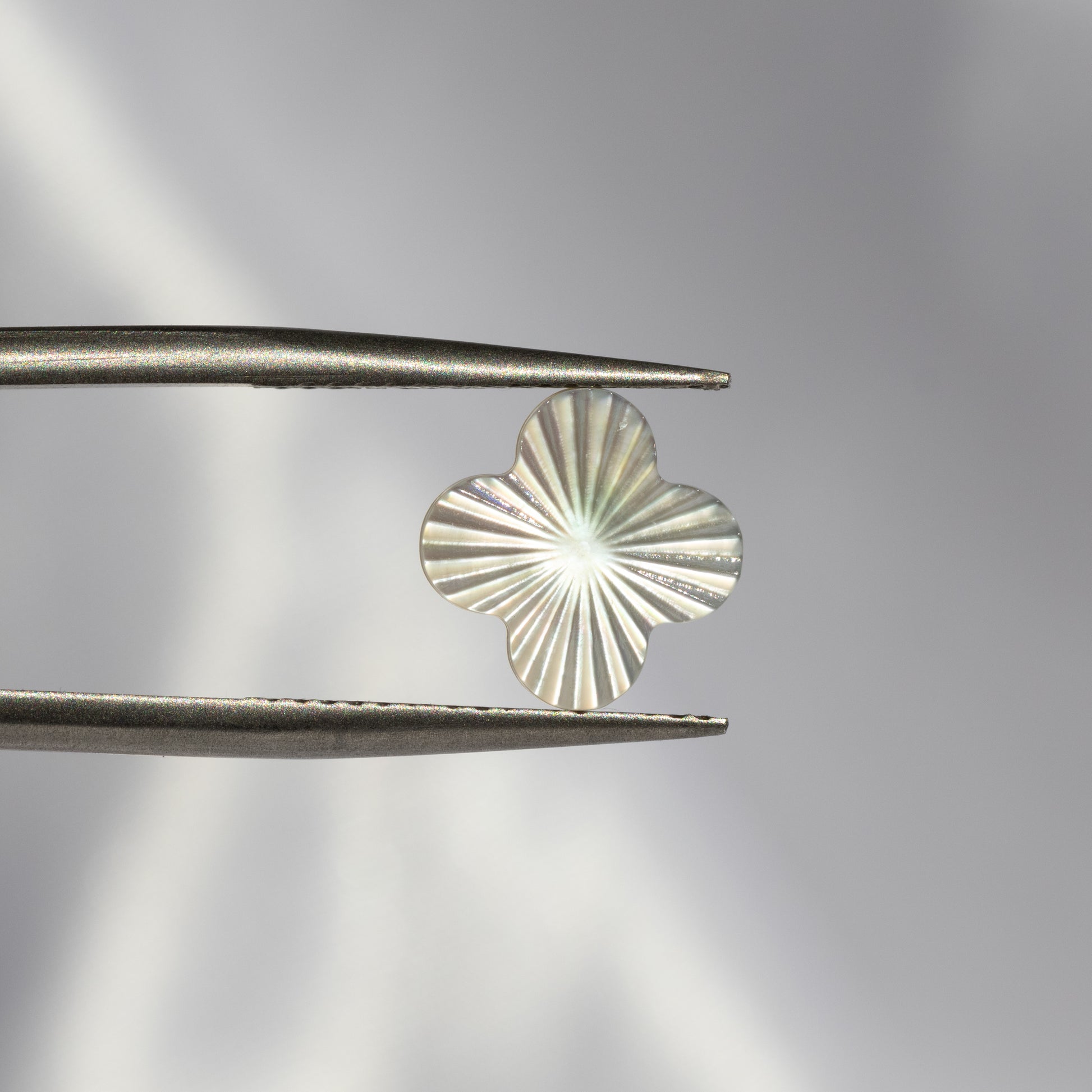 片面に放射線状のカットを施すことで、光を受けるたび立体的にきらめき、可憐で華やかな存在感を放ちます。